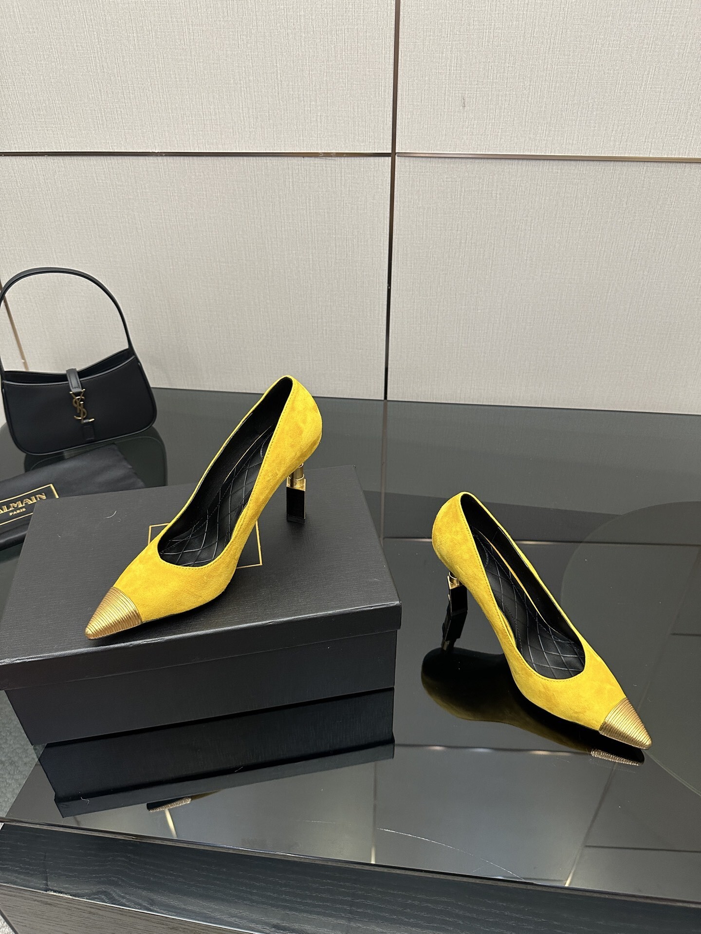 Add a vibrant edge to your luxury wardrobe with the Balmain Yellow Suede Heels, an iconic design that fuses bold color with Parisian sophistication.