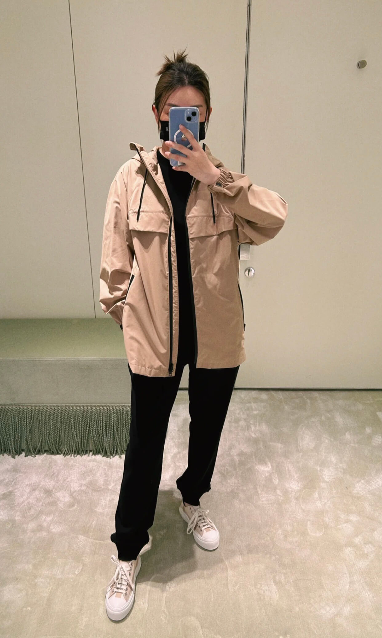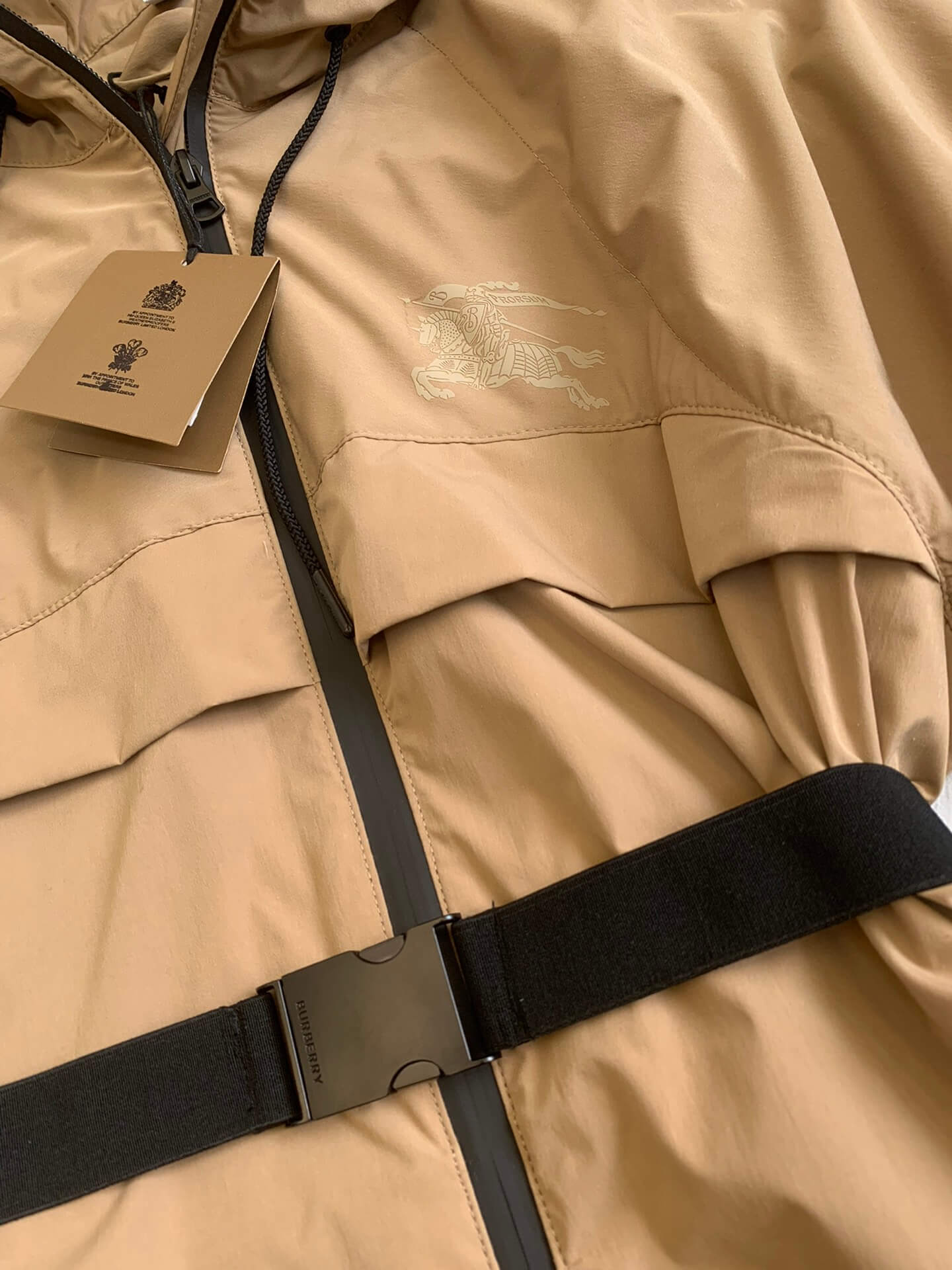 Imagine a gentle breeze carrying you through a spring afternoon, or the crisp air of an early autumn walk. This beige short parka, with its soft, neutral tone, appears ready for such moments. The lightweight fabric suggests a piece designed for effortless layering, while the hooded silhouette offers a touch of casual sophistication. A black belt cinches the waist, creating a defined shape, and a front zip closure adds practical detail. Subtle markings, perhaps the EKD print, hint at a refined aesthetic. This parka seems to offer a blend of comfort and style, a versatile addition to your seasonal wardrobe.