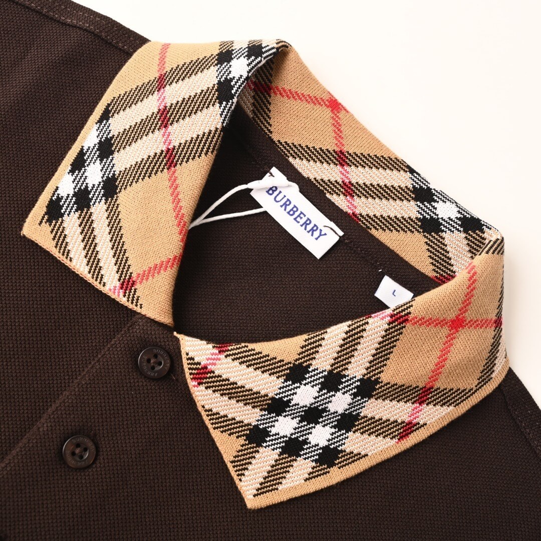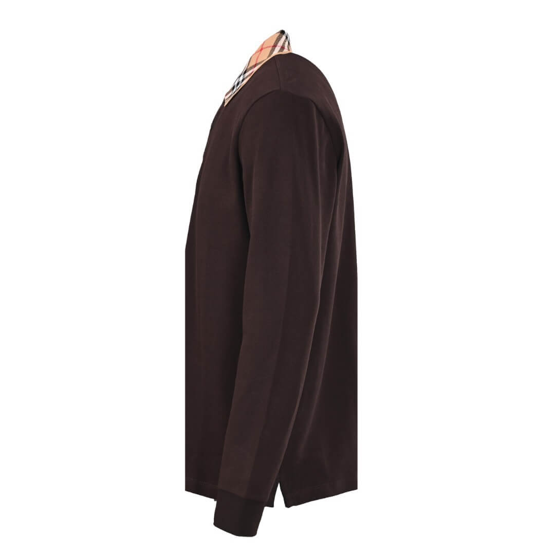 Elevate your everyday wardrobe with the Burberry Long-Sleeve Polo Shirt with Exploded Check Collar, a refined essential blending classic British tailoring with modern street-luxe influence. Crafted in rich chocolate brown cotton, this long-sleeve polo stands out with its instantly recognizable Burberry House Check collar, adding a signature pop of pattern that appeals to customers in the US, UK, Canada, Australia, and worldwide.
