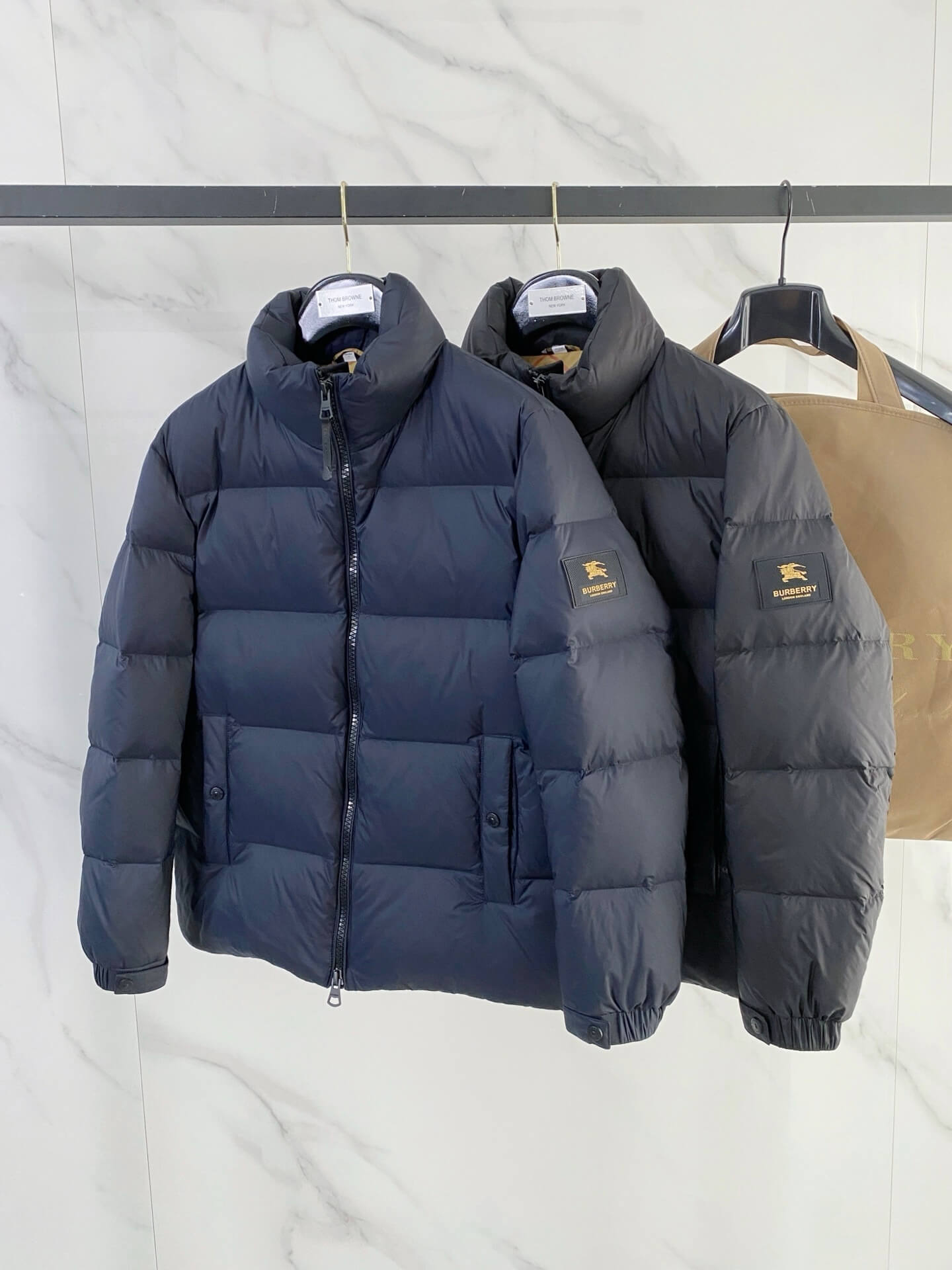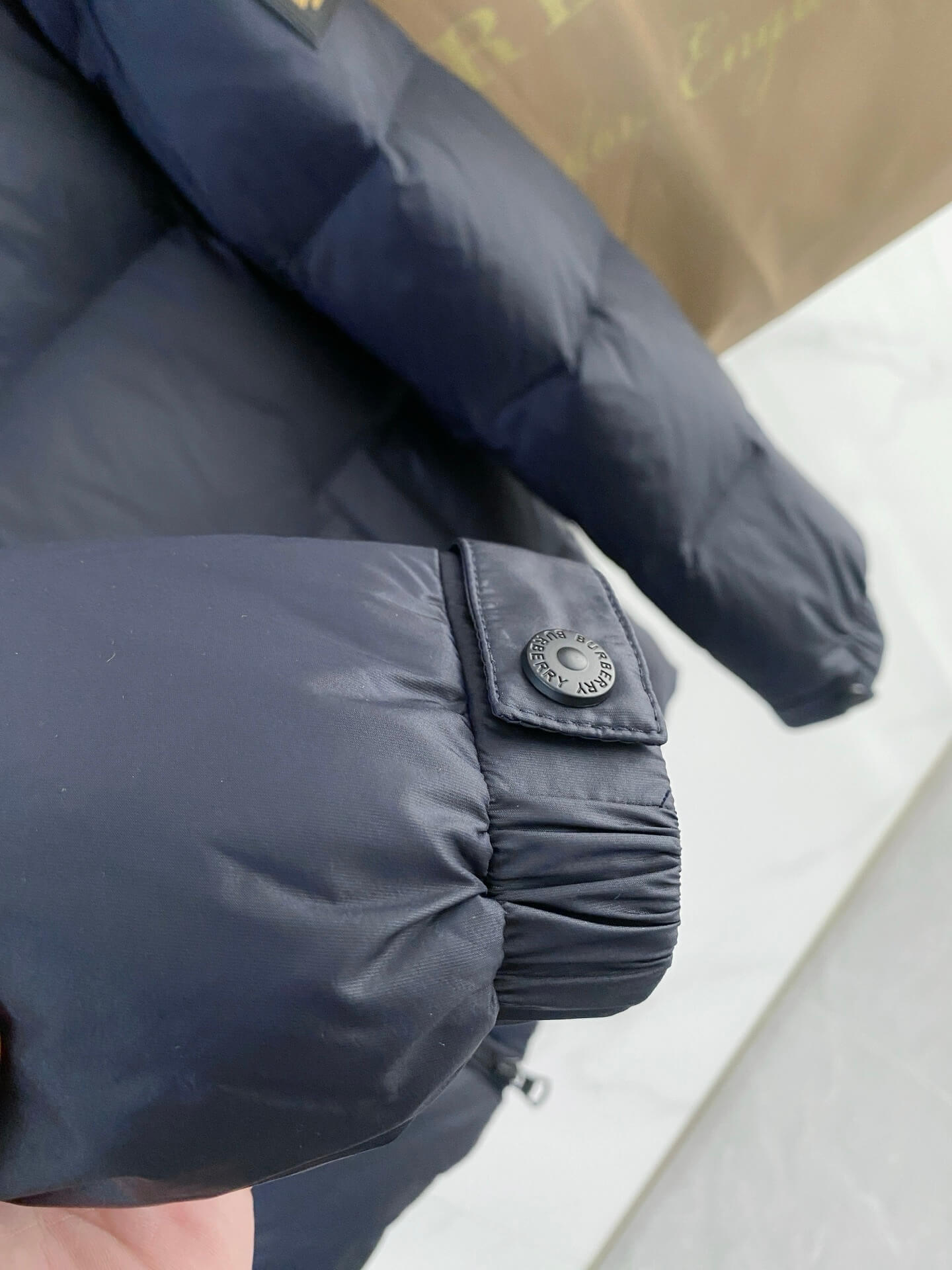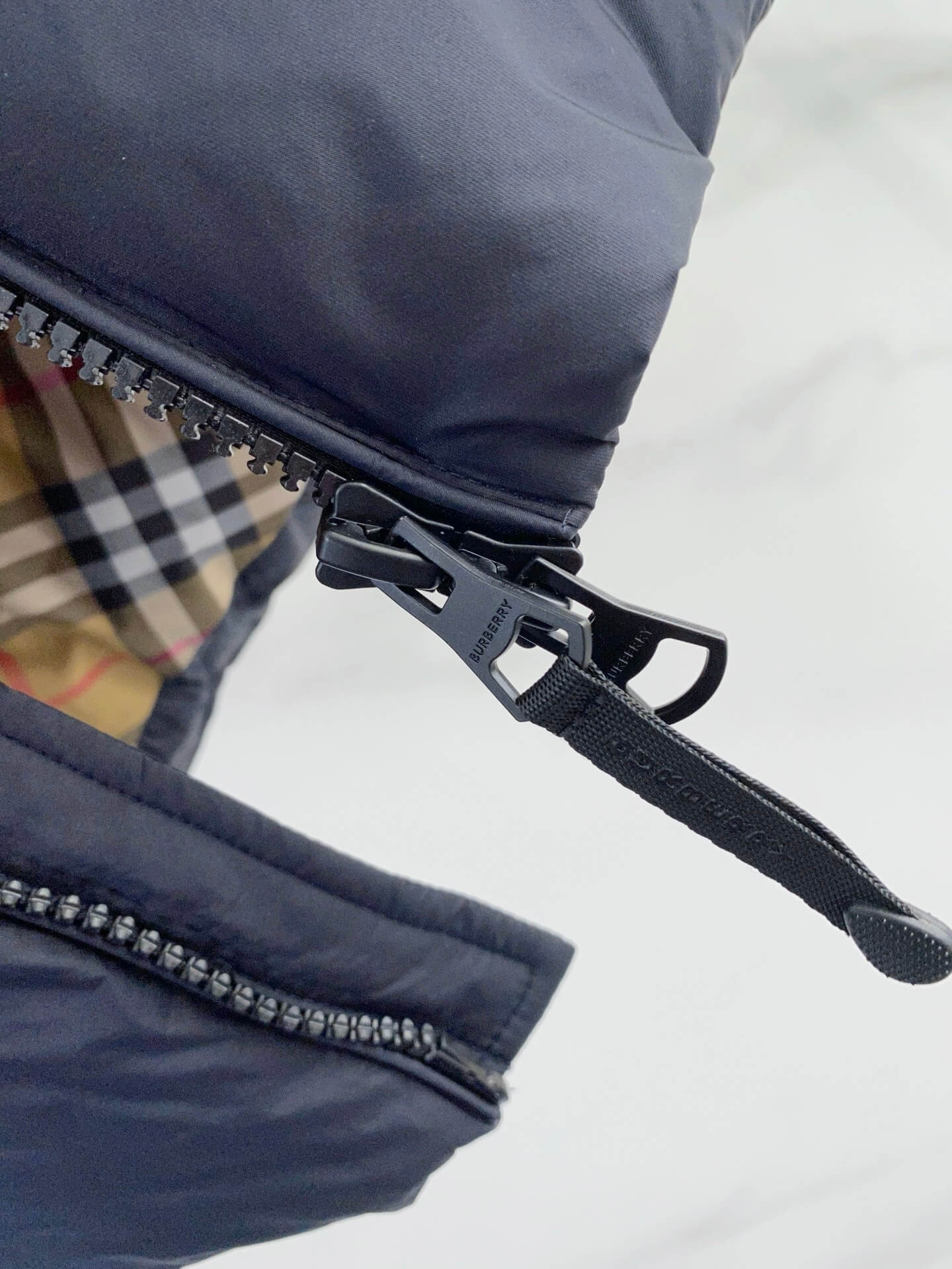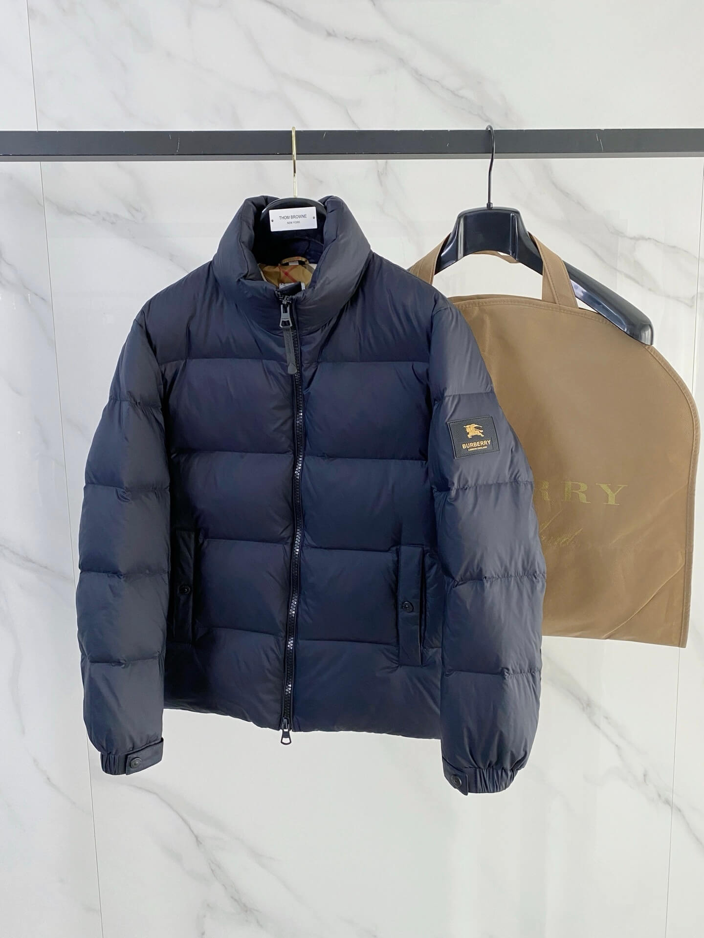 Those seeking a premium, luxury-inspired navy puffer jacket with classic Burberry aesthetics.