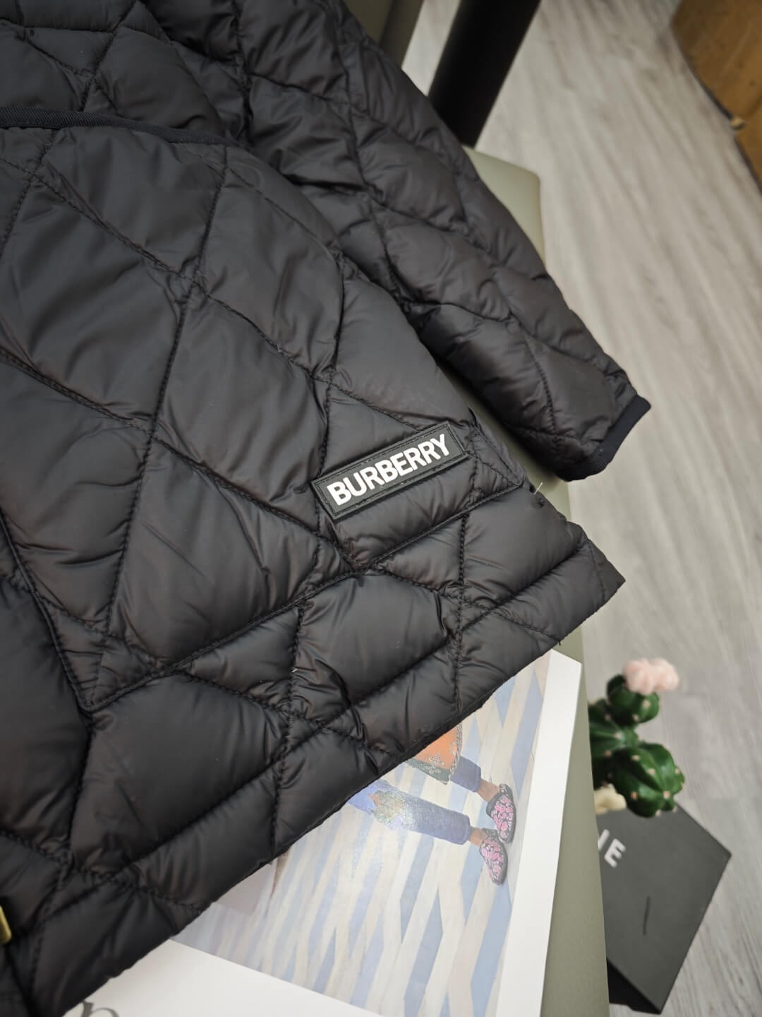 Step into the colder season with timeless elegance and warmth in this Burberry quilted down jacket. A modern interpretation of a heritage classic, this jacket is designed to provide exceptional insulation while maintaining a refined and sophisticated profile. The classic black hue offers a versatile and timeless option for winter, while the iconic check lining on the hood provides a subtle nod to the brand’s enduring legacy. Its sleek silhouette ensures a chic, streamlined look that is perfect for everyday wear.