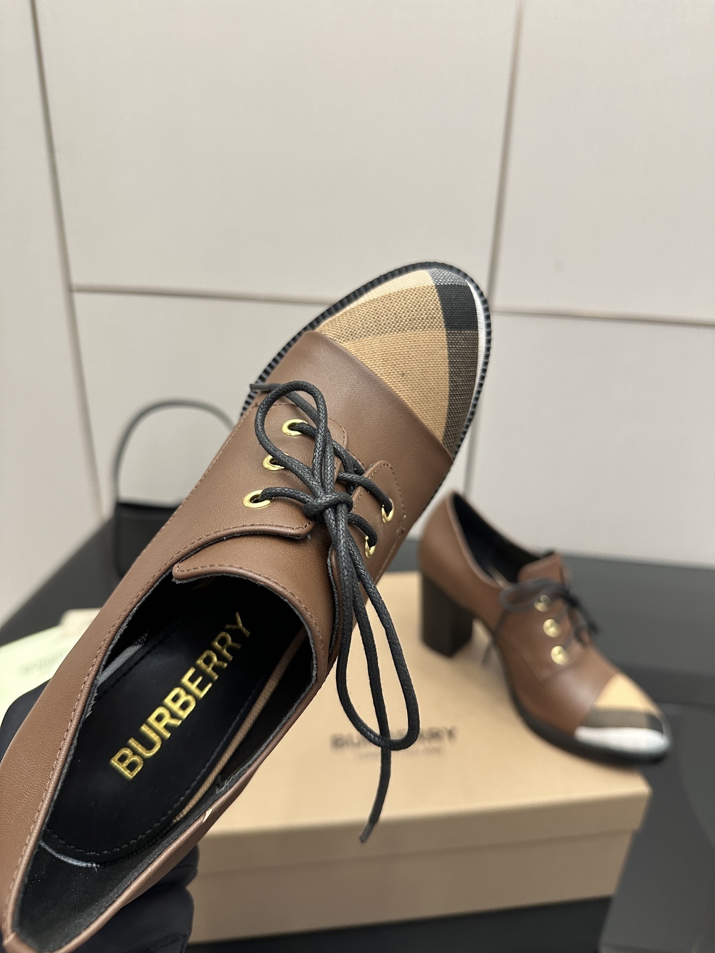 Color: Brown leather with Vintage Check canvas toe