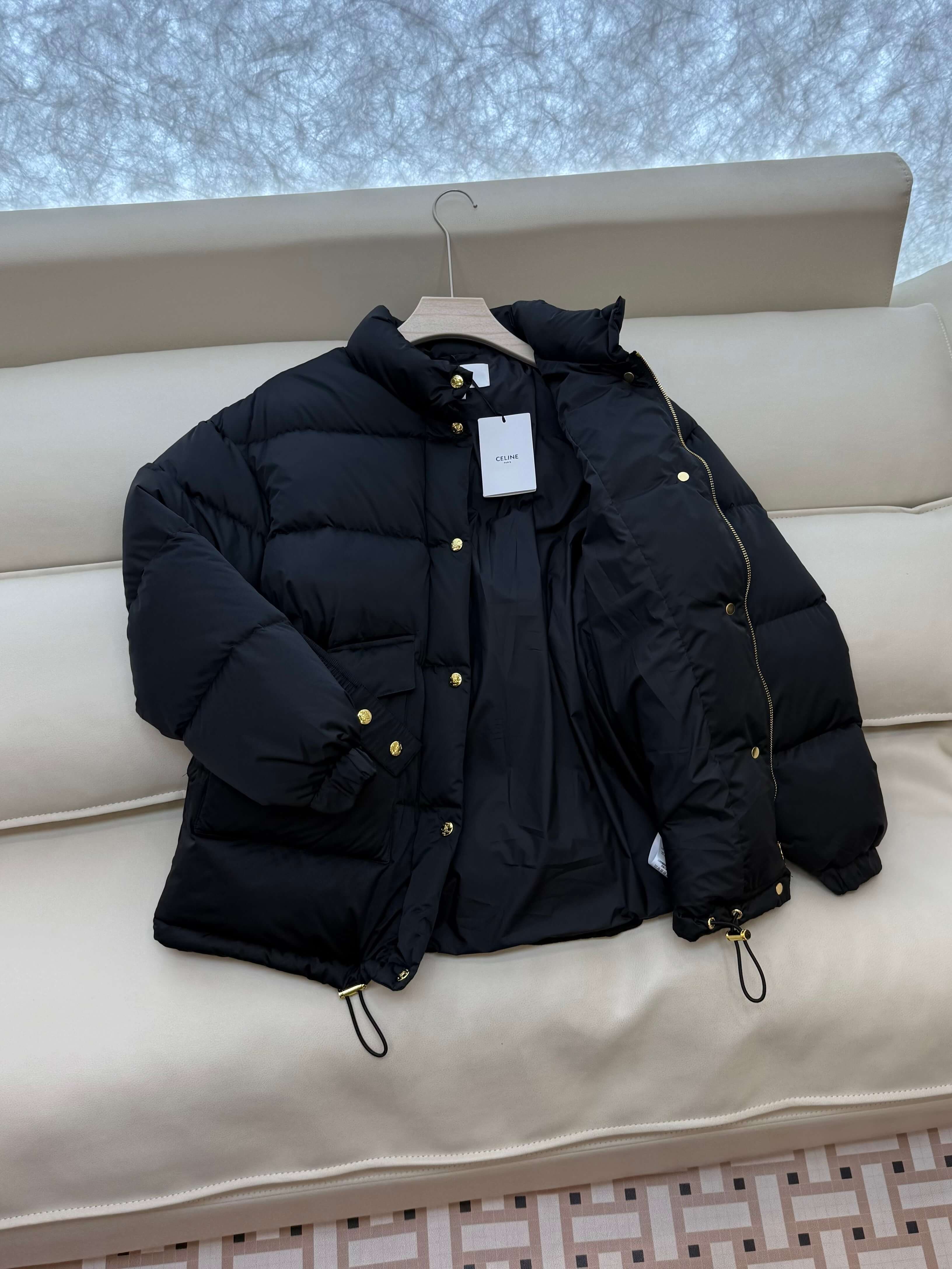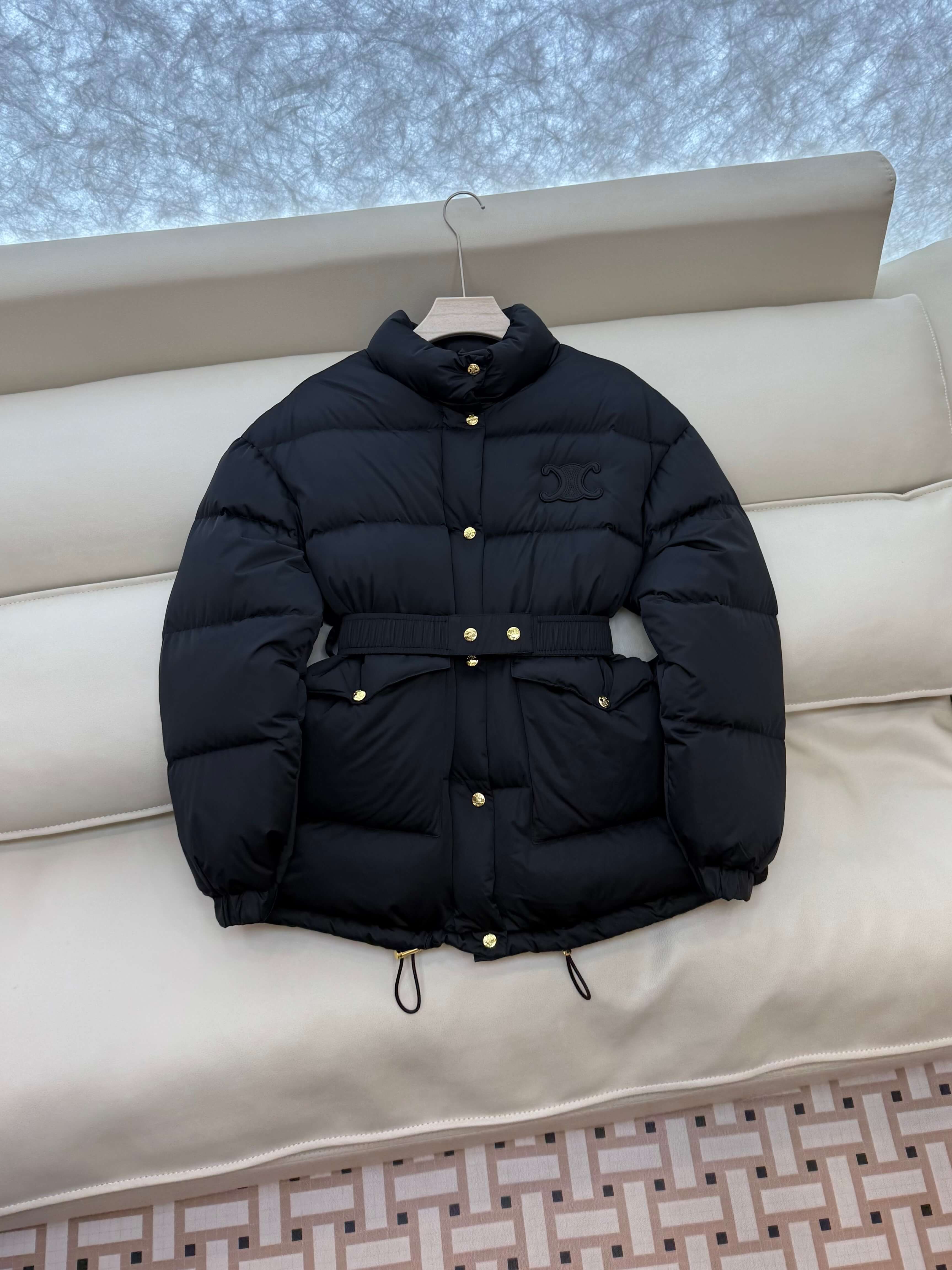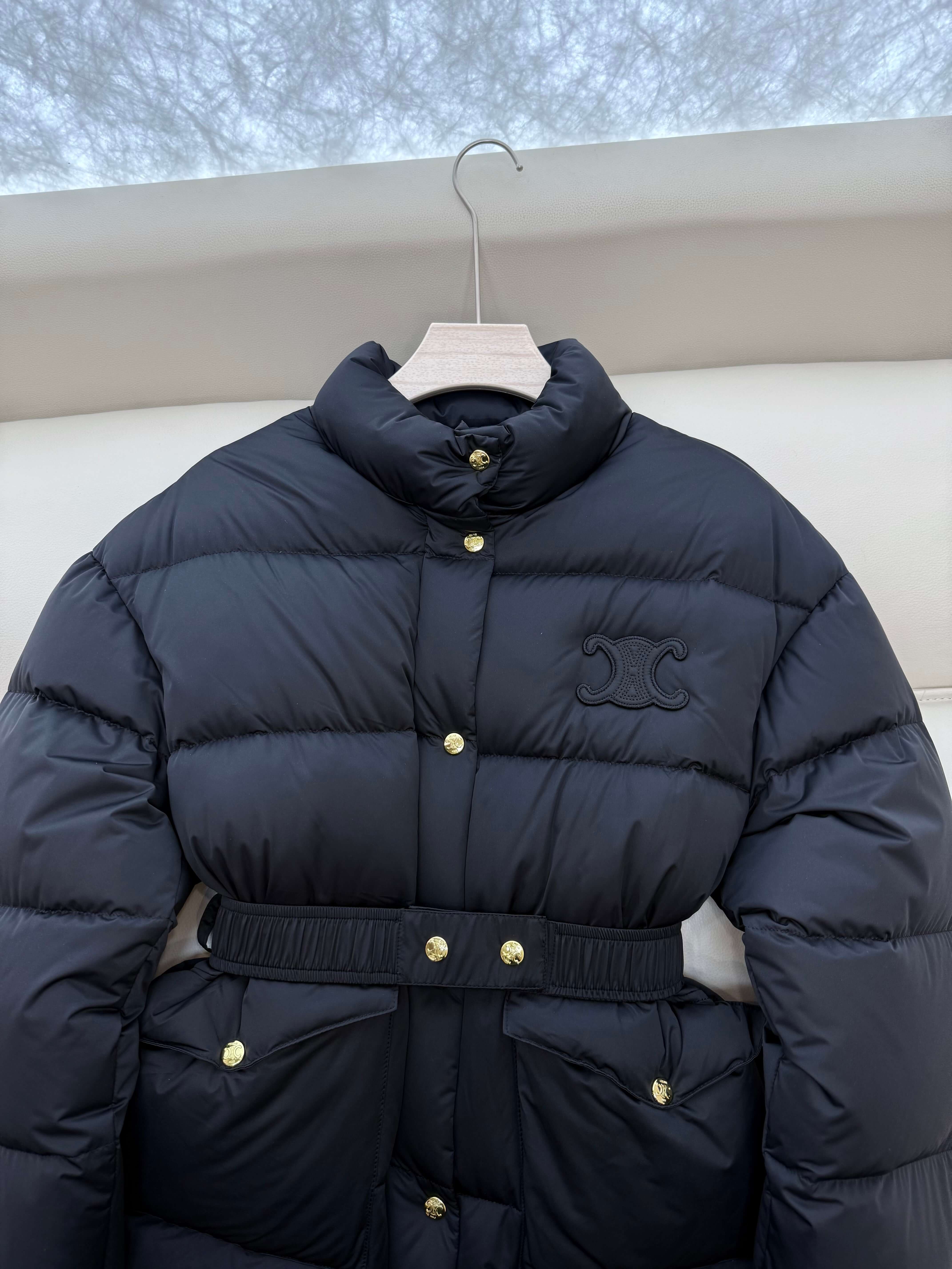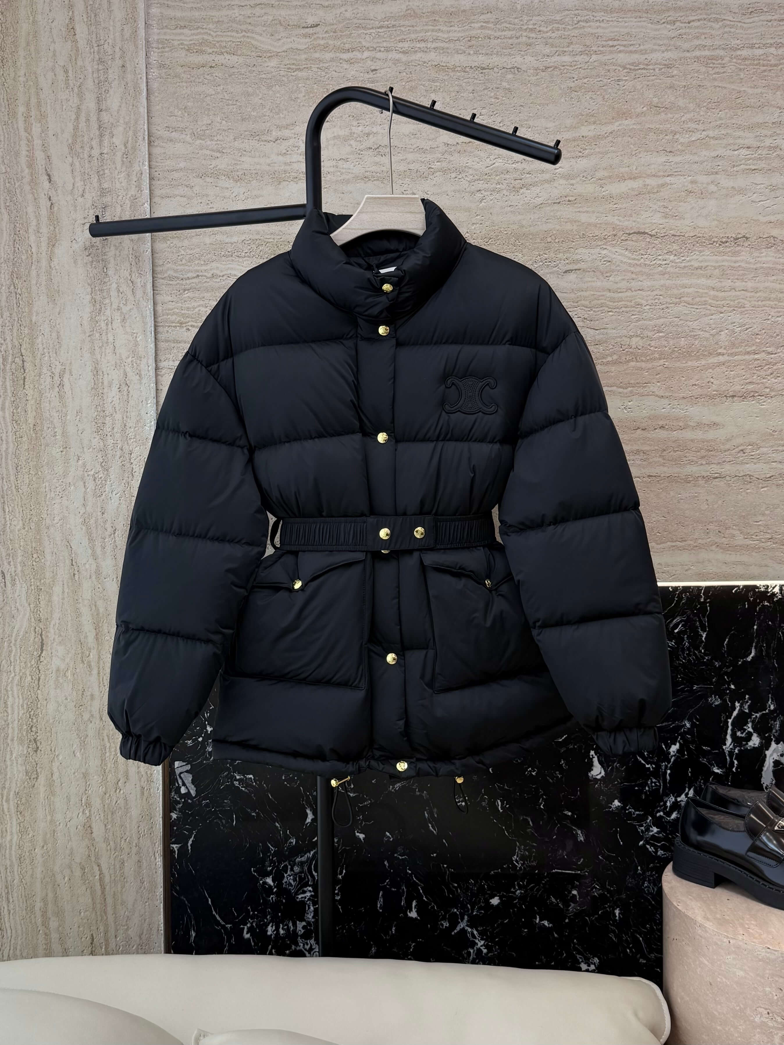 Step into the winter season with the timeless elegance and warmth of the Celine Puffer Jacket in black. This jacket is not just a piece of outerwear; it’s a versatile and sophisticated shield against the cold. The classic black color makes it a versatile wardrobe staple, effortlessly complementing any outfit from casual to chic. Its luxurious, down-filled material provides an immediate sense of cozy comfort, ensuring you stay warm in style. The design is a masterclass in combining the practicality of a puffer with a flattering, tailored silhouette, thanks to the included belt that defines the waist beautifully.