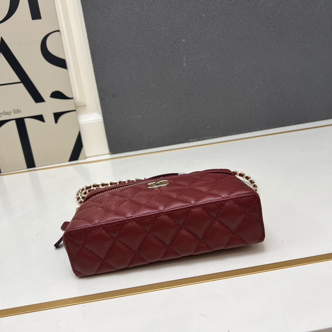 Chanel Burgundy Caviar Quilted Small Vanity Case with Gold-Tone Hardware