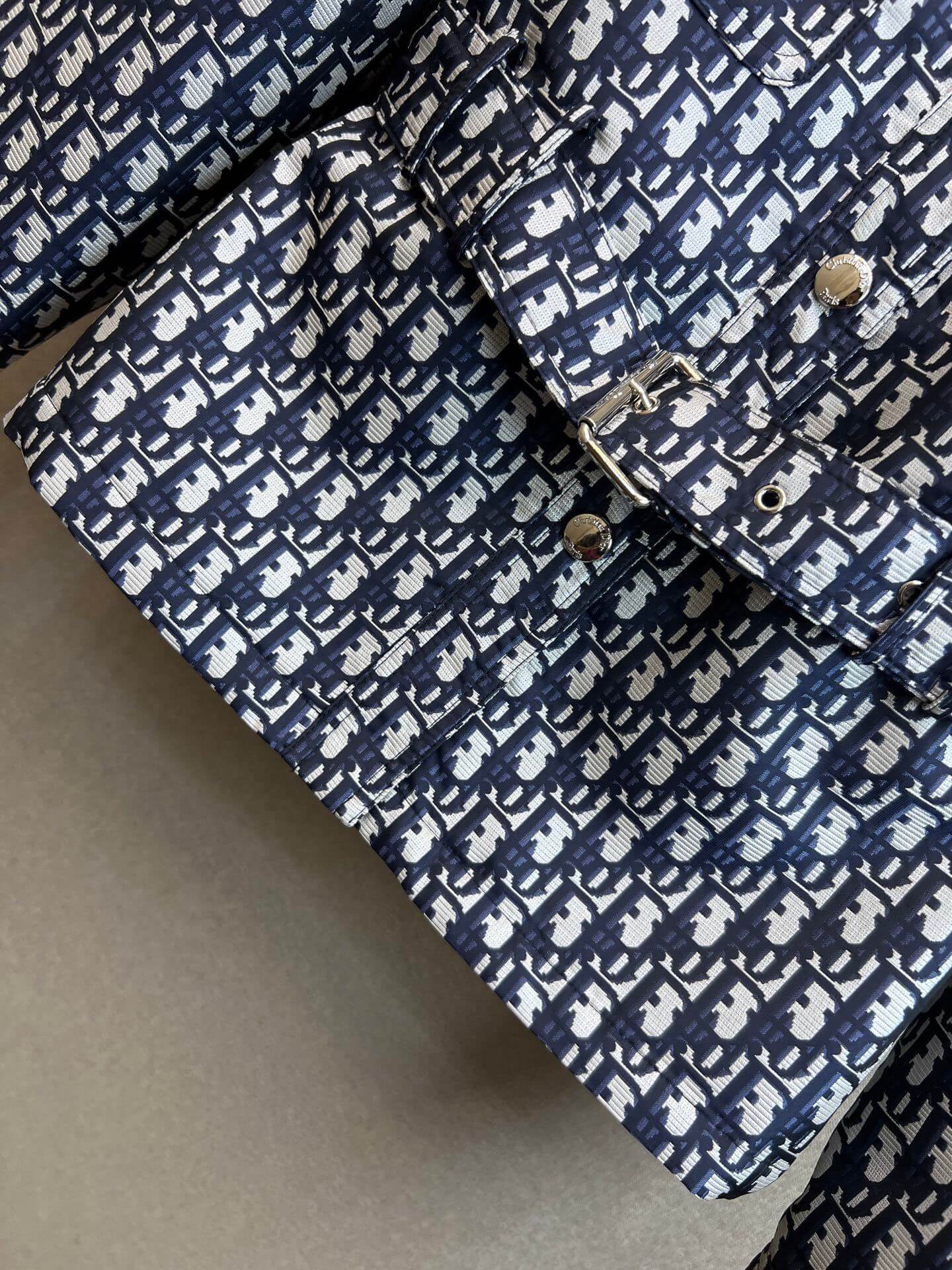 The Christian Dior Oblique Denim-Style Jacket captures the essence of classic Dior elegance while offering the ease and versatility of a denim jacket. Crafted in a blue-and-white Oblique jacquard, it features a crisp collar, flap chest pockets, and a defined waist that subtly enhances the figure. The polished buttons add a refined finish, making this piece suitable for both casual styling and elevated pairings. Whether layered over a tee, knit, or dress, it effortlessly anchors any look with sophistication.
