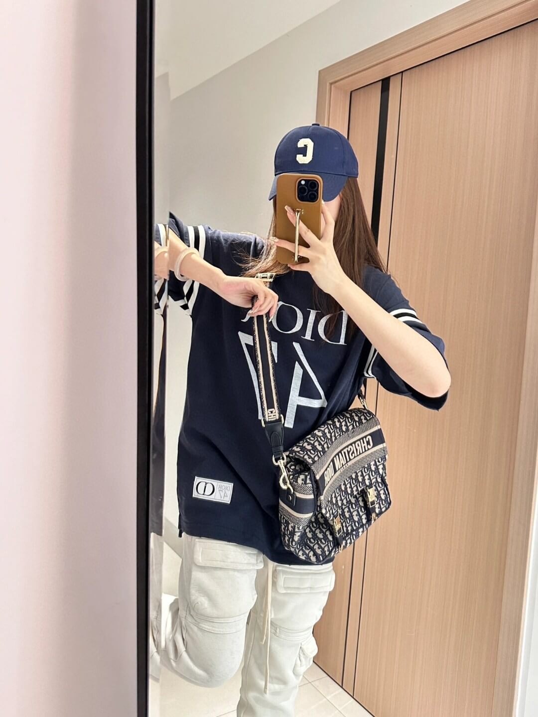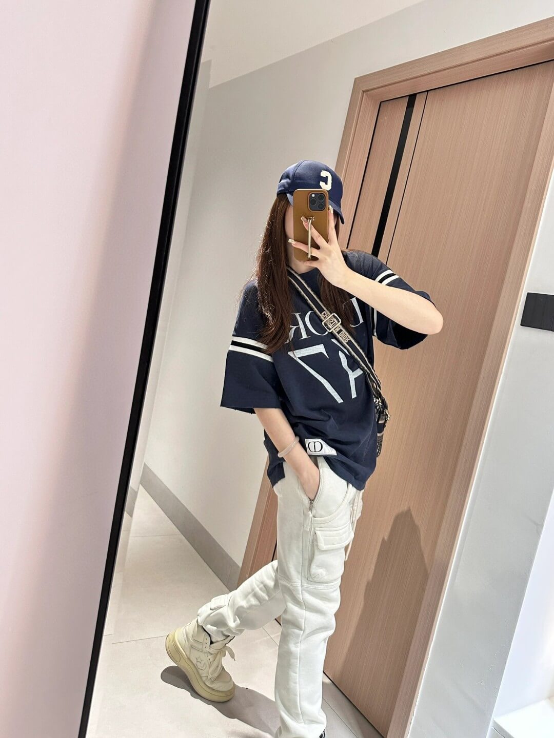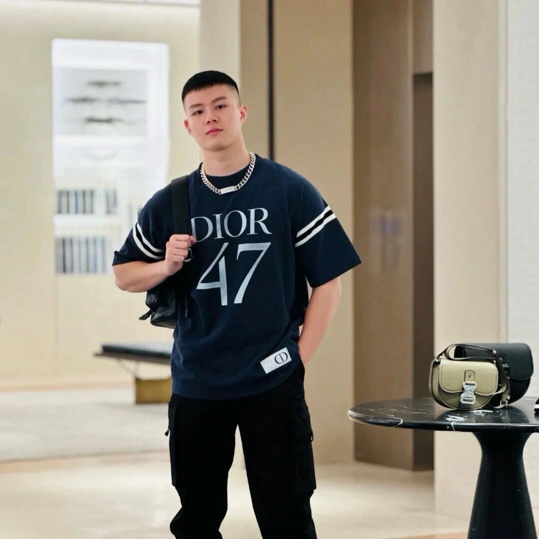 Heritage Branding: Features the iconic “DIOR 47” graphic in a high-contrast, crisp white print, celebrating the brand’s historic roots in a modern, varsity-inspired font.