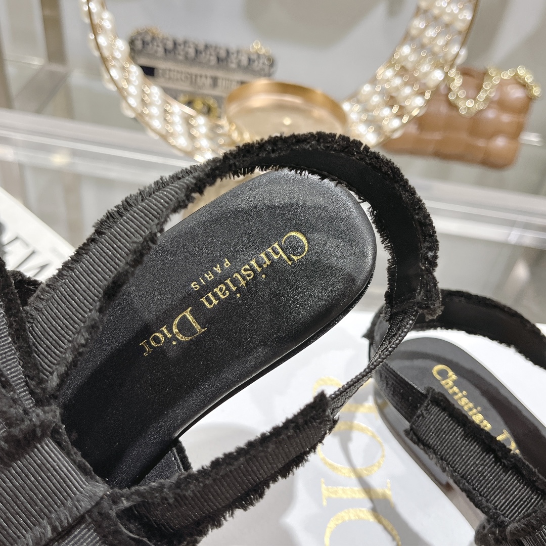 The sandal features a slim back strap for a secure fit. “Christian Dior” is printed in gold on the insole, highlighting the brand’s heritage. Its lightweight construction makes it perfect for effortless summer elegance. Designed for both comfort and style, it transitions easily from day to evening.