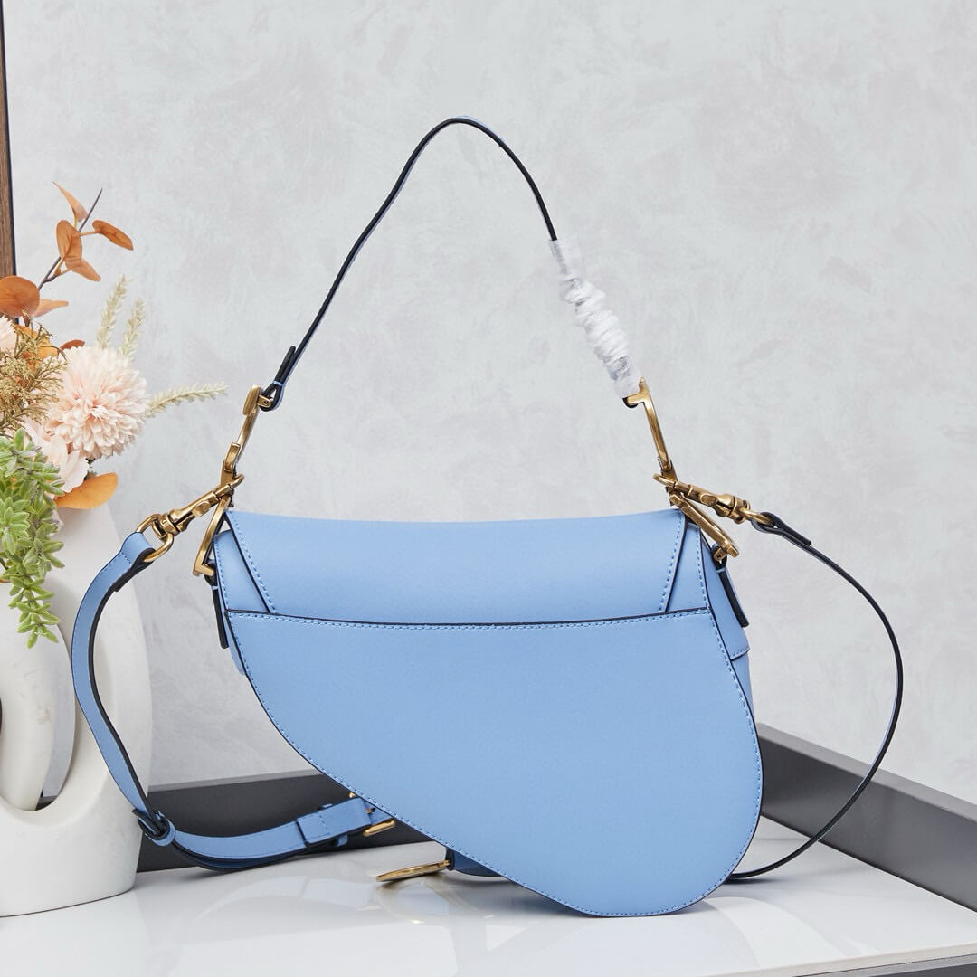 The Dior Mini Saddle Bag in Blue Ultramatte Calfskin is a statement of modern elegance. The ultra matte blue finish enhances the luxurious high-end cowhide leather, offering a sleek and polished look. Featuring a magnetic flap closure for secure access and an adjustable strap for versatile styling.