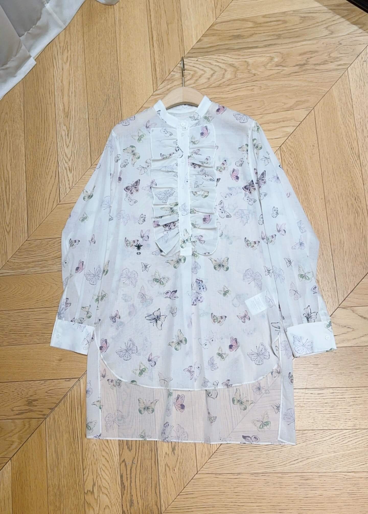 The Dior Butterfly Print Ruffled Blouse in White/Multi captures ethereal femininity with its delicate motifs and romantic ruffle detailing. Designed for women who appreciate light, elegant pieces that elevate everyday style, this blouse is perfect for brunch dates, garden events, office-ready ensembles, or chic vacation dressing. The flowy silhouette and whimsical print make it a standout choice for warm-weather refinement and effortless sophistication.