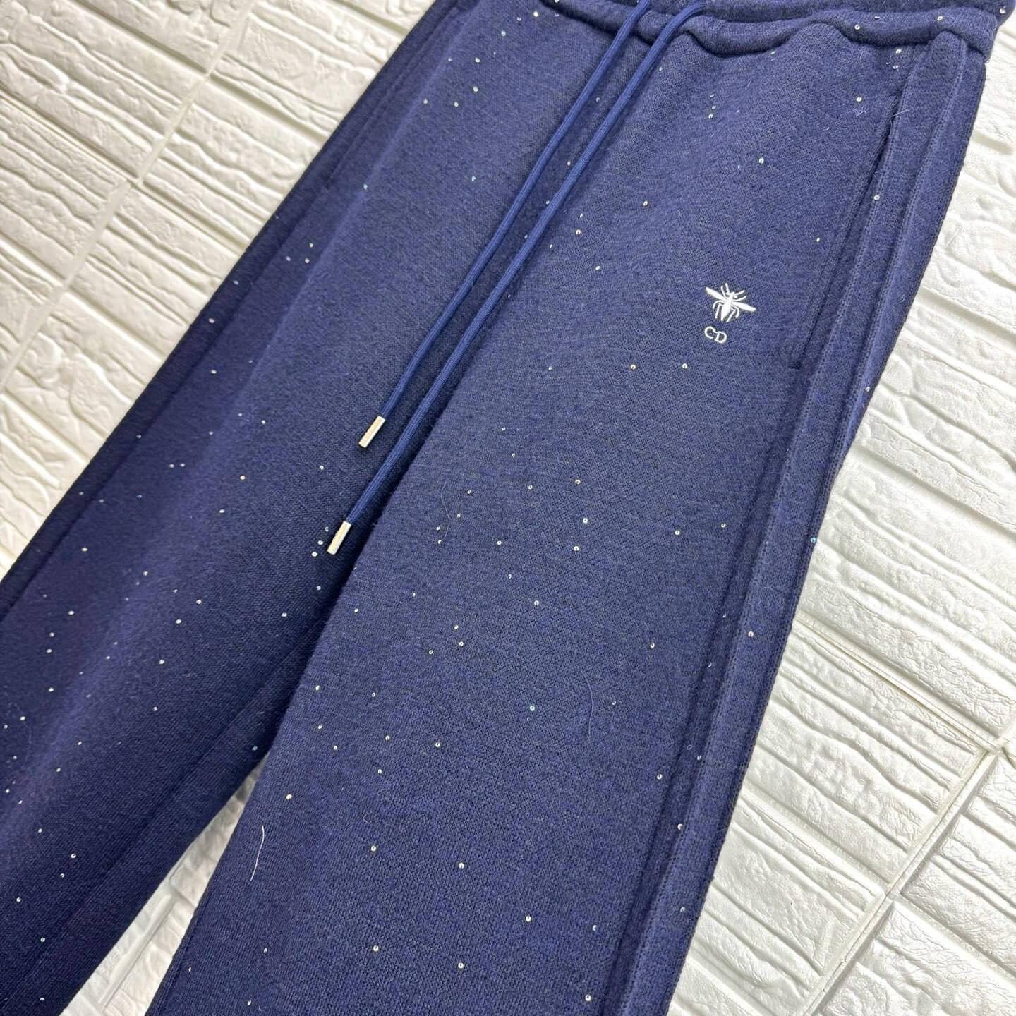 Crafted for effortless luxury, these wide-leg joggers combine relaxed style with sophisticated details. The Dior CD Star logo is adorned with crystal accents, giving a refined sparkle to the cotton fabric. Designed for the colder months, they feature an elastic waistband with embossed logo webbing for a structured fit, offering both comfort and a tailored look. The versatile wide-leg cut pairs seamlessly with coats and casual pieces, reflecting the chic, modern aesthetic of Dior’s athleisure-inspired collection.