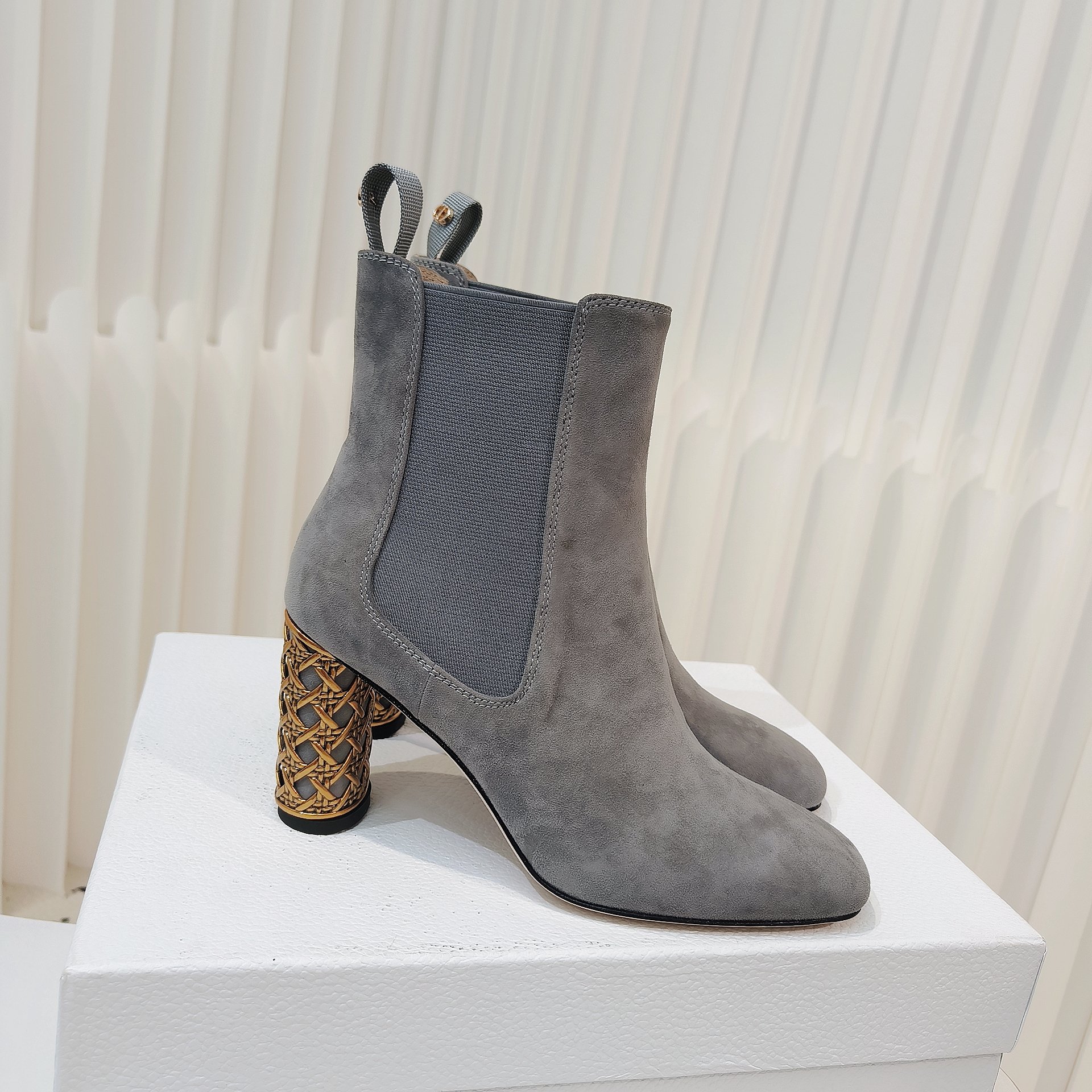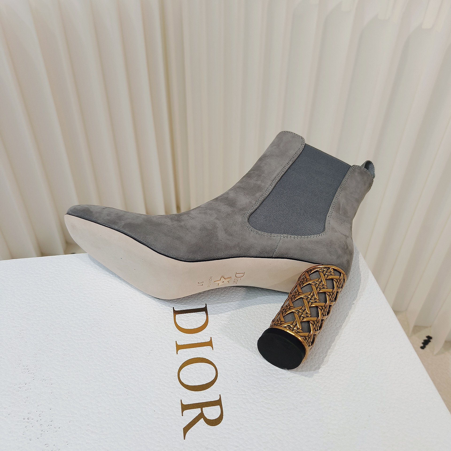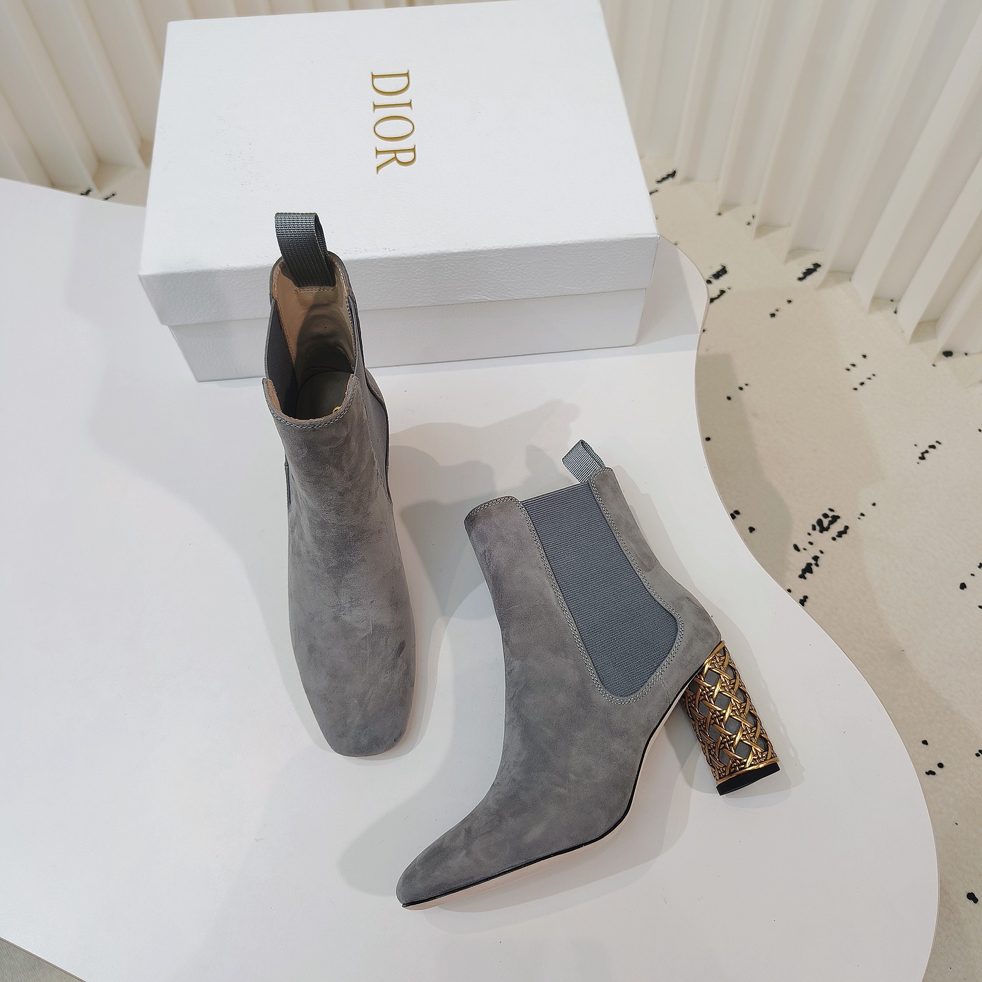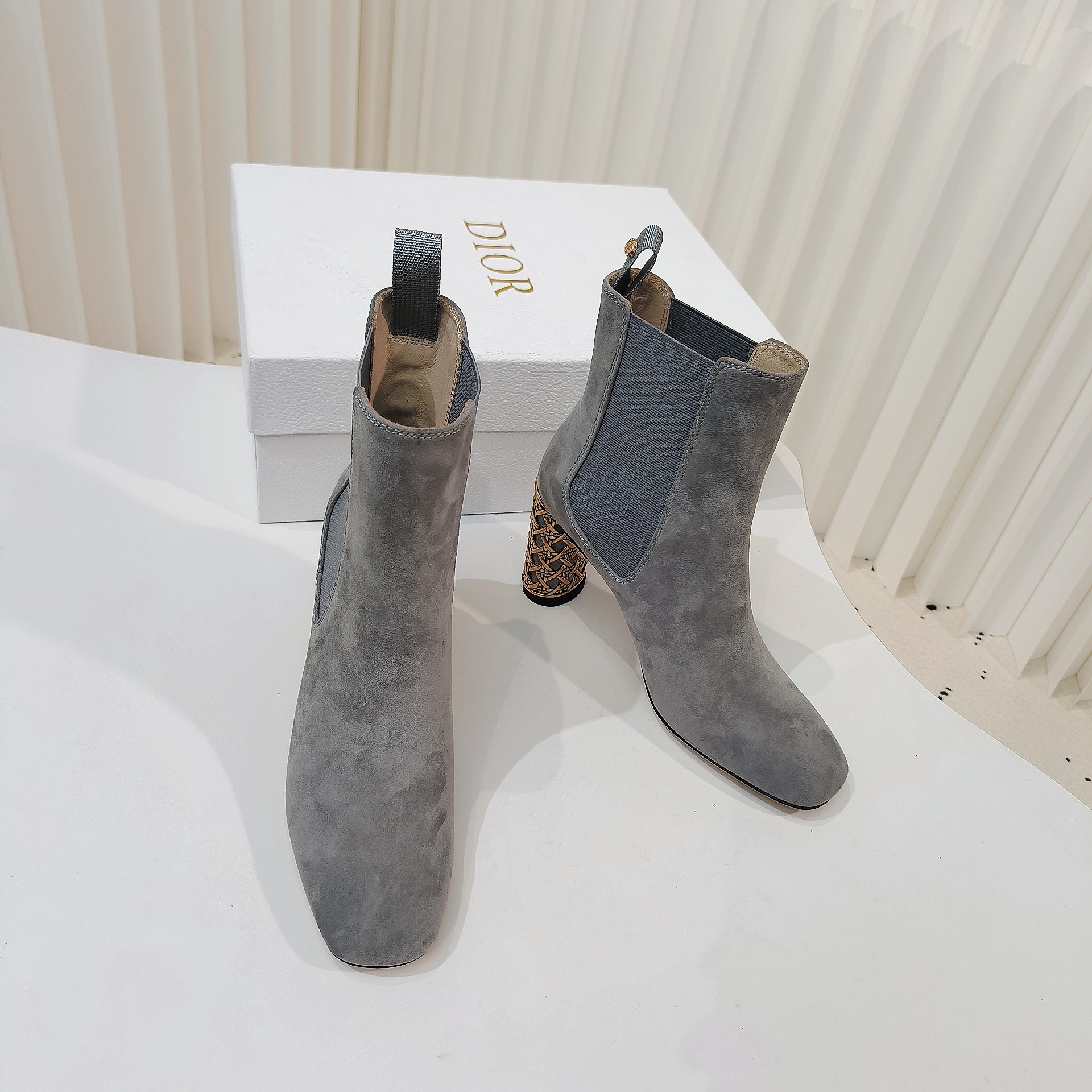 The Dior Icon Ankle Boots blend effortless sophistication with contemporary elegance, featuring a luxurious grey suede upper. The soft, rounded toe enhances the refined silhouette, while elasticated side panels ensure a comfortable and secure fit.
