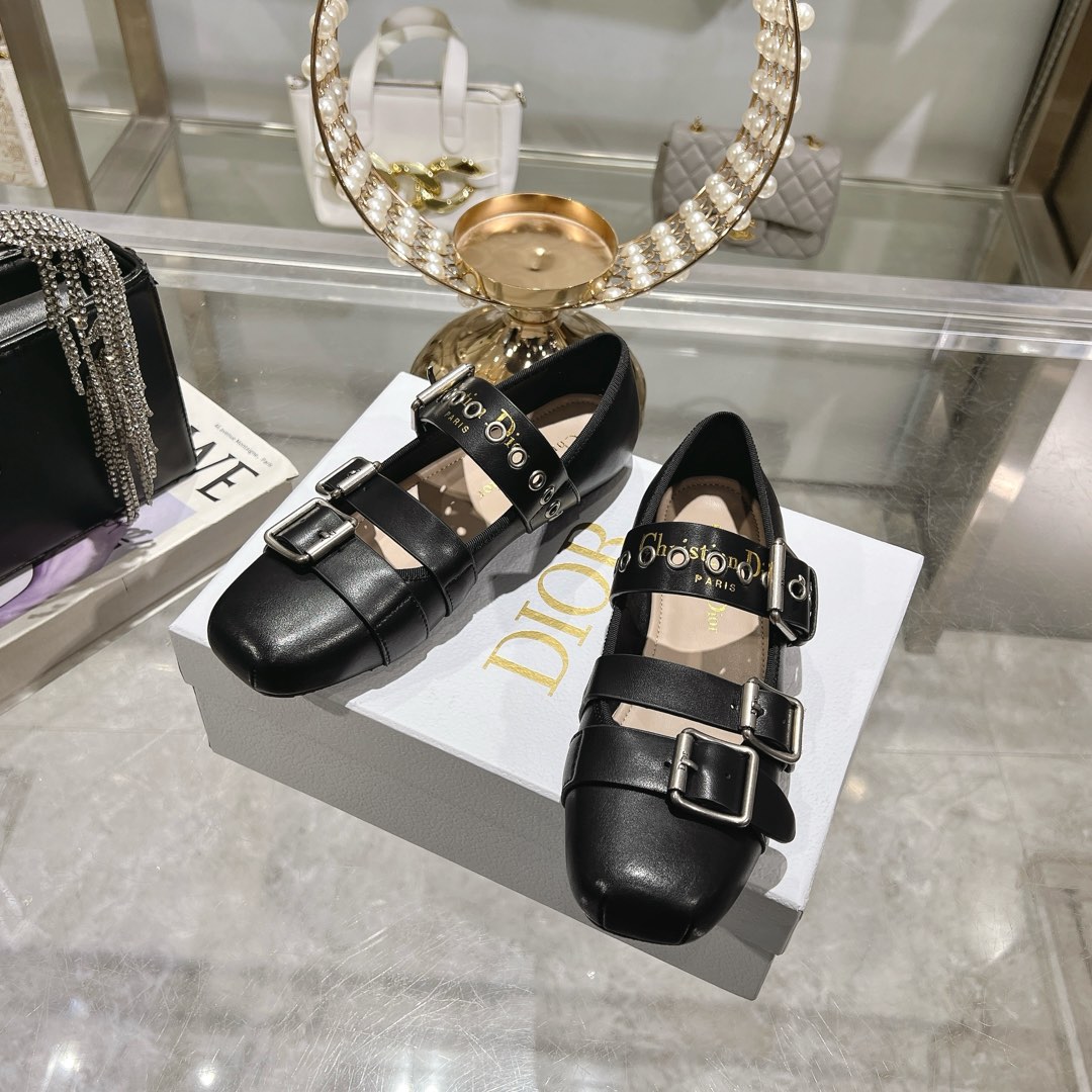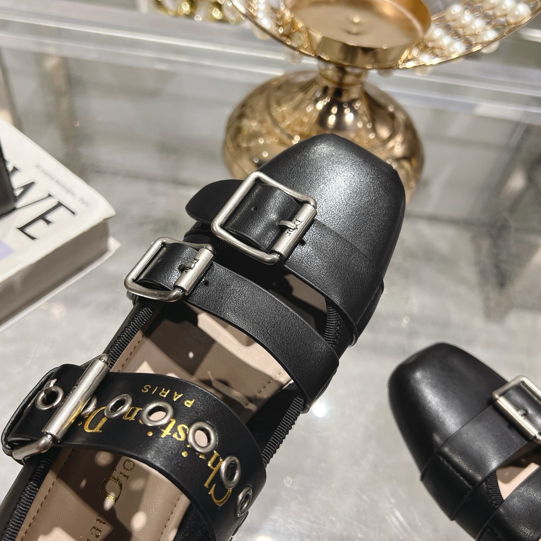 The Dior Punk Ballet Flat in Black merges elegance with a rebellious attitude. Crafted from smooth black calfskin, this statement shoe is designed with bold leather straps featuring silver-tone buckles and grommet details. The gold-tone Christian Dior Paris signature on the eyelet strap adds a luxurious contrast, enhancing its edgy aesthetic.