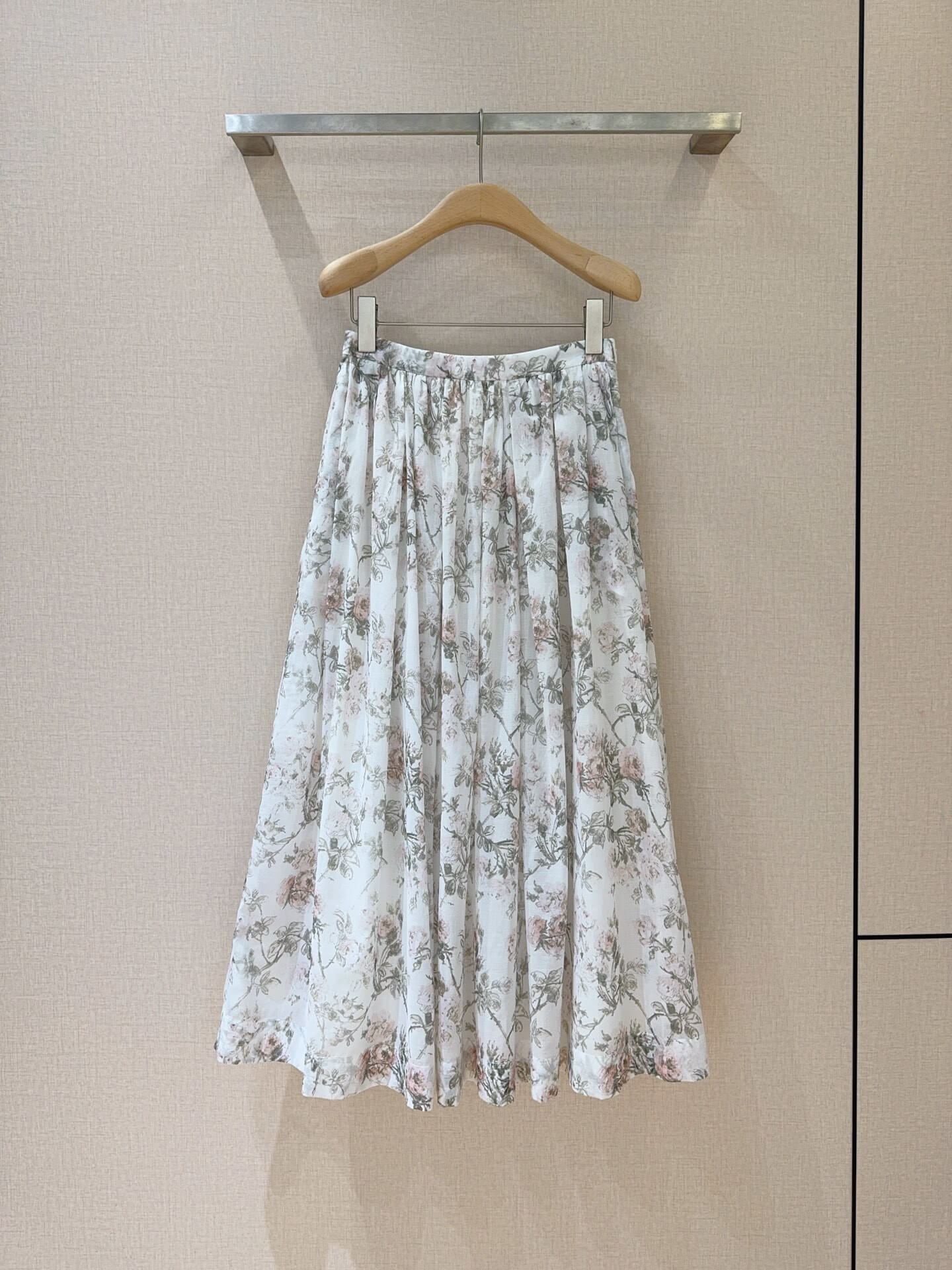 Crafted from pure cotton with a soft, delicate handfeel, the Dior White Floral Print Pleated Midi Skirt blends timeless femininity with modern practicality. The gentle pleating creates fluid movement with every step, while the high-waisted A-line silhouette elongates the legs and flatters the figure with ease. A discreet invisible zipper ensures seamless structure, allowing the intricate floral print—rendered in muted greens and soft blush tones—to take center stage. Whether paired with crisp shirts, lightweight knits, or simple tees, this skirt transforms everyday dressing into an expression of effortless sophistication.