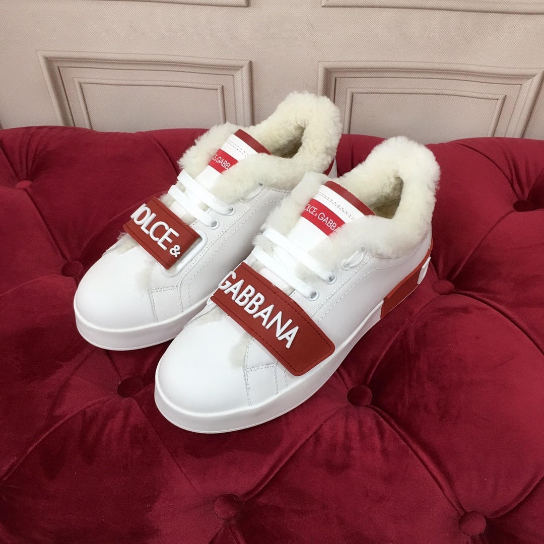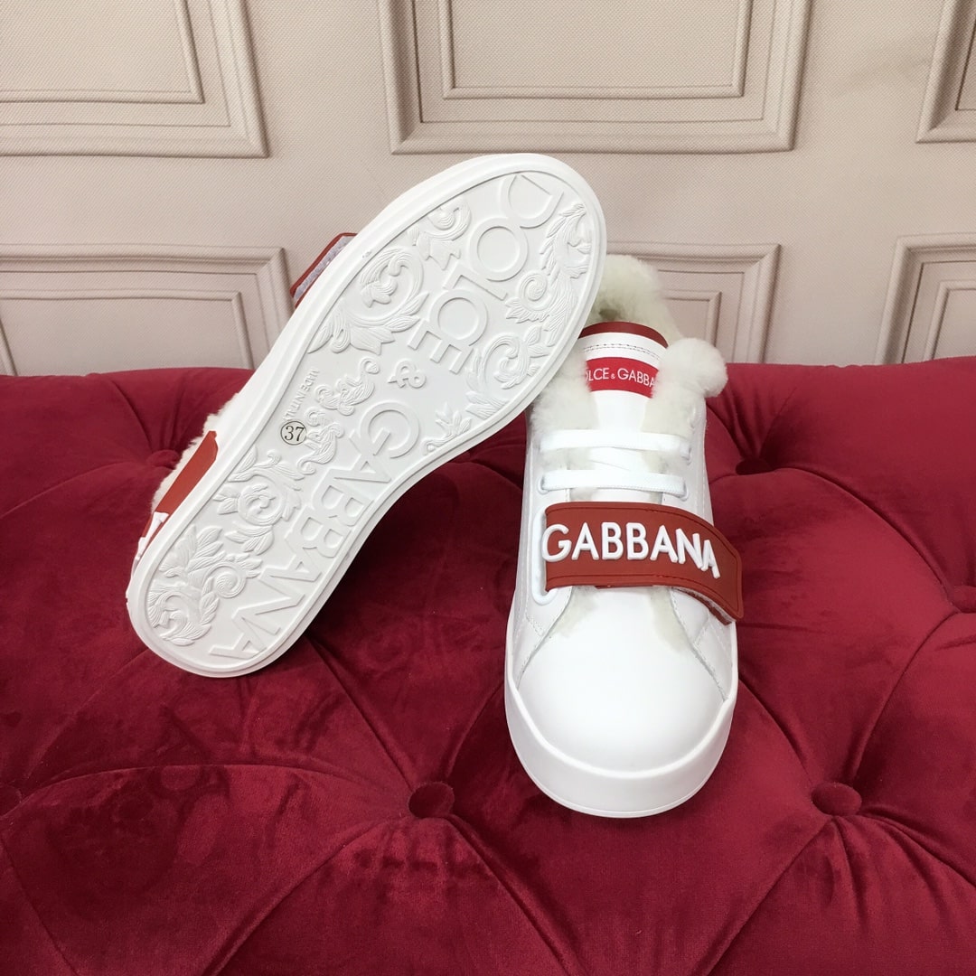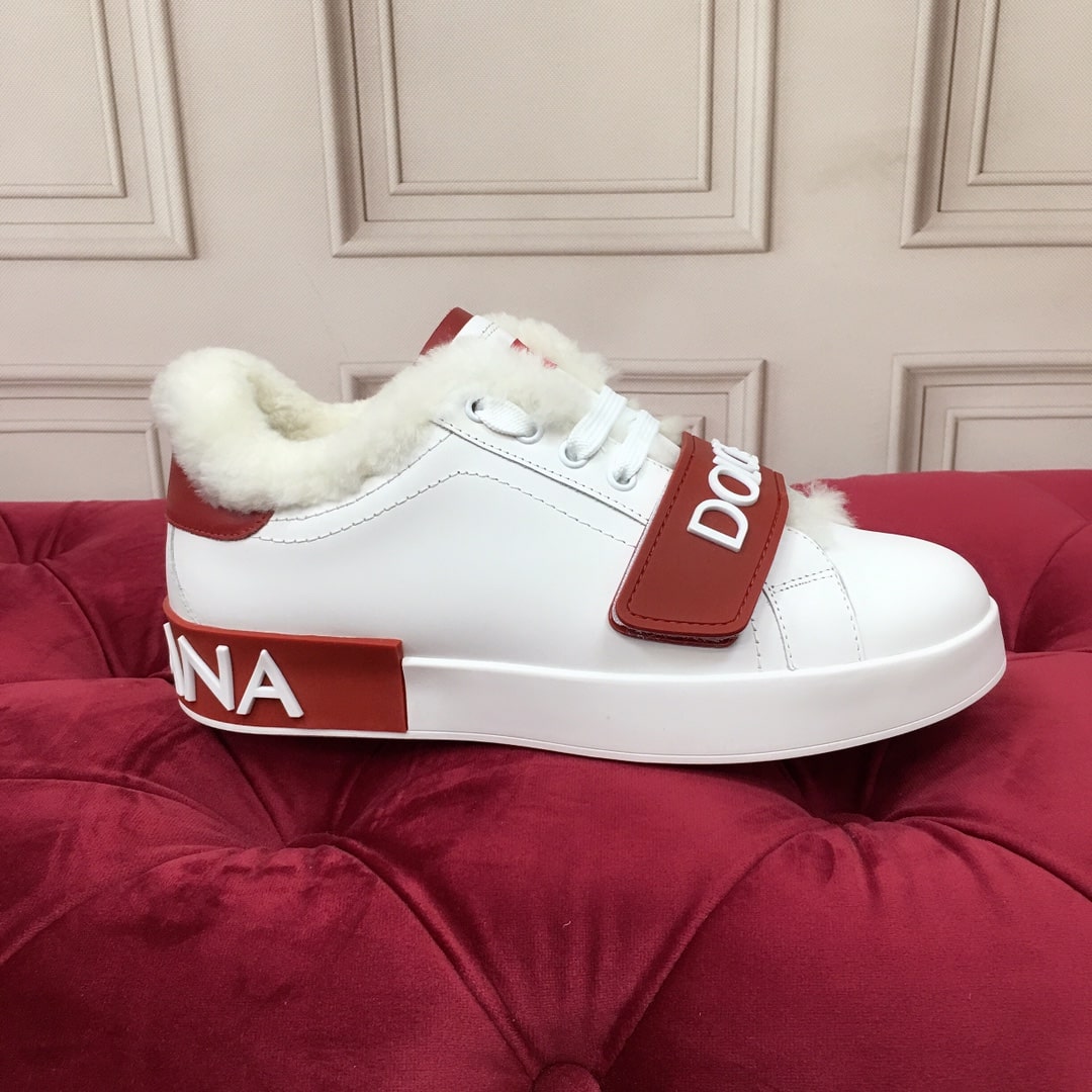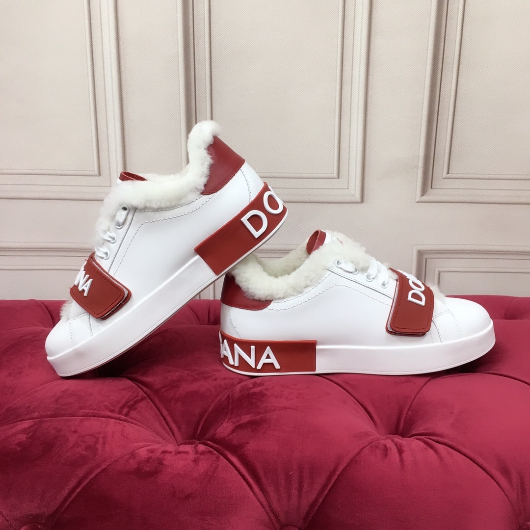 Make a bold entrance with the Dolce & Gabbana DG black and red sneakers with white fur—where street style meets luxurious detail. Featuring a striking black and red upper crafted from premium materials, these sneakers are elevated with a plush white fur trim for a standout look.