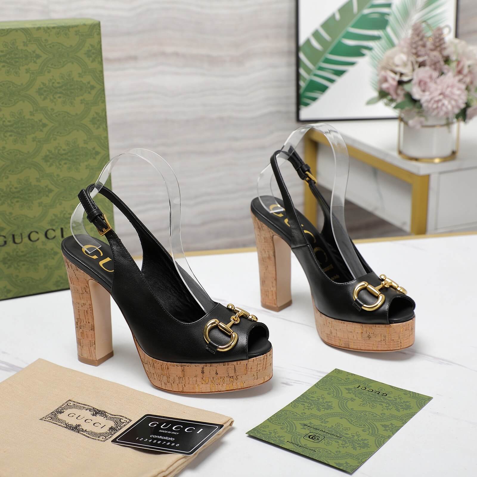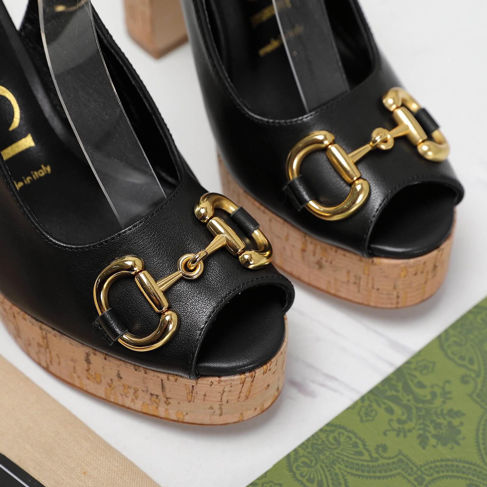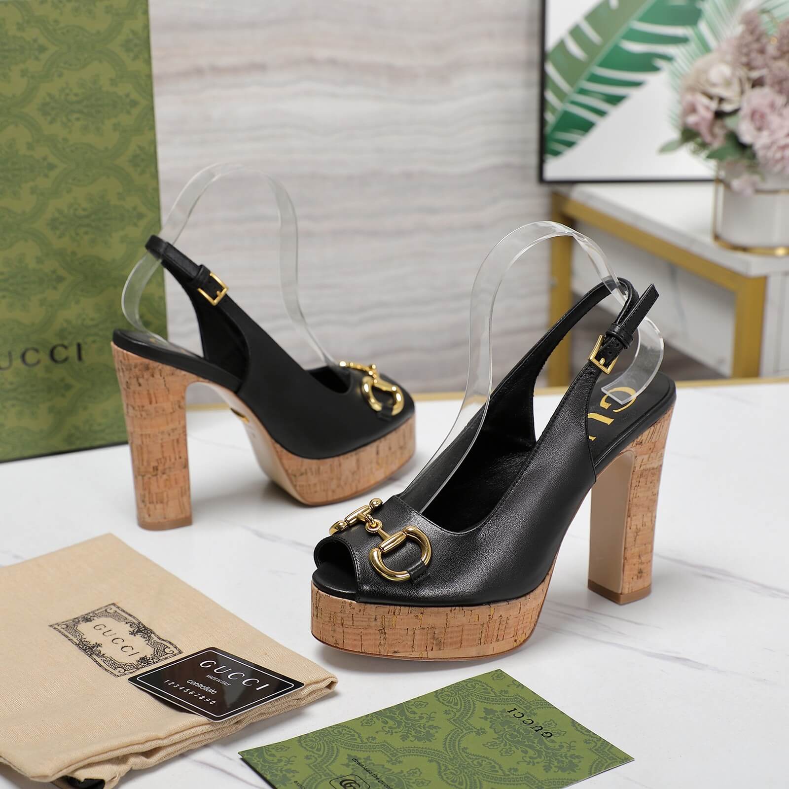 Embrace timeless elegance with these Gucci Classic Square Toe Platform Sandals in Black Leather. Designed with a luxurious black leather upper, these sandals feature Gucci’s signature Horsebit hardware in gleaming gold, adding a touch of heritage charm. The cork platform and block heel provide a vintage-inspired aesthetic while ensuring all-day comfort and stability. Finished with a sleek slingback strap with an adjustable buckle, these sandals redefine sophistication for any occasion.