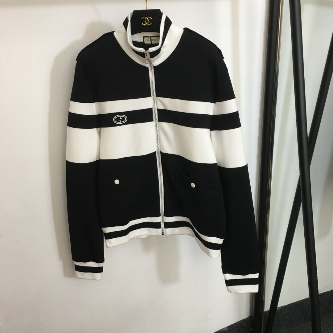 Designed to merge athletic ease with fashion-forward sophistication, the Gucci Stripe Detail Tracksuit – Dark Blue / Black features a striking interplay of contrasting stripes and subtle GG-inspired accents. The long-sleeved zip jacket offers a structured yet relaxed silhouette, while the coordinating trousers provide a smooth, tailored drape with everyday comfort. Crafted to move with you—from leisurely afternoons to polished casual outings—this tracksuit transforms loungewear into a statement of modern luxury.