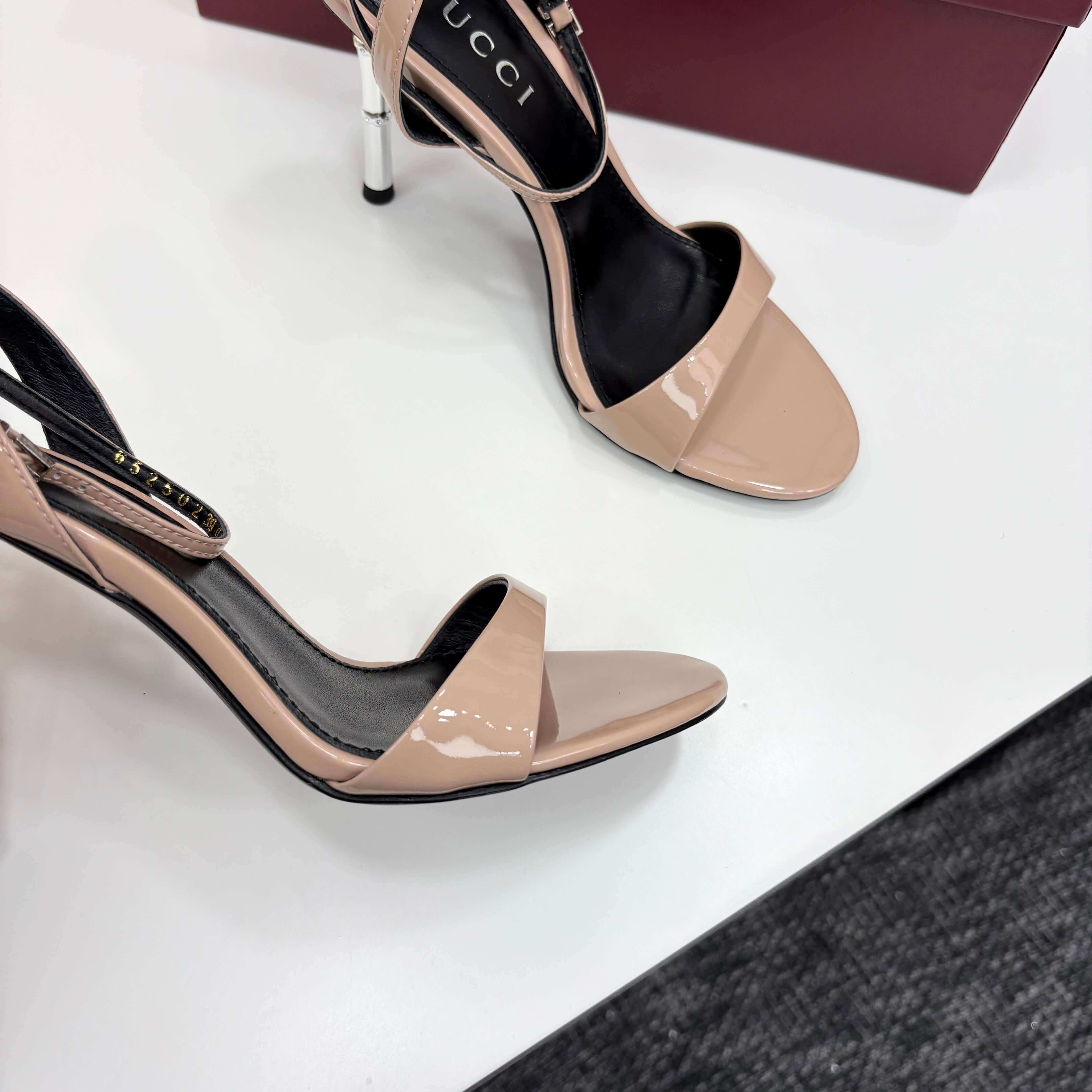 Q1: How should I care for the beige patent leather on these sandals? A1: To maintain the glossy finish, gently wipe the patent leather with a soft, dry cloth to remove dust and smudges. A slightly damp cloth can be used for deeper cleaning if necessary. Avoid abrasive materials or harsh chemicals. Store them in a dust bag to prevent scratches and maintain their shine.