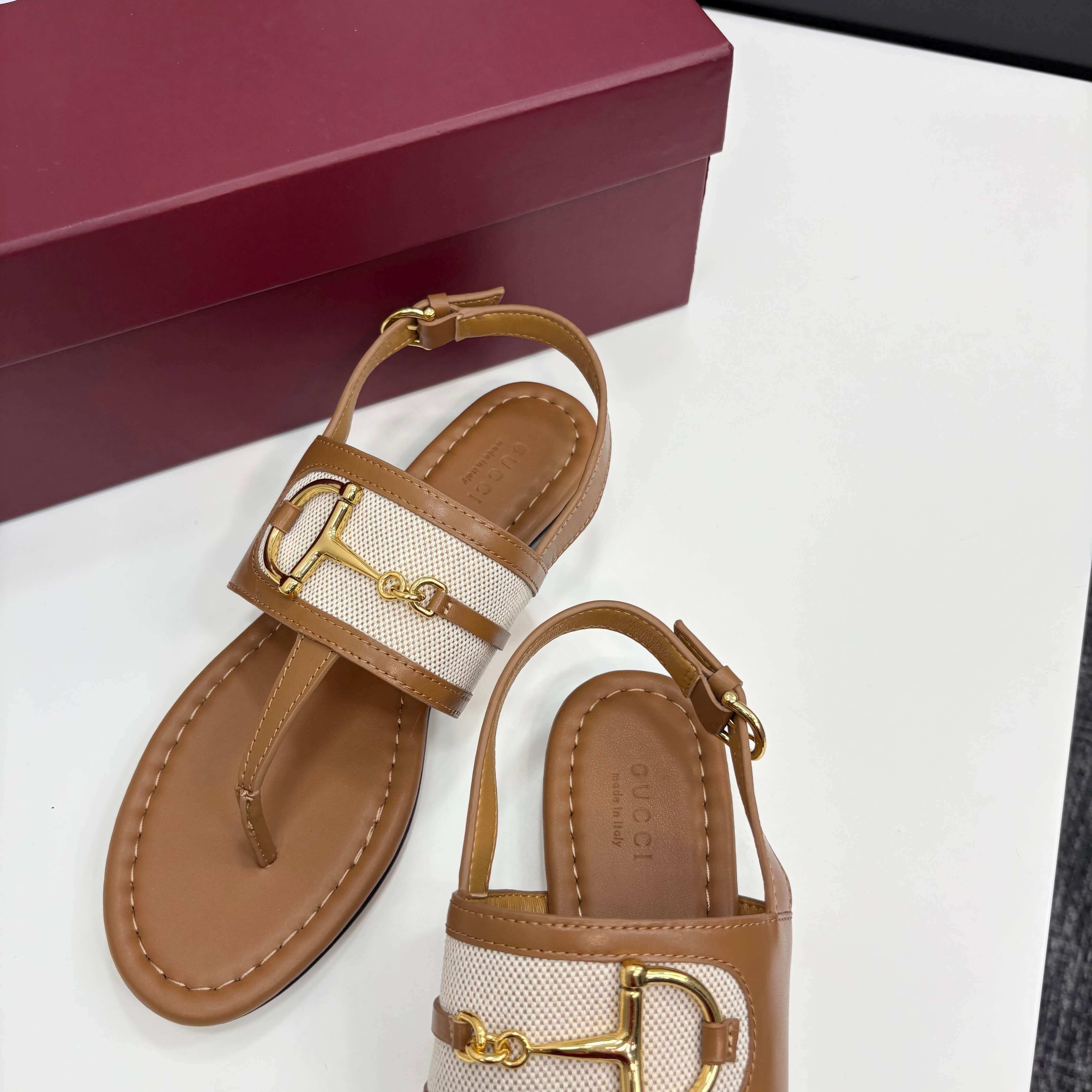 Q1: How should I care for the brown leather on these thong sandals ? A1: To care for the leather, wipe gently with a soft, dry cloth to remove dust. For light marks, a slightly damp cloth can be used, followed by immediate drying. Condition periodically with a leather conditioner to keep the material supple and prevent drying. Avoid prolonged exposure to direct sunlight or moisture.