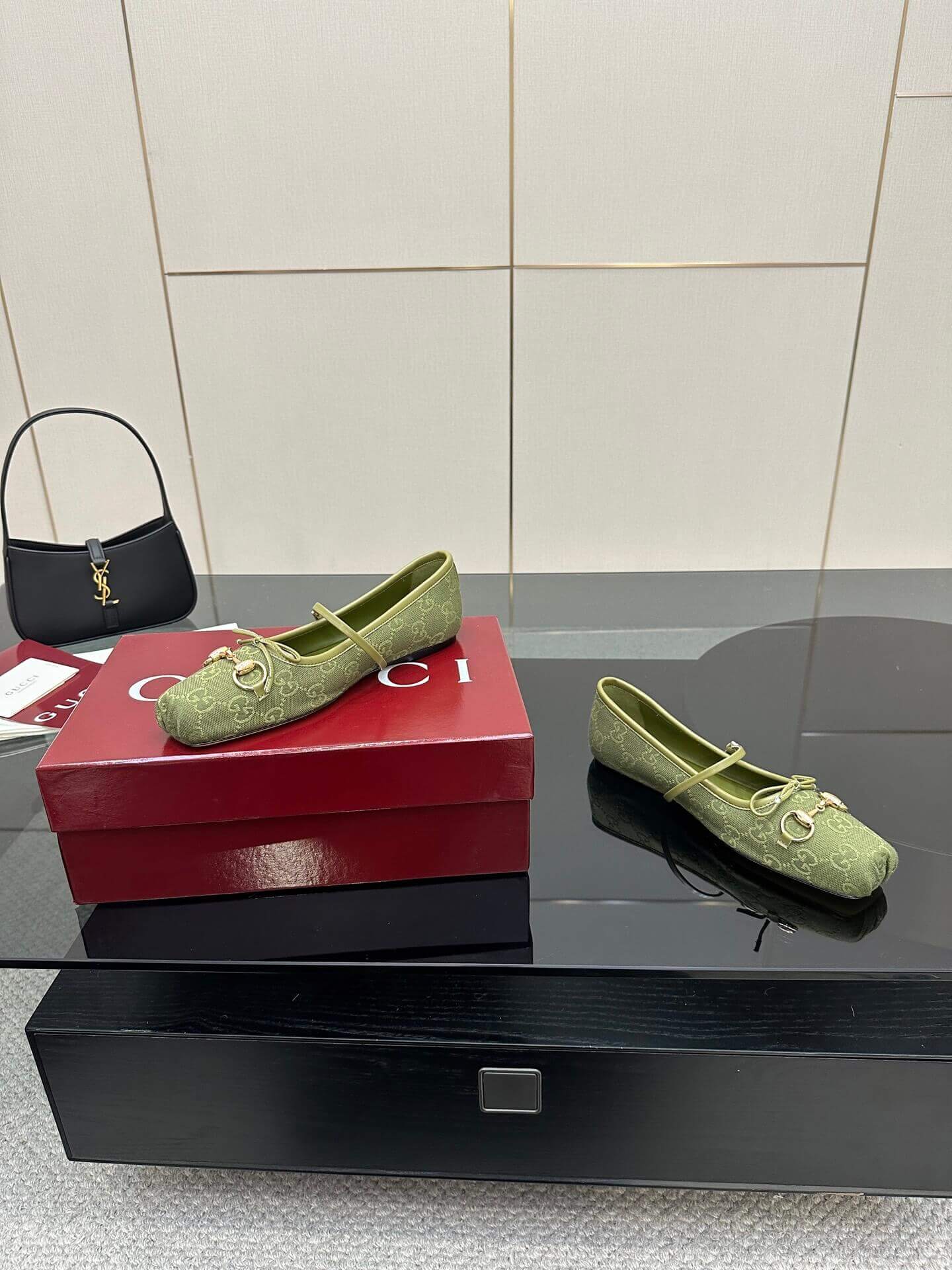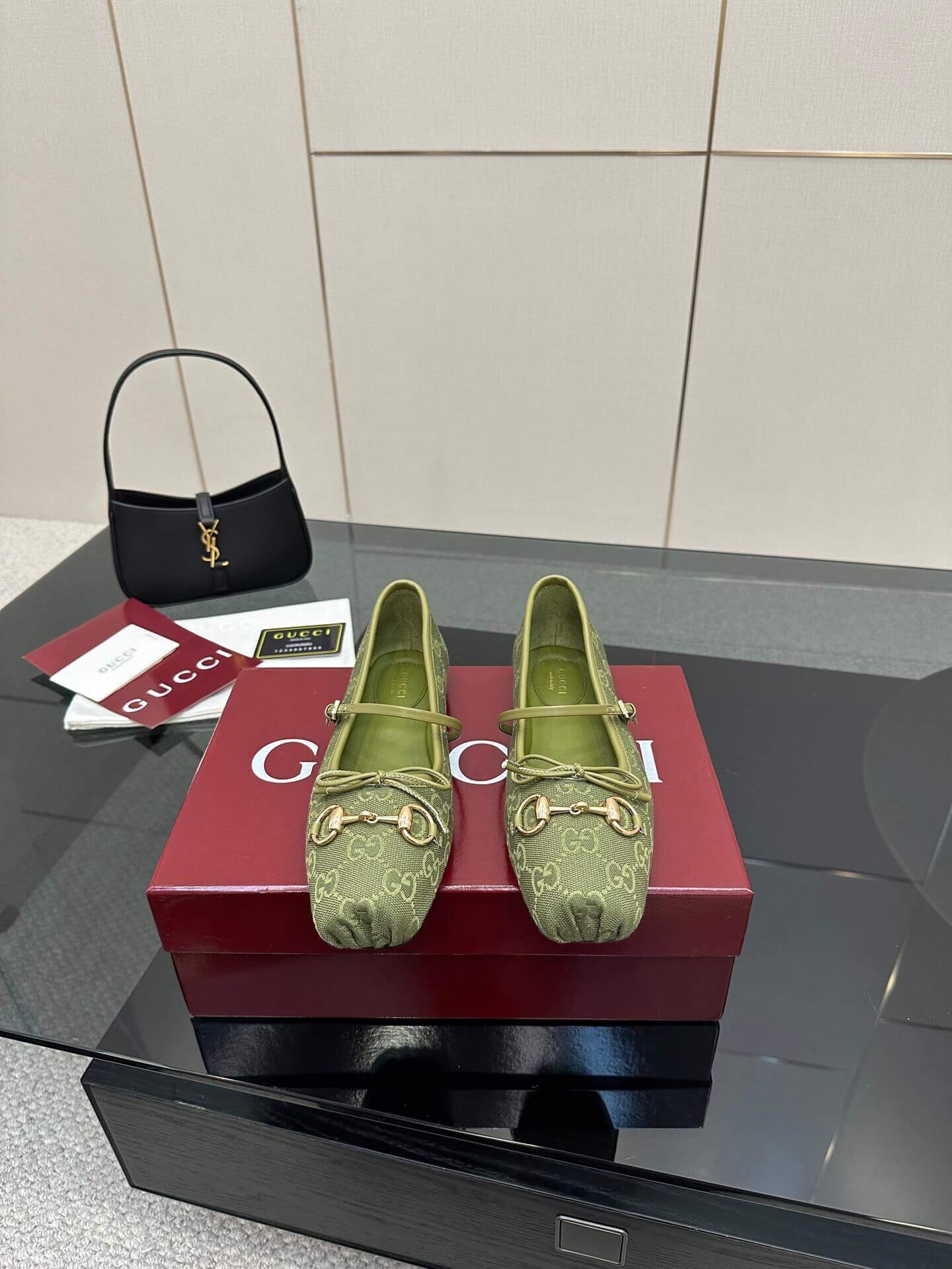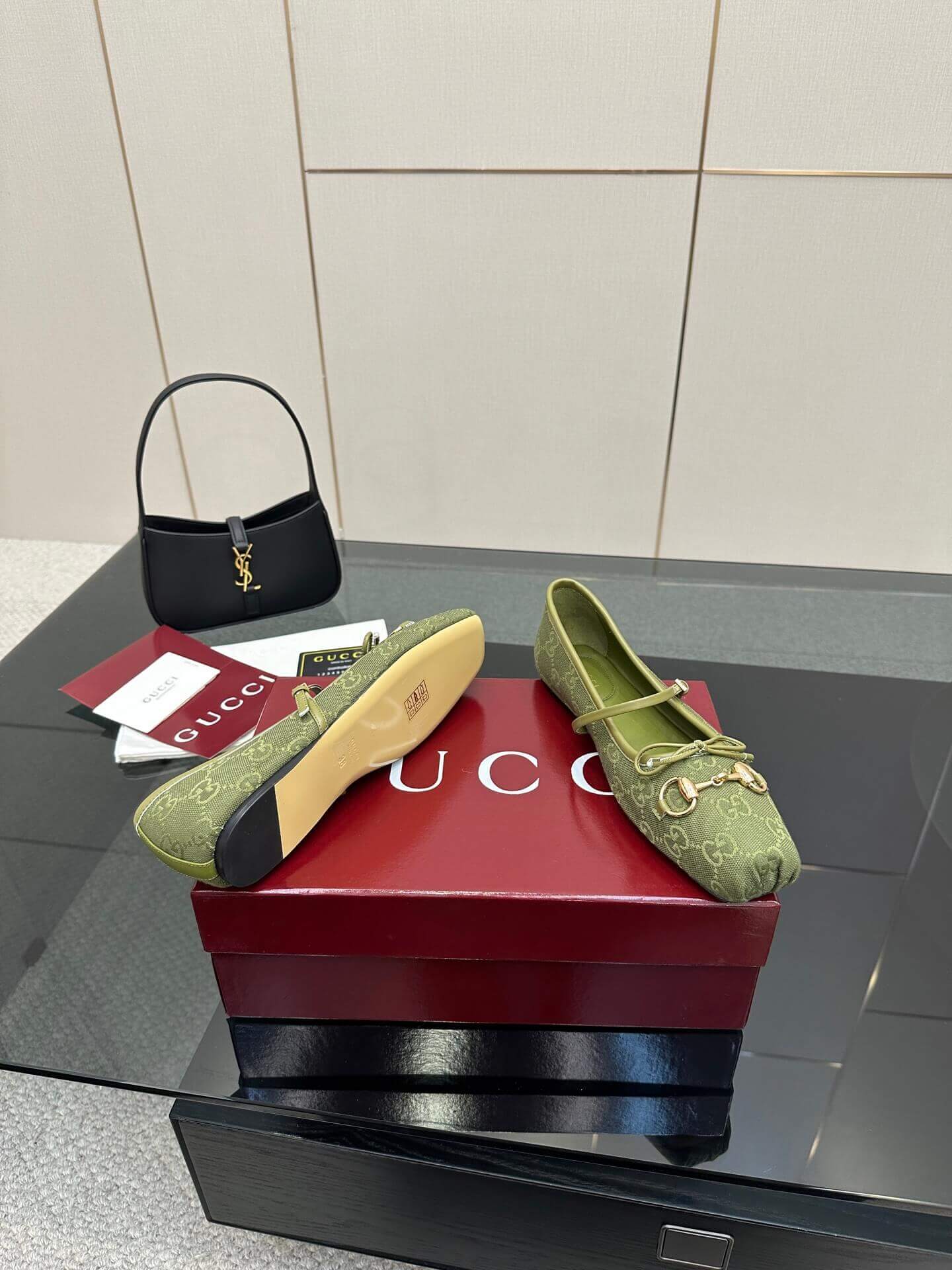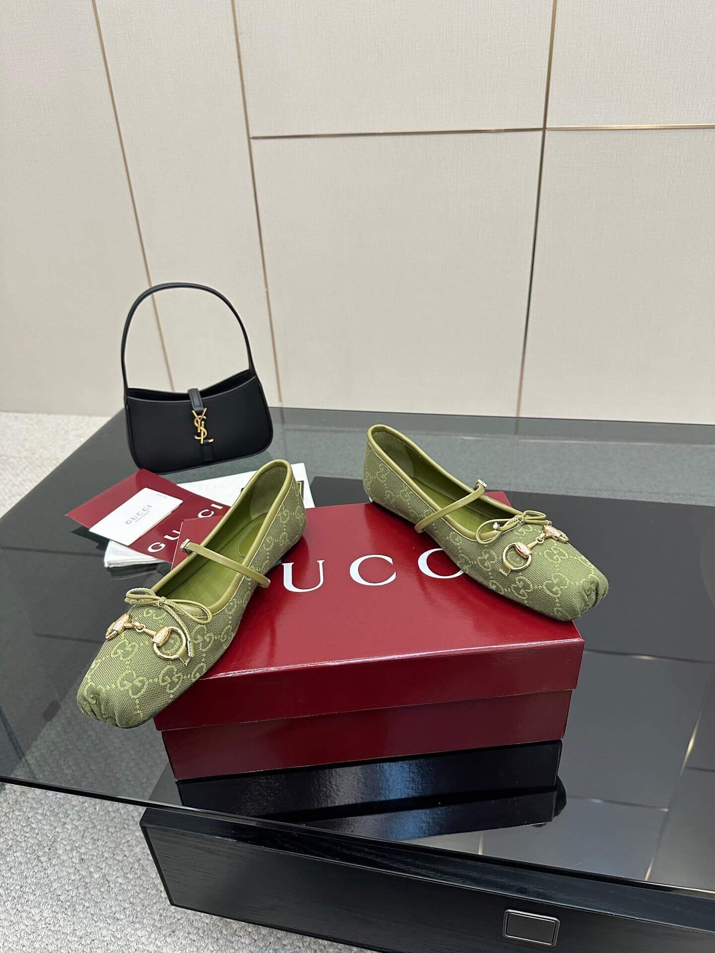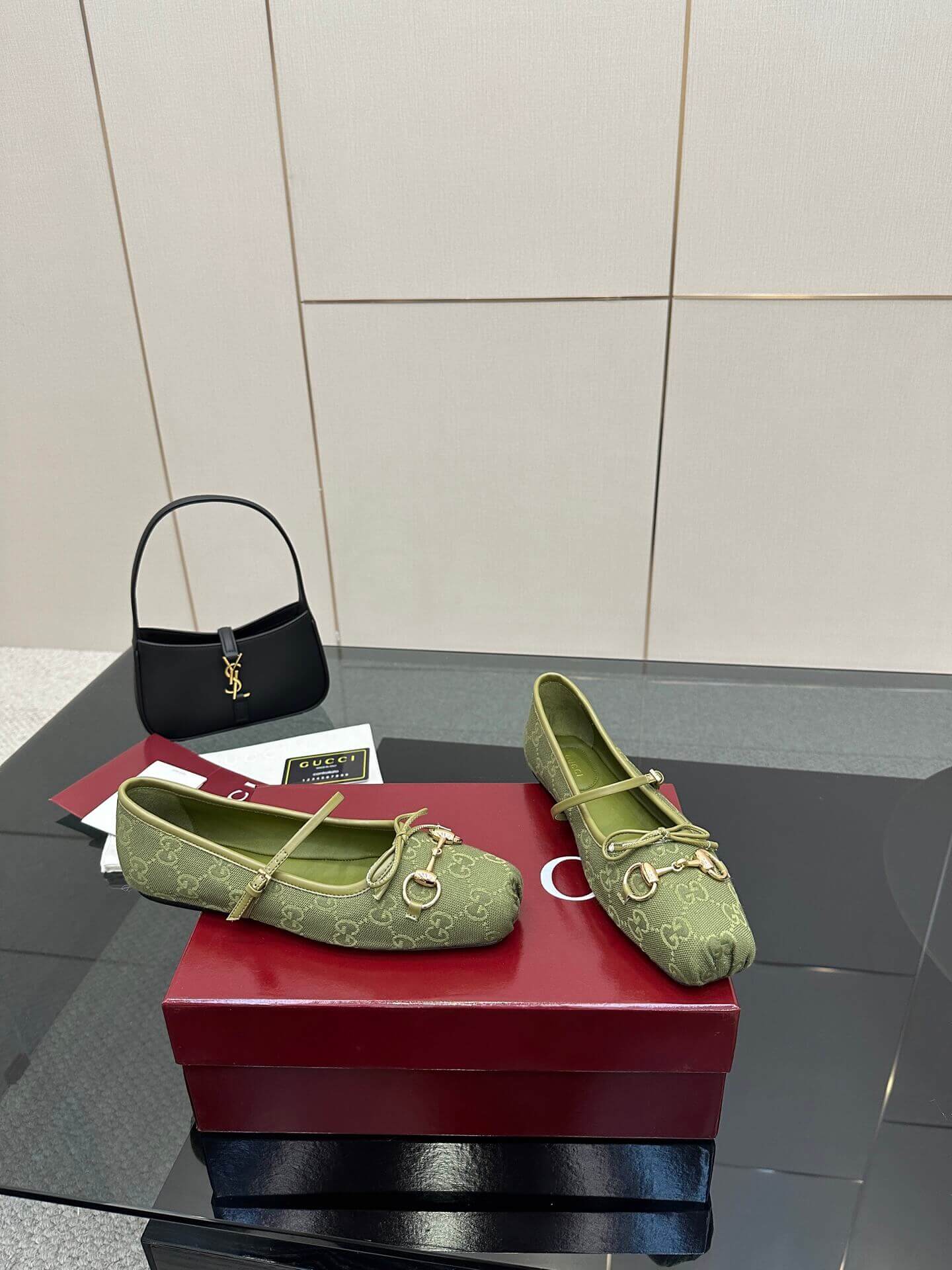 Q1: How should I care for the GG Canvas material of these ballet flats? A1: To clean the GG Canvas, gently wipe with a soft, dry cloth or a brush designed for canvas. Avoid harsh chemicals or excessive water. For more stubborn marks, a specialist cleaning product for coated canvas may be used, testing on an inconspicuous area first.