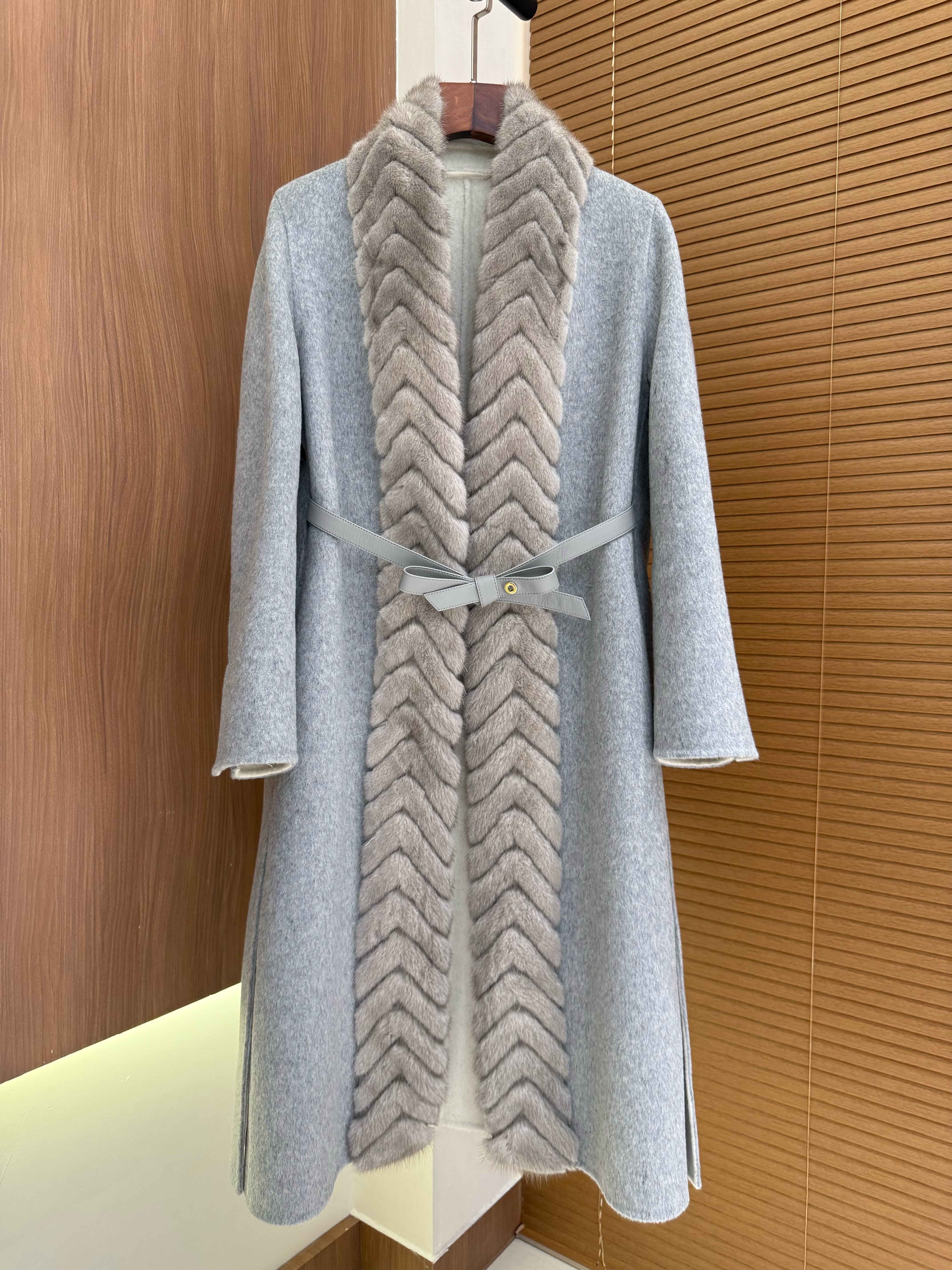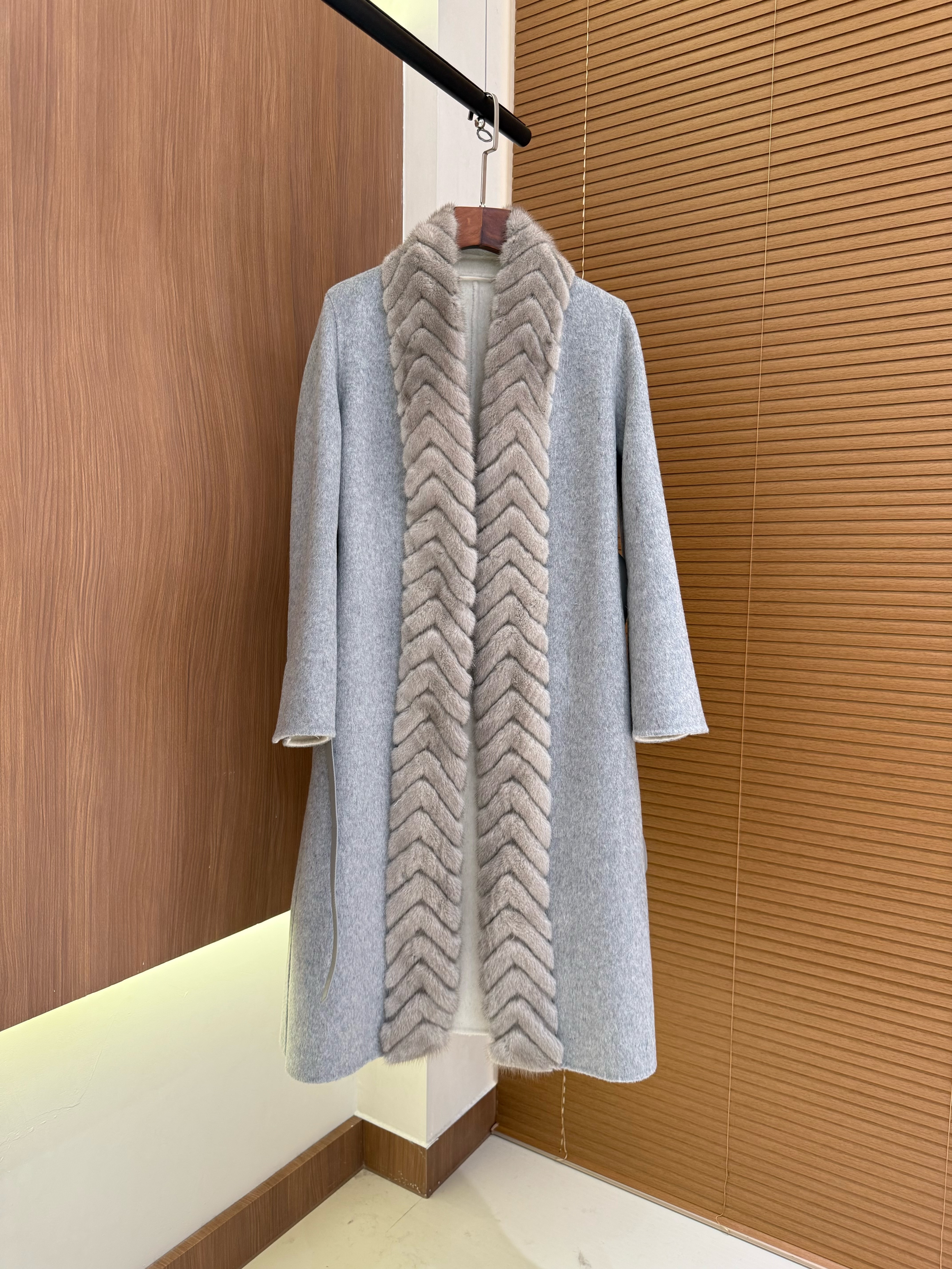 Crafted for women who value luxury in its most understated form, the Cashmere Long Fur Trim Coat elevates everyday winter looks with ease. Whether layered over fine knitwear for city errands or paired with evening attire for a polished outing, this coat brings a serene color palette and couture-level texture to any setting. The combination of airy cashmere and sculptural fur trim ensures warmth without compromising elegance.