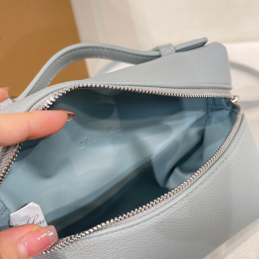This Leather Vanity Bag is crafted from imported high-quality grained cowhide, offering a smooth yet durable texture with a refined finish. The light blue color adds a fresh, modern touch while remaining versatile and understated.