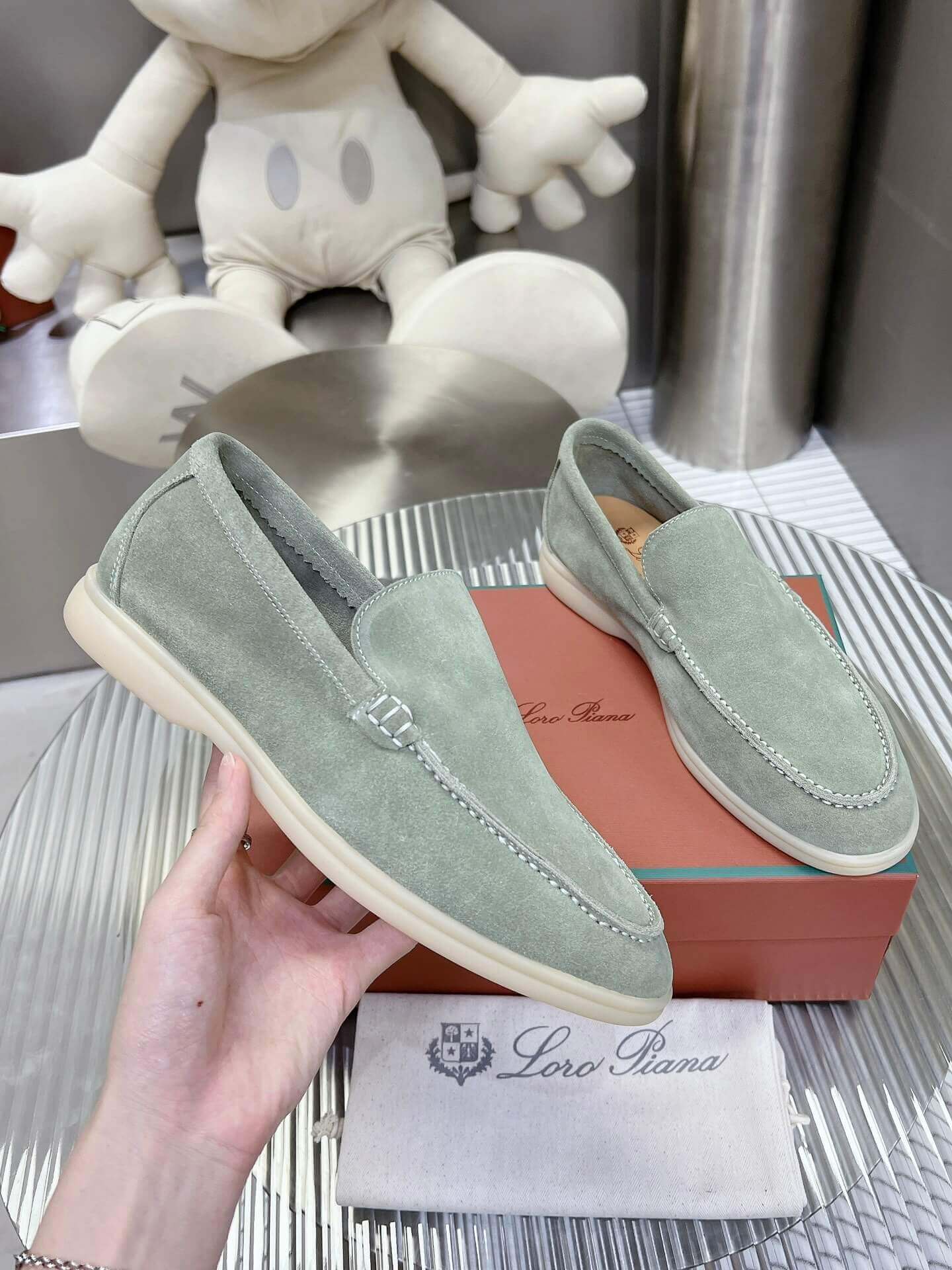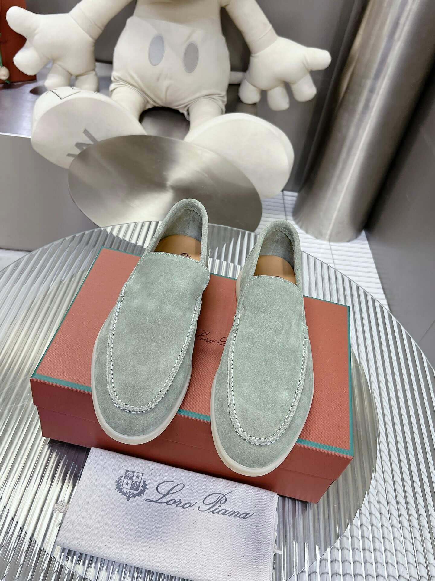 Step into effortless charm and supreme comfort with the Loro Piana Men’s/Unisex Summer Walk Loafers in Mint Green Suede. These iconic loafers are meticulously crafted from sumptuously soft mint green suede, offering a refreshing and unique pastel hue that adds a touch of serene sophistication to any ensemble. Designed with the timeless moccasin construction, they feature precise hand-stitching around the toe, showcasing Loro Piana’s renowned dedication to exquisite artisanal quality. The lightweight and flexible design is perfectly complemented by a contrasting white rubber sole, providing superior comfort, excellent grip, and a subtle contemporary accent. Ideal for warm weather, resort wear, smart-casual occasions, or adding a distinctive luxurious touch to your everyday wardrobe, these Summer Walk loafers are a testament to Loro Piana’s commitment to unparalleled comfort and timeless style.