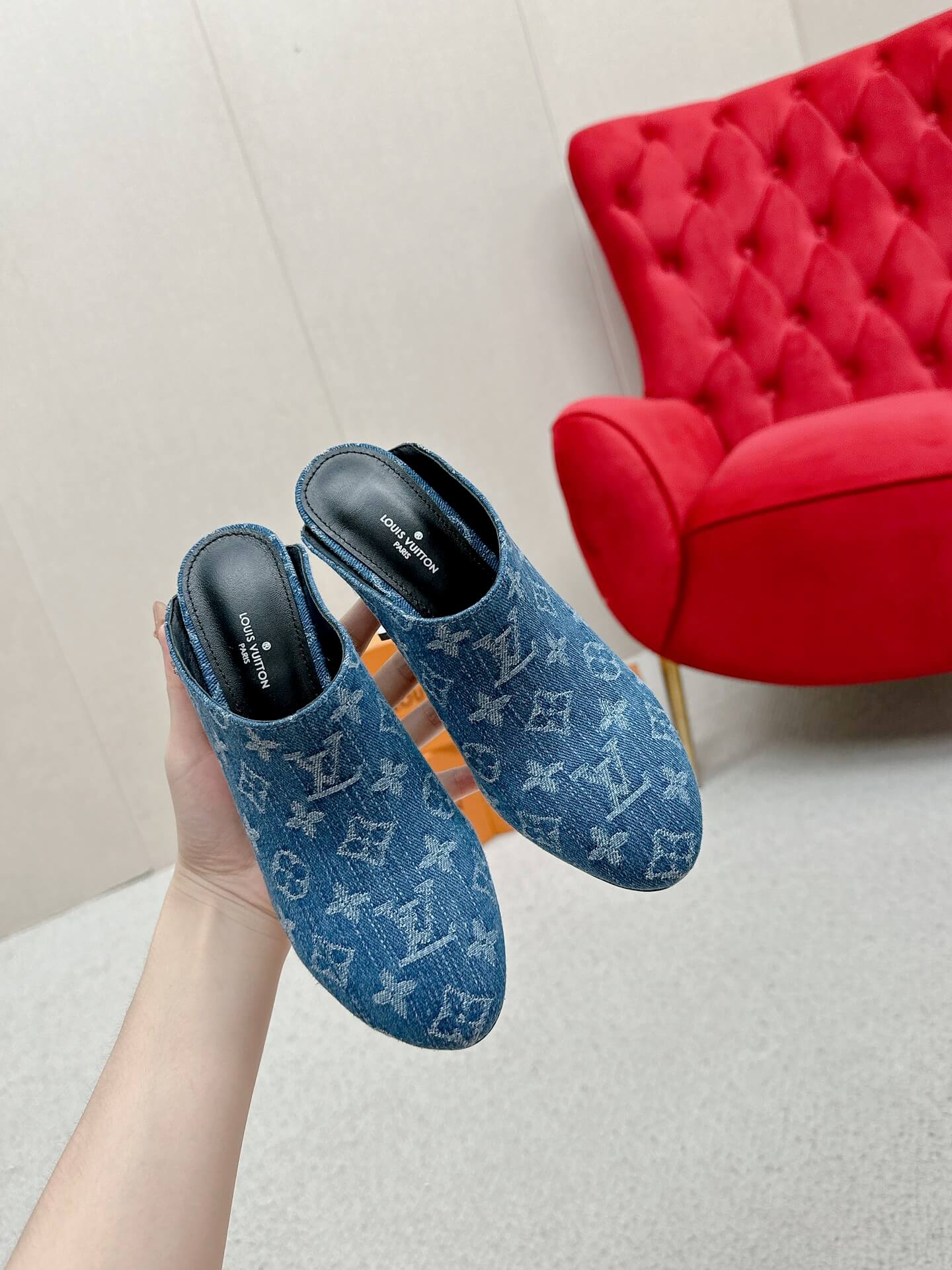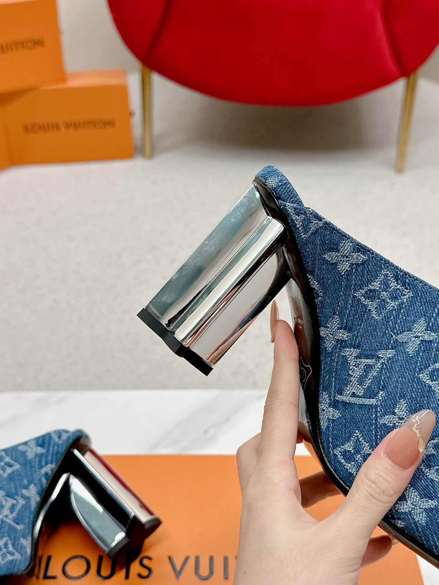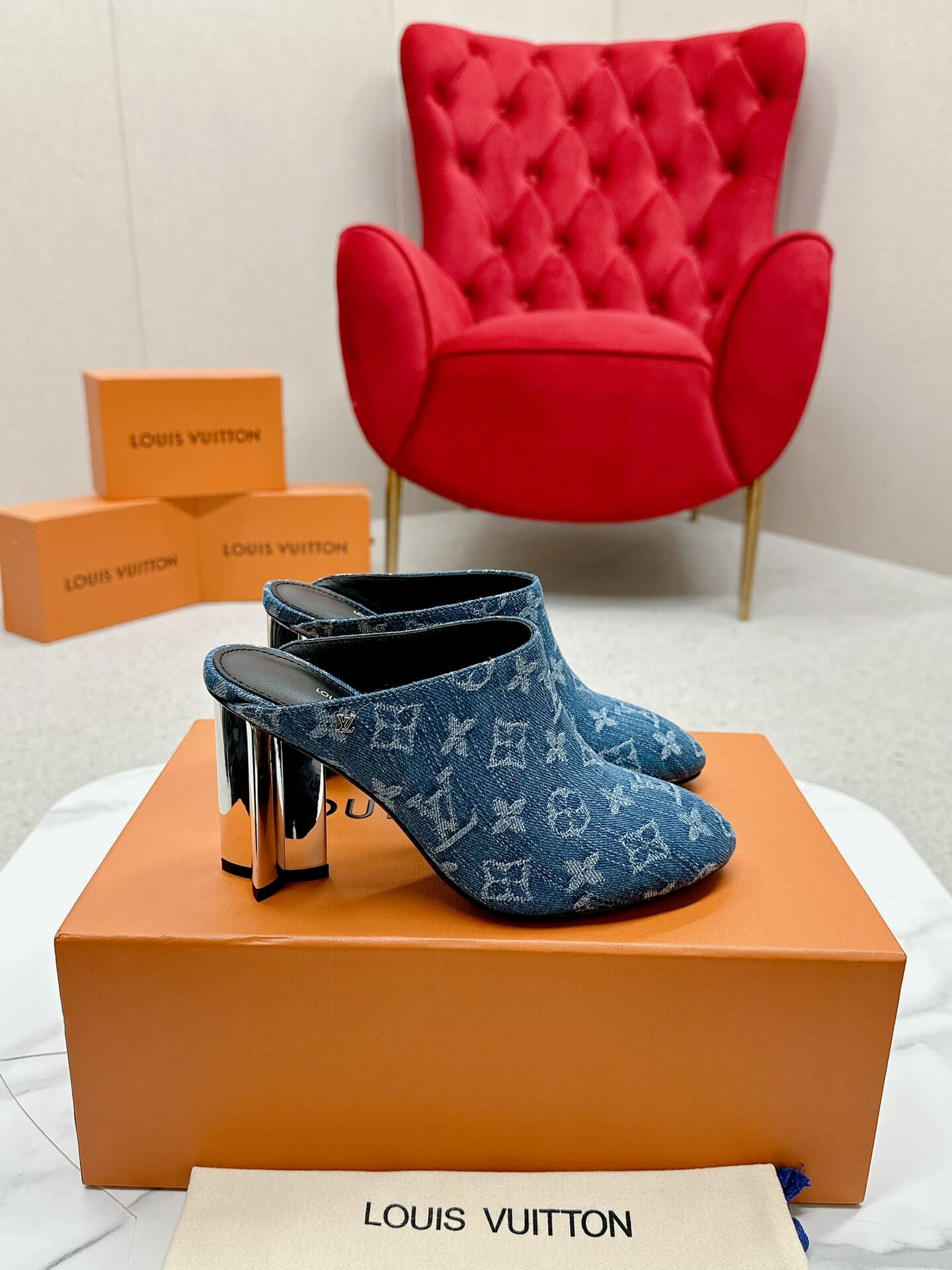 Step into the spotlight with these head-turning Archlight Mules in Denim Monogram! Inspired by Louis Vuitton’s iconic design, these statement shoes fuse high fashion with a sporty edge. The signature chunky sole and sleek metallic heel create a striking silhouette, while the monogram canvas adds a touch of classic luxury.
