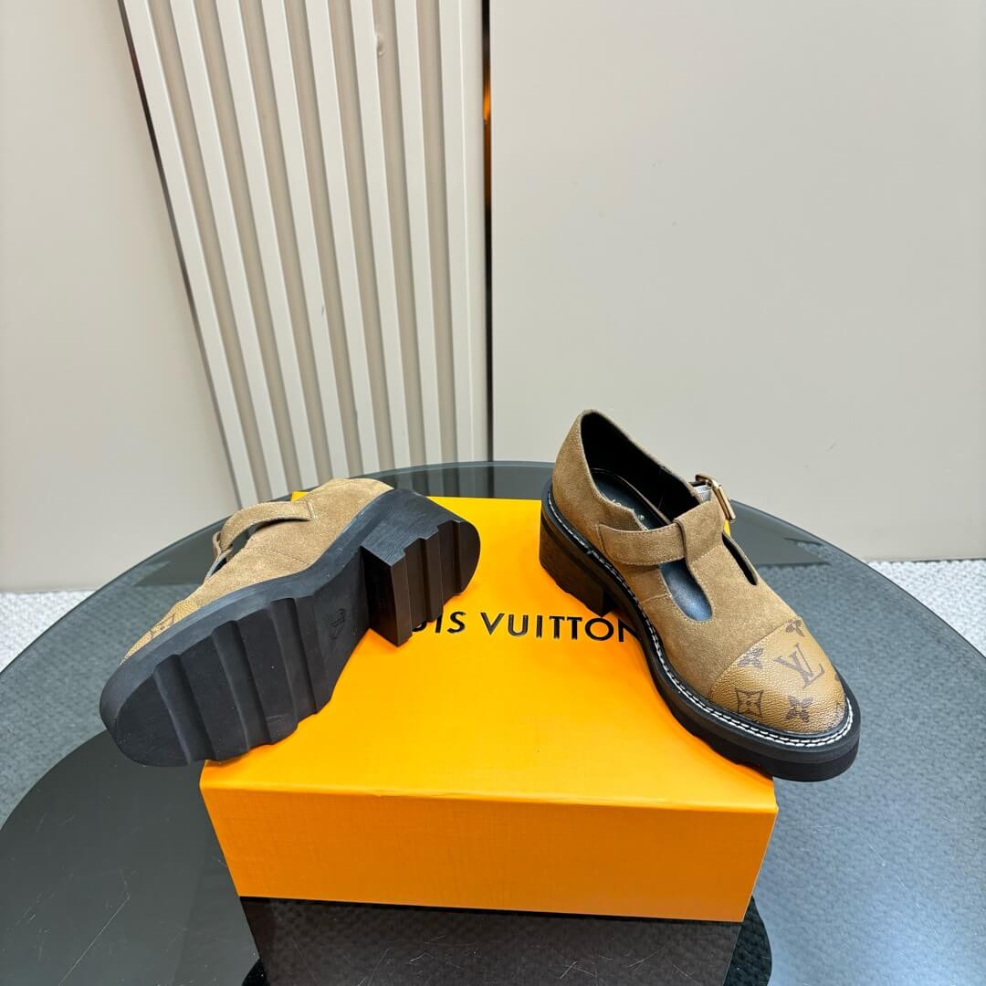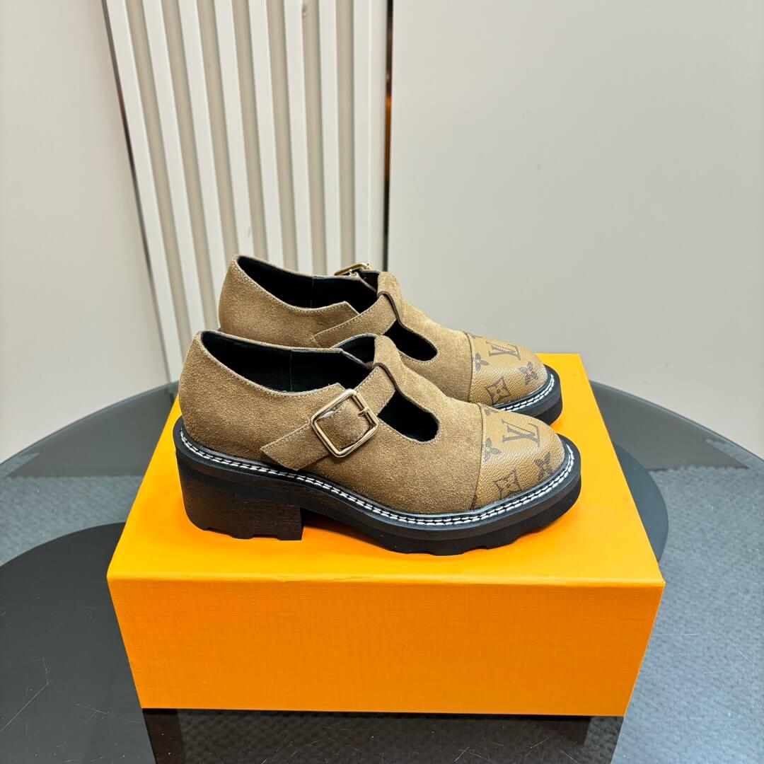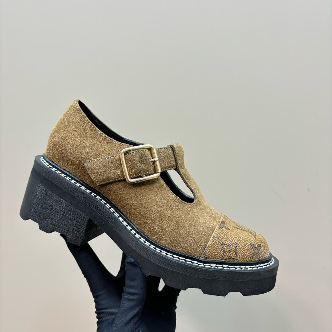 Channel bold sophistication with these Louis Vuitton Beaubourg Platform Derby Shoes in rich brown suede. Designed to make a statement, these shoes blend a chunky platform sole with the signature monogram canvas toe cap, creating an effortlessly stylish fusion of luxury and edge. The adjustable buckle strap adds a refined touch, while the durable, high-traction sole ensures all-day comfort. Whether paired with tailored pieces or casual ensembles, these shoes bring a distinctive flair to any look.