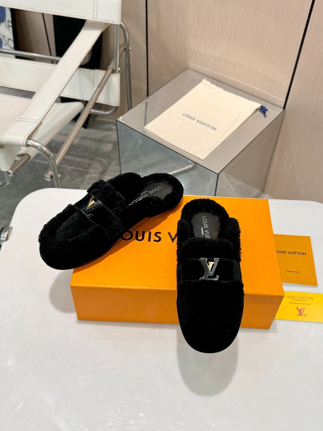 Perfect for transitional seasons and relaxed luxury styling, these Louis Vuitton mules are the epitome of effortless chic with a touch of Parisian refinement.
