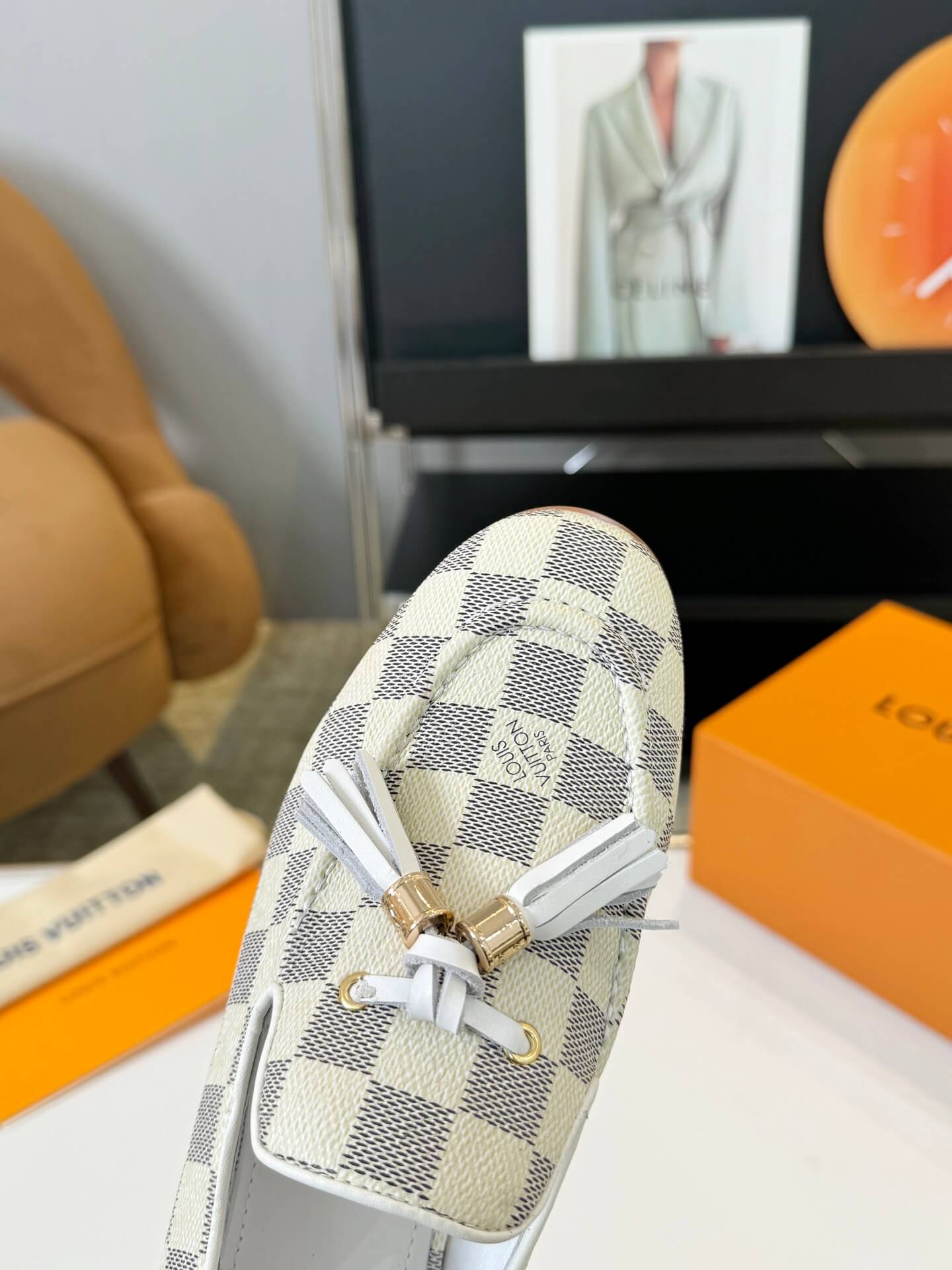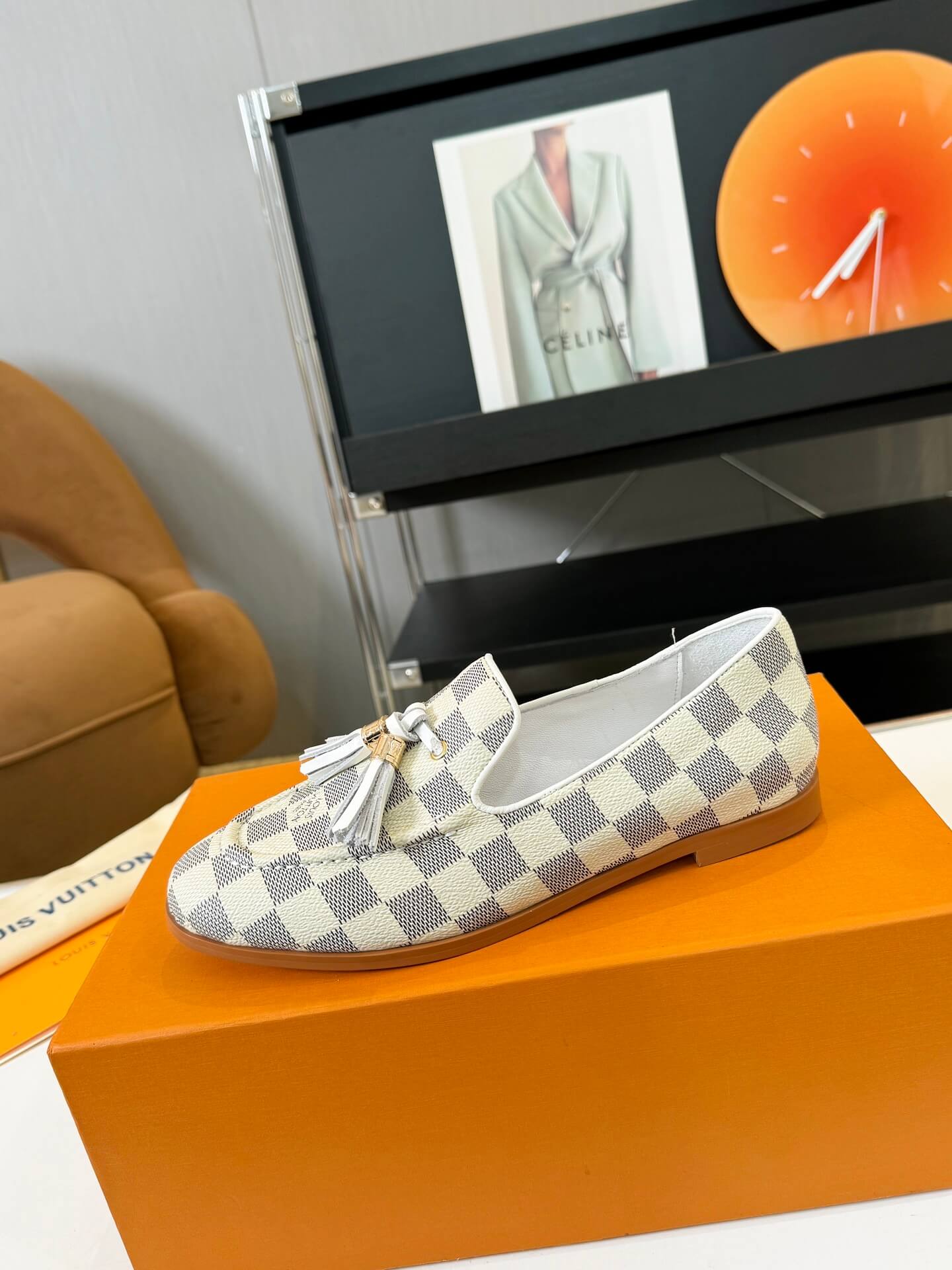 Slip into effortless sophistication with these Louis Vuitton Damier Azur Society Loafers, where timeless elegance meets modern charm. Crafted in the signature white and grey Damier Azur canvas, these loafers bring a touch of Parisian luxury to every step. The gold-tone tassel detail adds a refined flourish, while the supple leather lining ensures all-day comfort. Designed for versatility, their sleek silhouette transitions seamlessly from casual chic to polished perfection. Whether you’re strolling through the city or heading to a brunch date, these loafers promise to be your go-to for understated luxury.