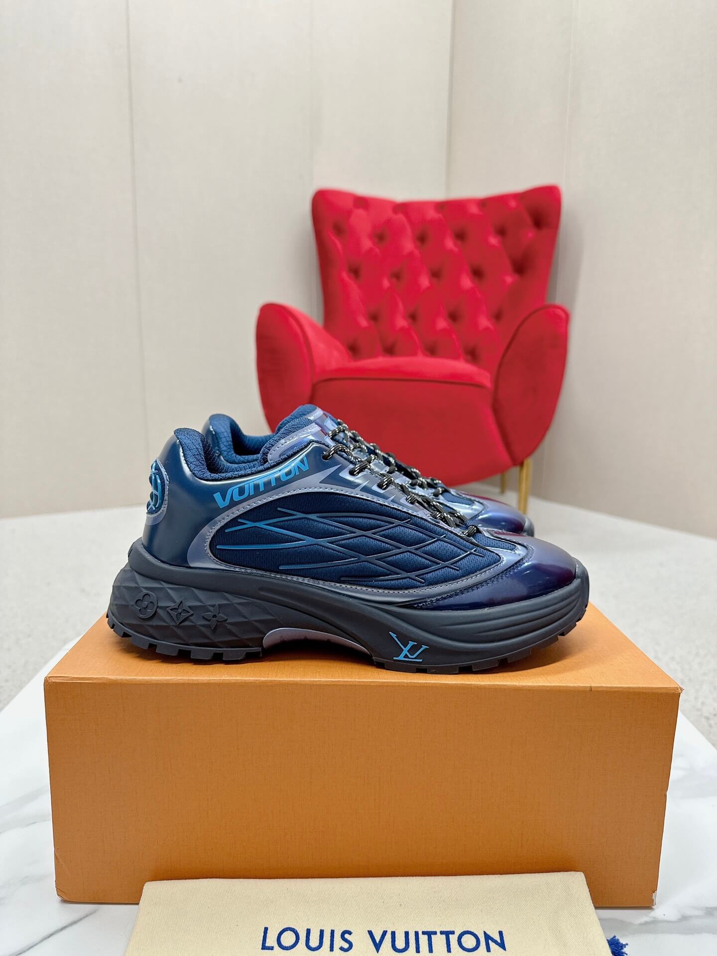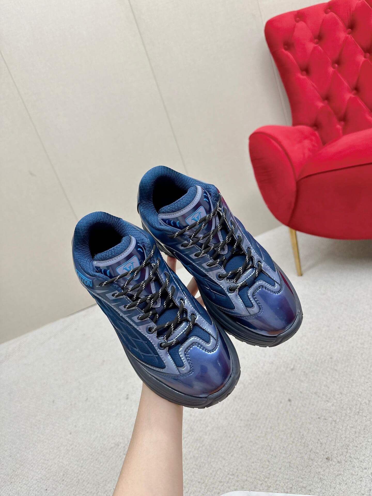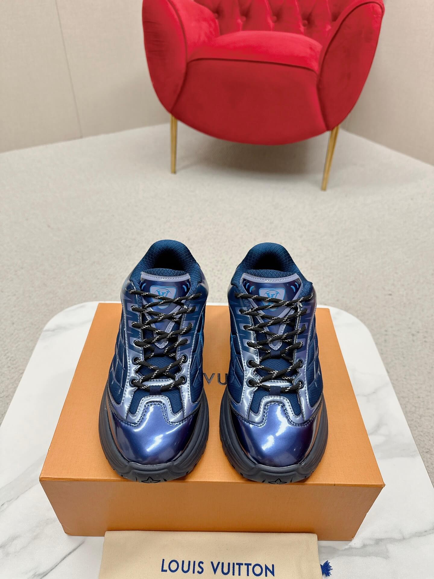 Infuse your everyday style with a touch of deep, captivating color. The Louis Vuitton Discovery Lace Up Sneaker in Blue offers a sophisticated blend of sporty design and luxurious details, perfect for those who appreciate both comfort and standout style. Experience the joy of wearing a sneaker that effortlessly elevates your casual look with its rich blue hue and intricate design. Let these sneakers be a reflection of your modern taste and active lifestyle.