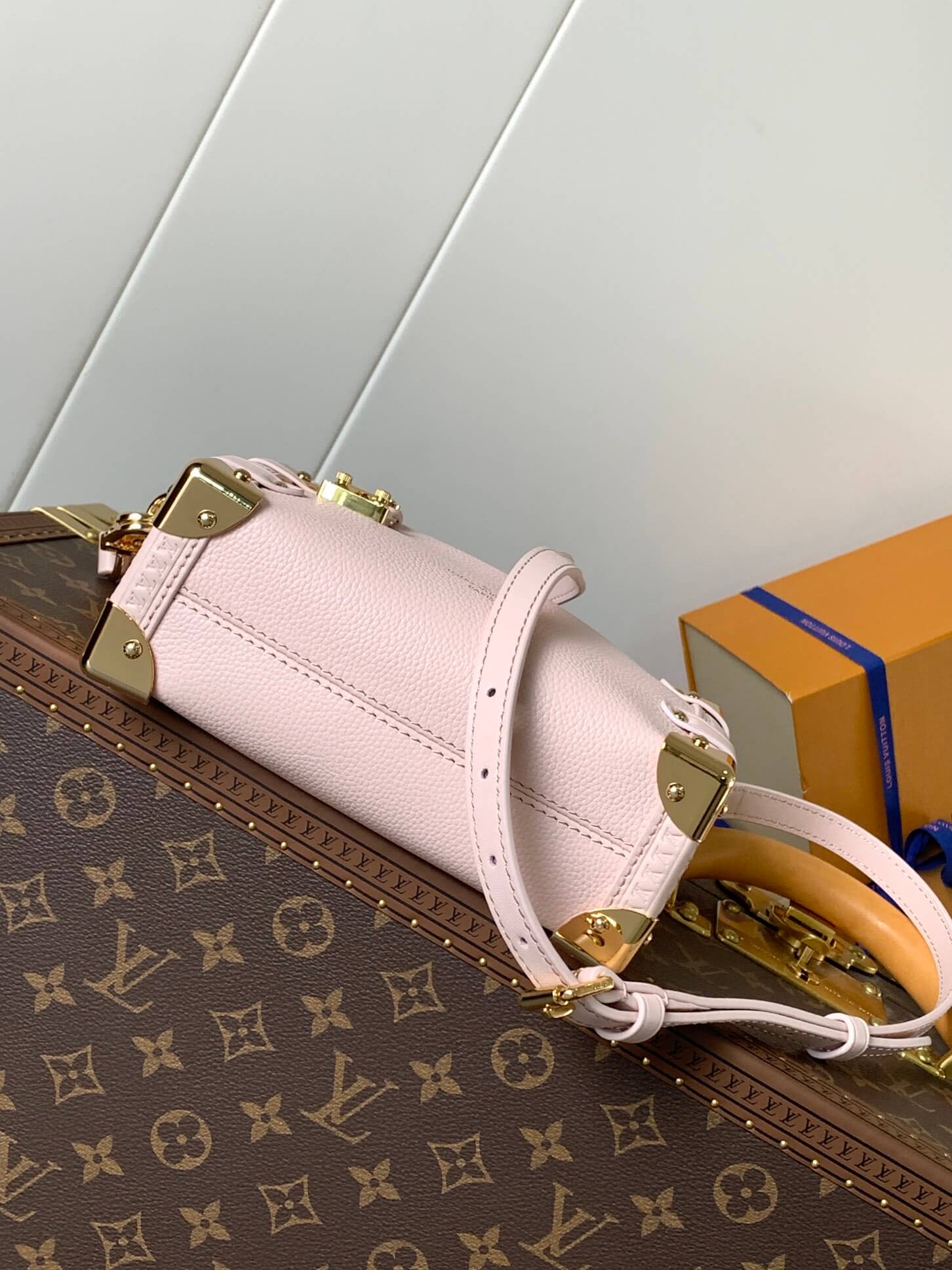 Delicate yet bold, the Louis Vuitton Side Trunk PM in Pink is the perfect blend of vintage elegance and modern sophistication. Crafted from grained calf leather with smooth cowhide-leather trim, this handbag embraces the House’s trunk-making heritage with iconic gold-tone metallic corners and an S-lock closure.
