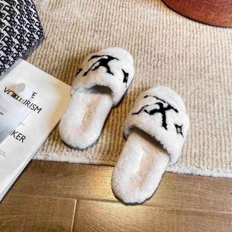Featuring a cozy white shearling upper with the iconic LV initials and Monogram motif in black. These luxurious slippers combine comfort with style, making them elegant for lounging at home. The plush shearling insole ensures warmth and softness, while the durable sole offers practicality.