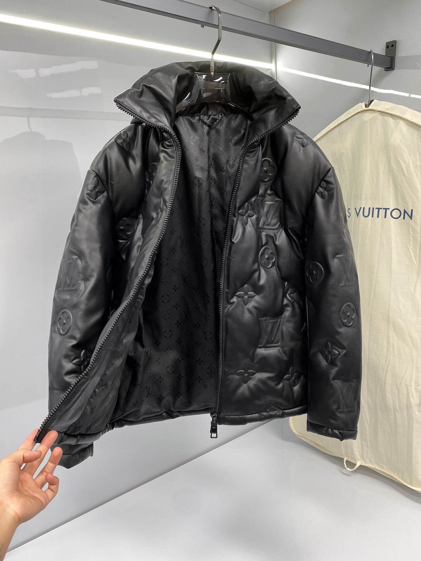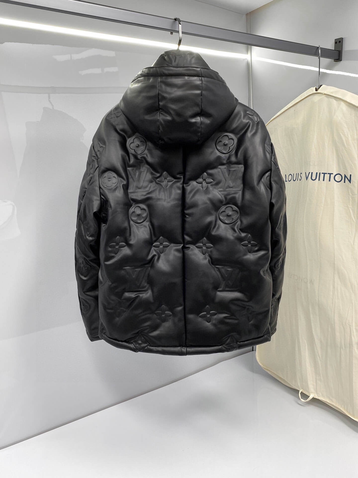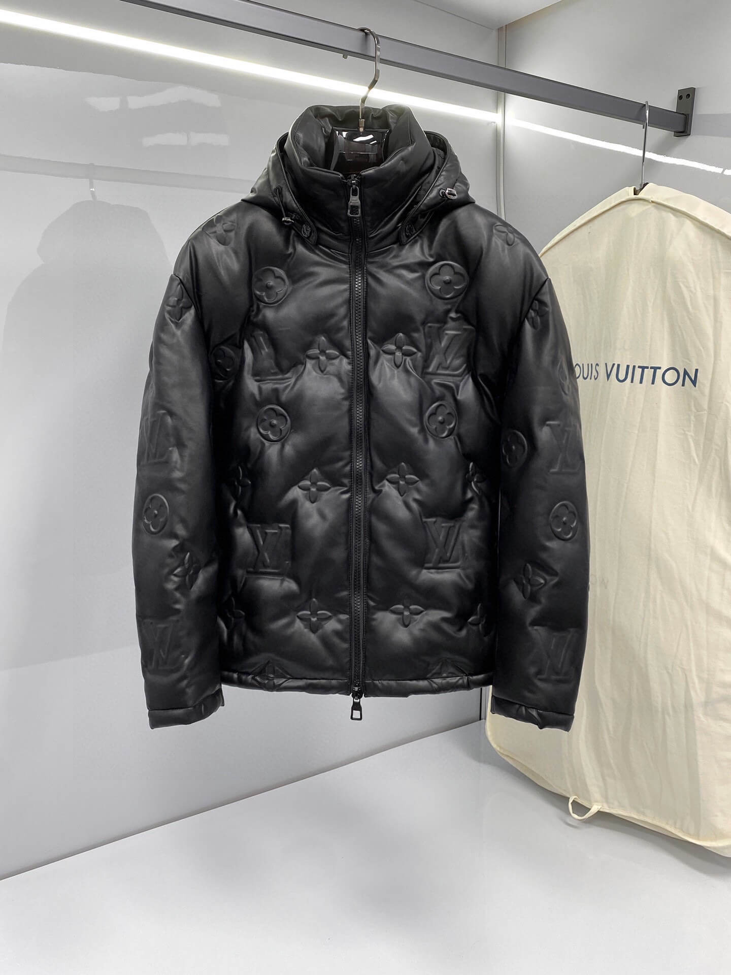Step into luxury with the Louis Vuitton Monogram Flower Down Jacket, a bold statement in sleek black leather. Featuring embossed monogram flowers across its quilted design, this jacket seamlessly merges high-end craftsmanship with contemporary style. Its puffer silhouette ensures warmth and comfort, while the high-neck hooded design adds an elevated touch of sophistication. Whether for urban outings or elevated streetwear looks, this down jacket is the perfect cold-weather essential.