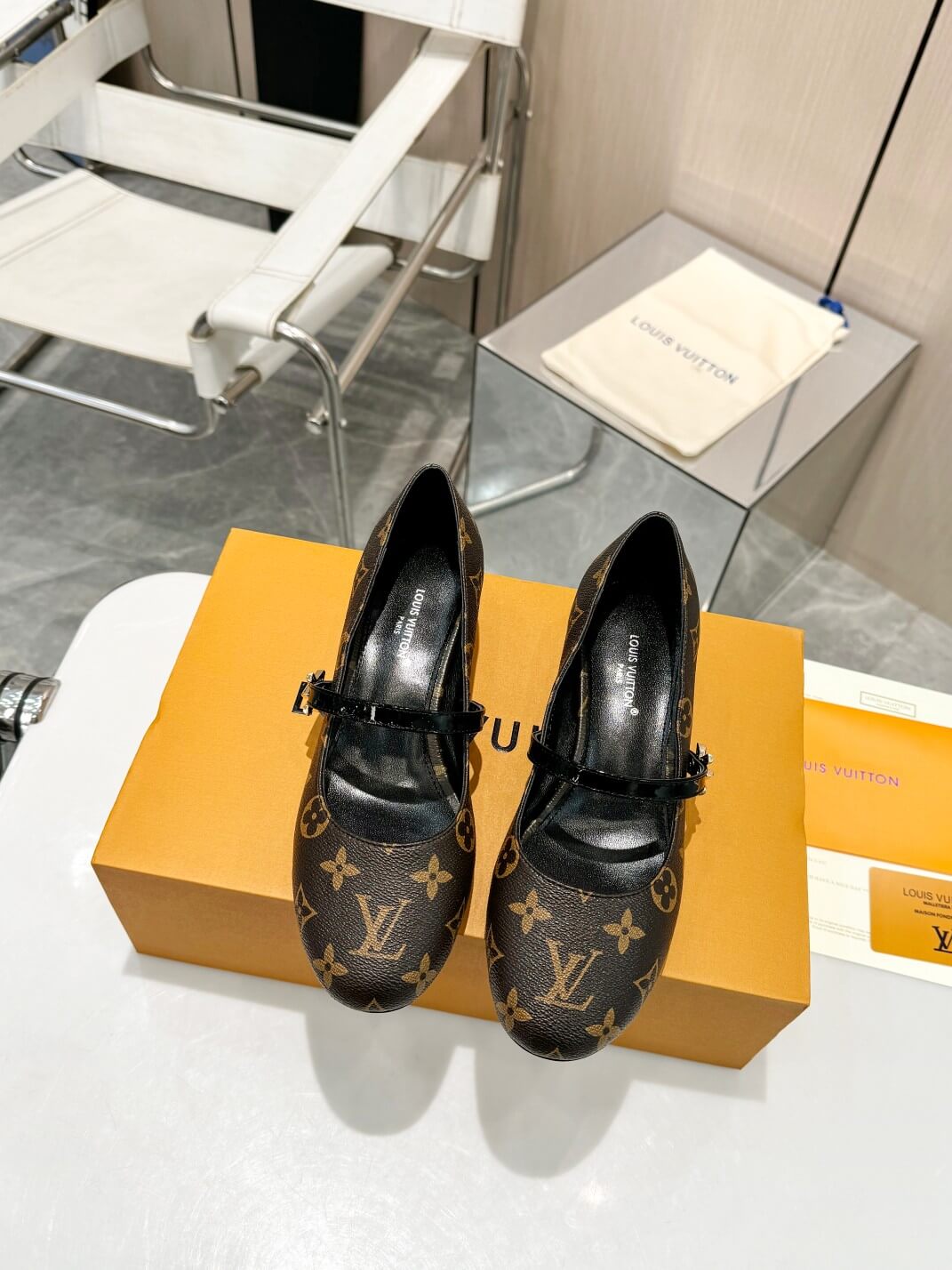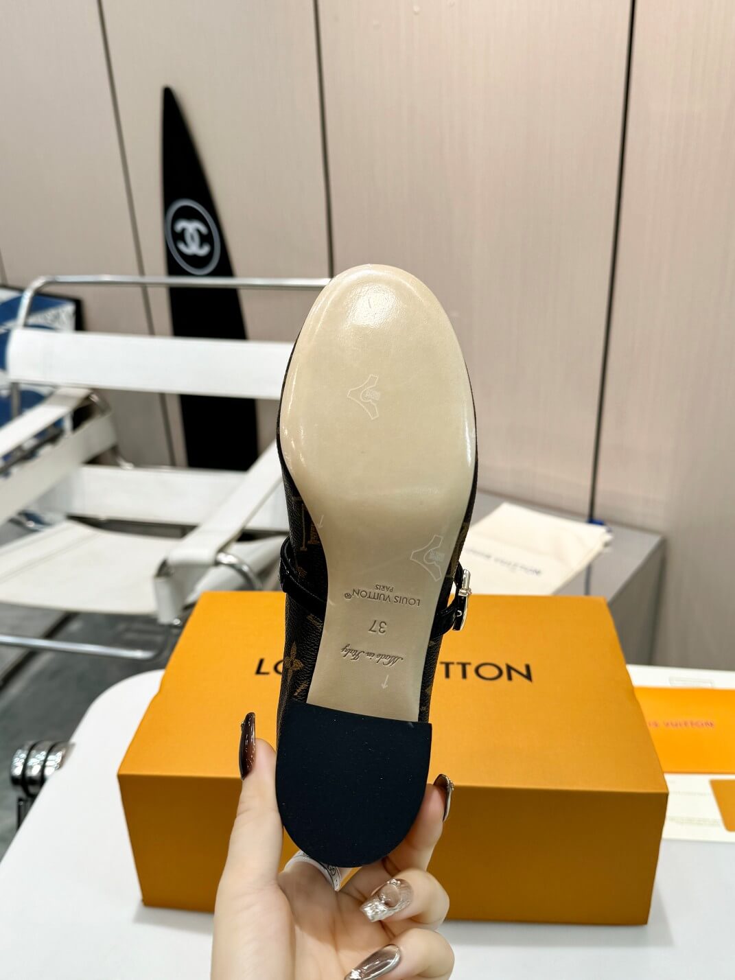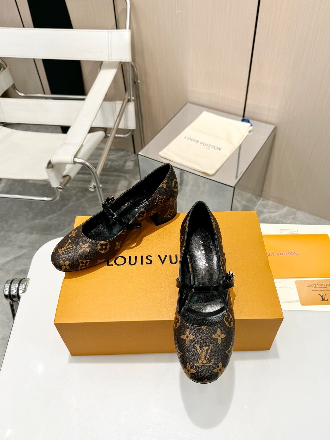 Step into timeless elegance with the Louis Vuitton Revival Pump, beautifully crafted from the brand’s signature Monogram canvas. Designed for those who appreciate subtle sophistication, these pumps feature a chic, rounded-toe design complemented by a low, comfortable block heel. The slender strap with a gold-tone LV buckle adds a refined touch, perfectly balancing luxury and practicality. Ideal for everyday elegance or special occasions, these shoes are a statement of classic style and modern charm.