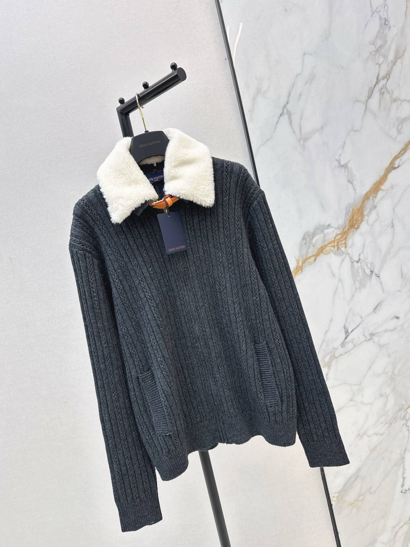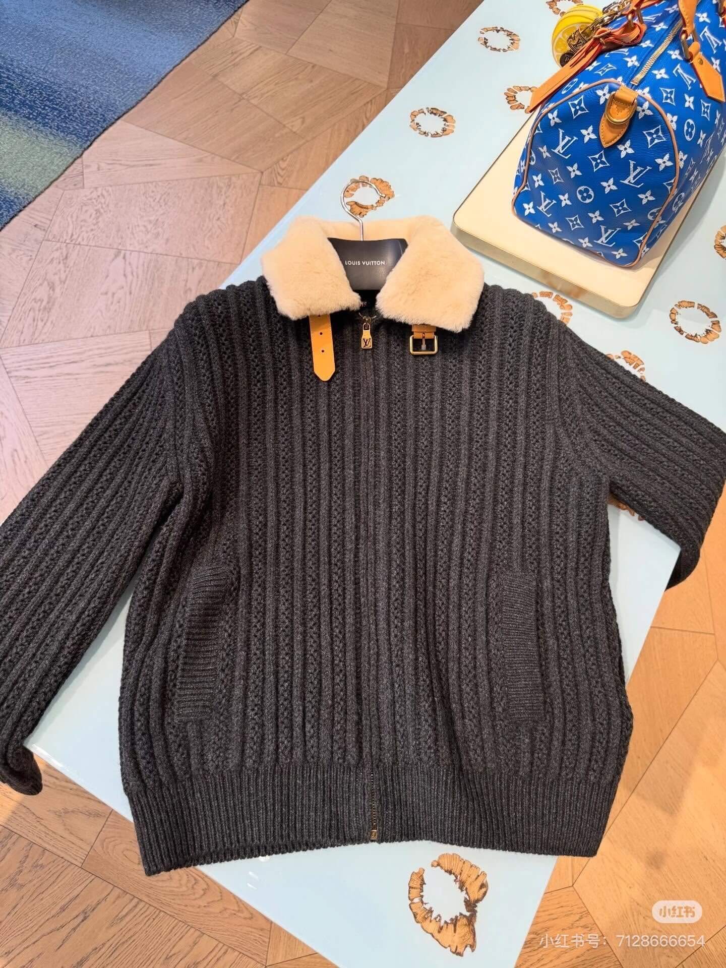 The Louis Vuitton Shearling Collar Ribbed Knit Cardigan Jacket is designed for those who appreciate warmth without sacrificing elegance. The soft shearling collar adds a statement touch, while the ribbed knit body offers comfort and flexibility. Ideal for cool days, relaxed evenings, or refined casual styling, this piece transitions seamlessly between cozy and polished looks.