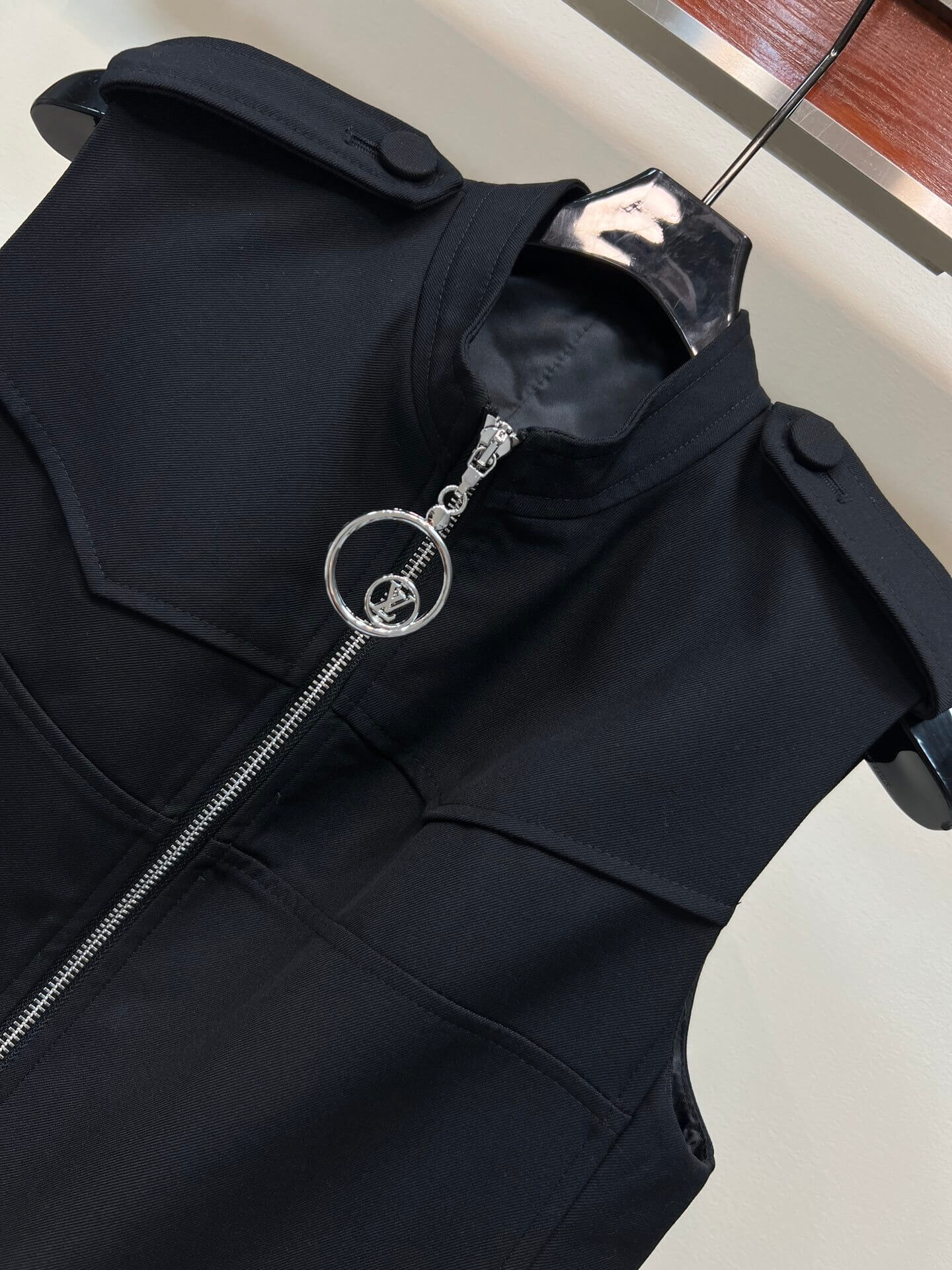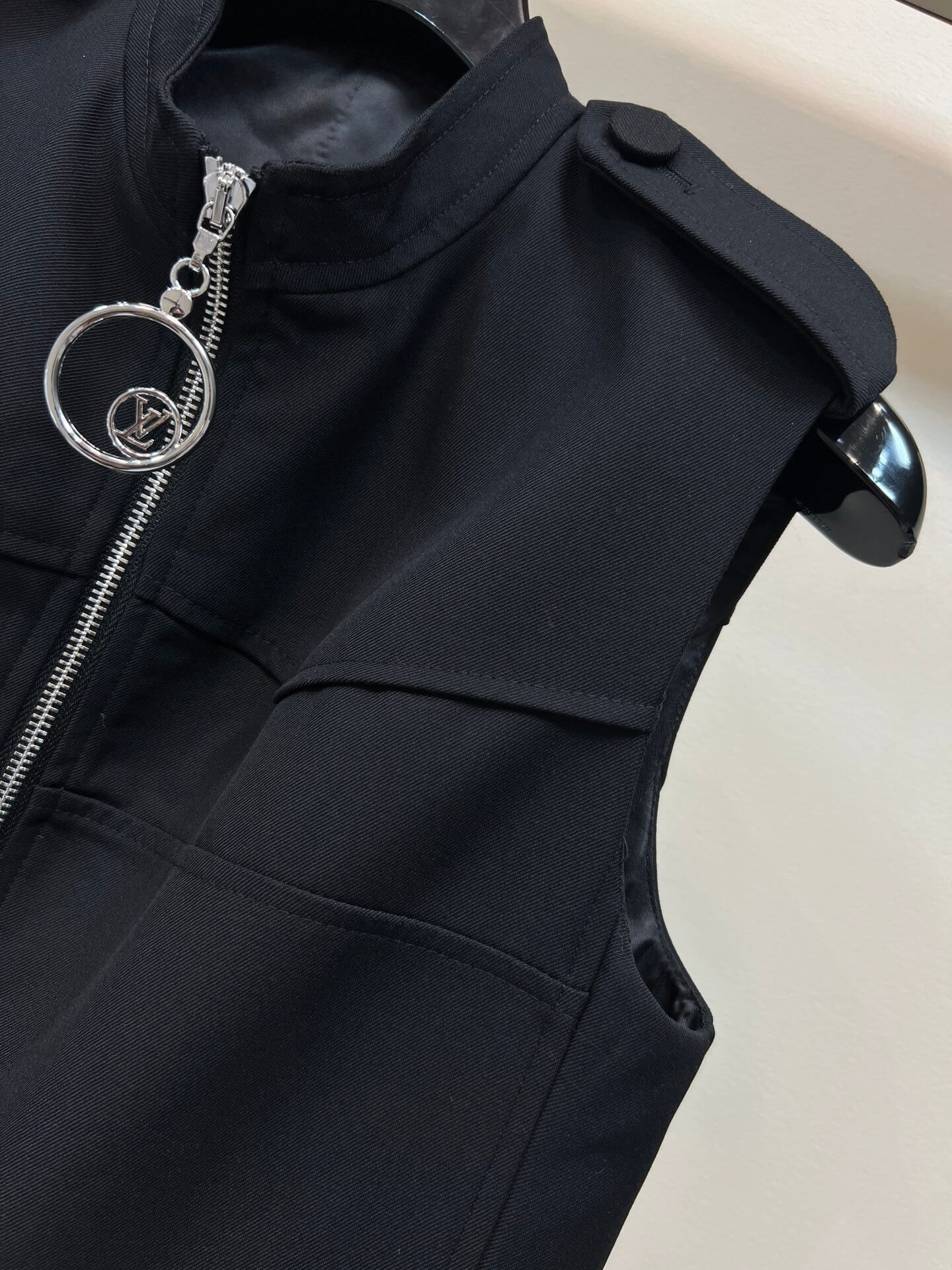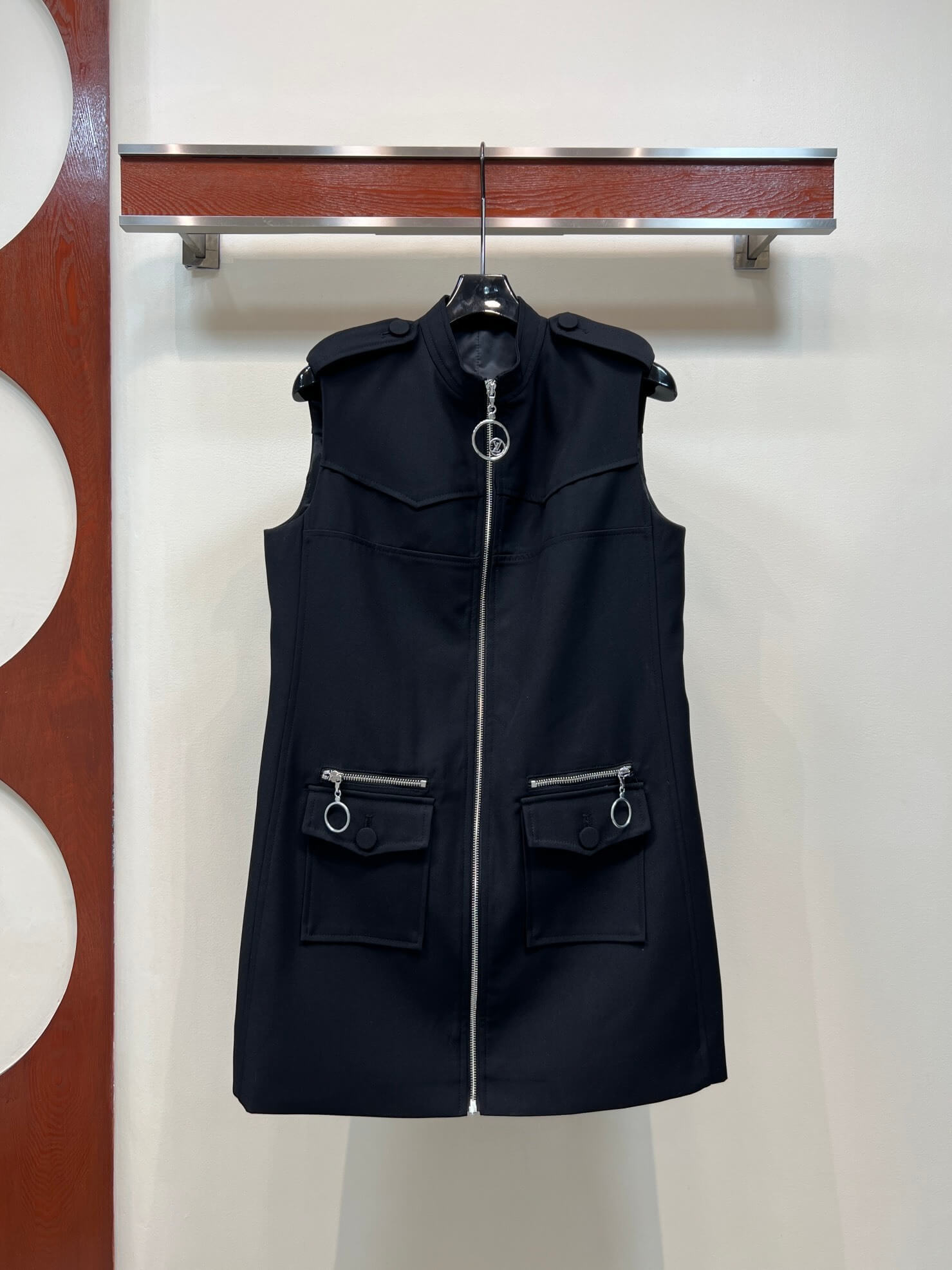 This zip-up utility dress redefines contemporary dressing through a balance of structure and minimalism. Cut in a clean, elongated silhouette, it features a full-length front zipper that lends both function and attitude. The sleeveless design highlights the shoulders, while utility-inspired details introduce a subtle industrial note. Rendered in classic black, the piece is versatile yet commanding—ideal for modern city wardrobes that value clarity, strength, and timeless appeal.