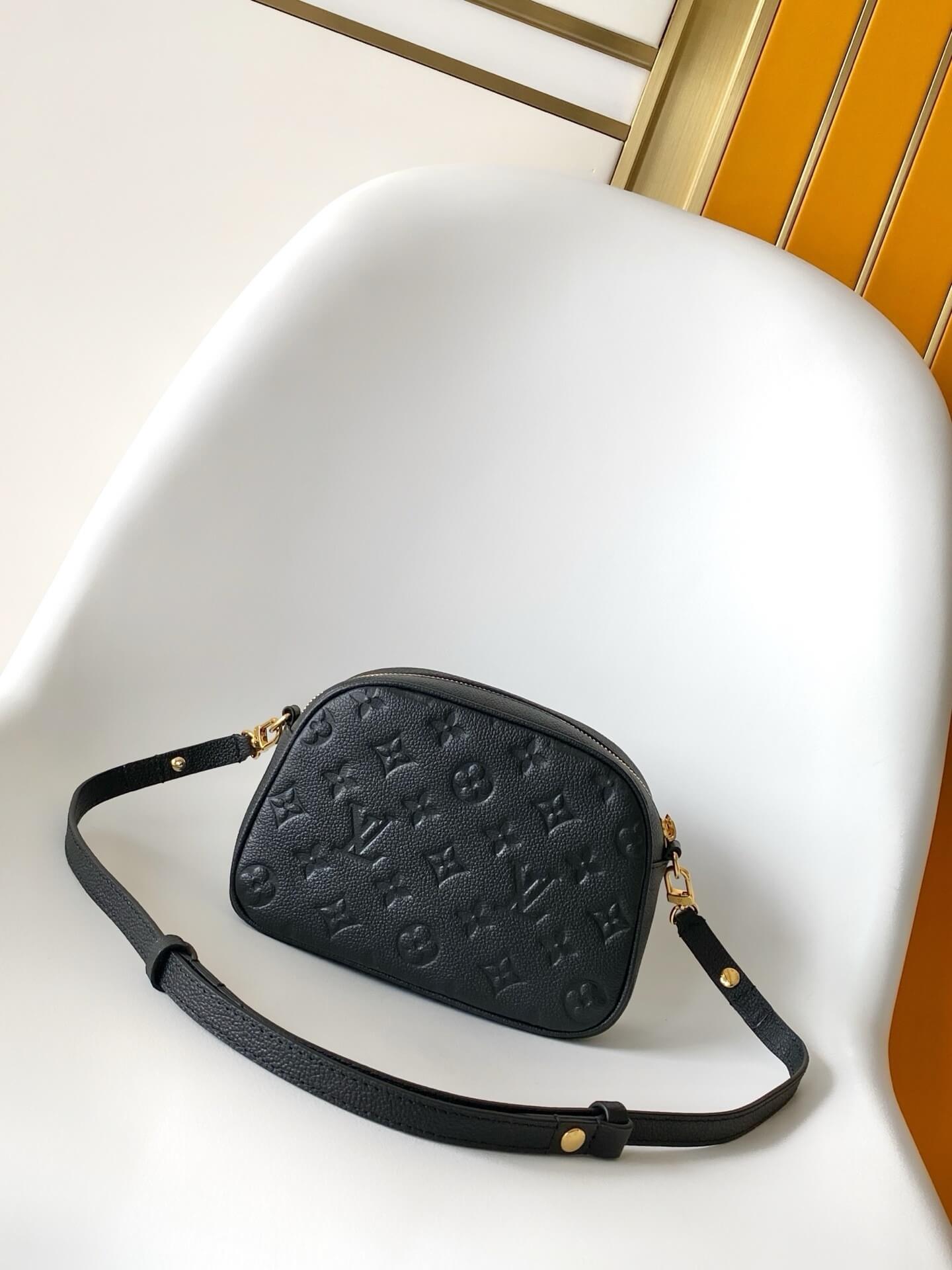 Crafted from supple Monogram Empreinte leather, the Louis Vuitton Tiny Camera Bag in Black Monogram Empreinte Leather elevates the classic camera-bag style with timeless LV heritage. The embossed monogram texture adds depth and dimension, while the structured shape ensures practicality without sacrificing elegance. Gold-tone hardware enhances its polished appeal, and the adjustable strap offers versatile styling—whether worn crossbody for casual outings or carried on the shoulder for a more refined look. True to the Holloladies ethos, this piece seamlessly merges luxury-inspired design with everyday usability, making it a wardrobe essential.