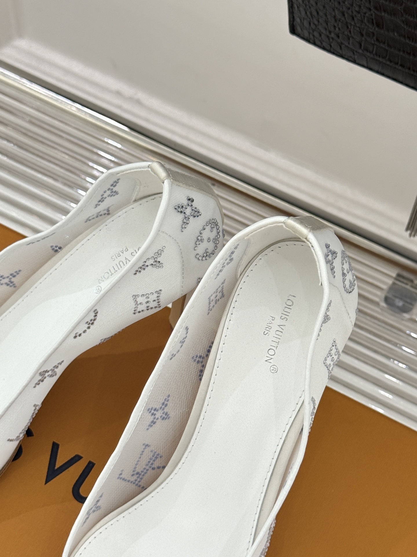The Louis Vuitton White Mesh Crystal Monogram Pumps radiate refined sophistication with a fresh, luminous finish. Designed in delicate white mesh, this elegant silhouette is adorned with sparkling rhinestones arranged in the iconic Monogram pattern, delivering timeless glamour with a modern edge.