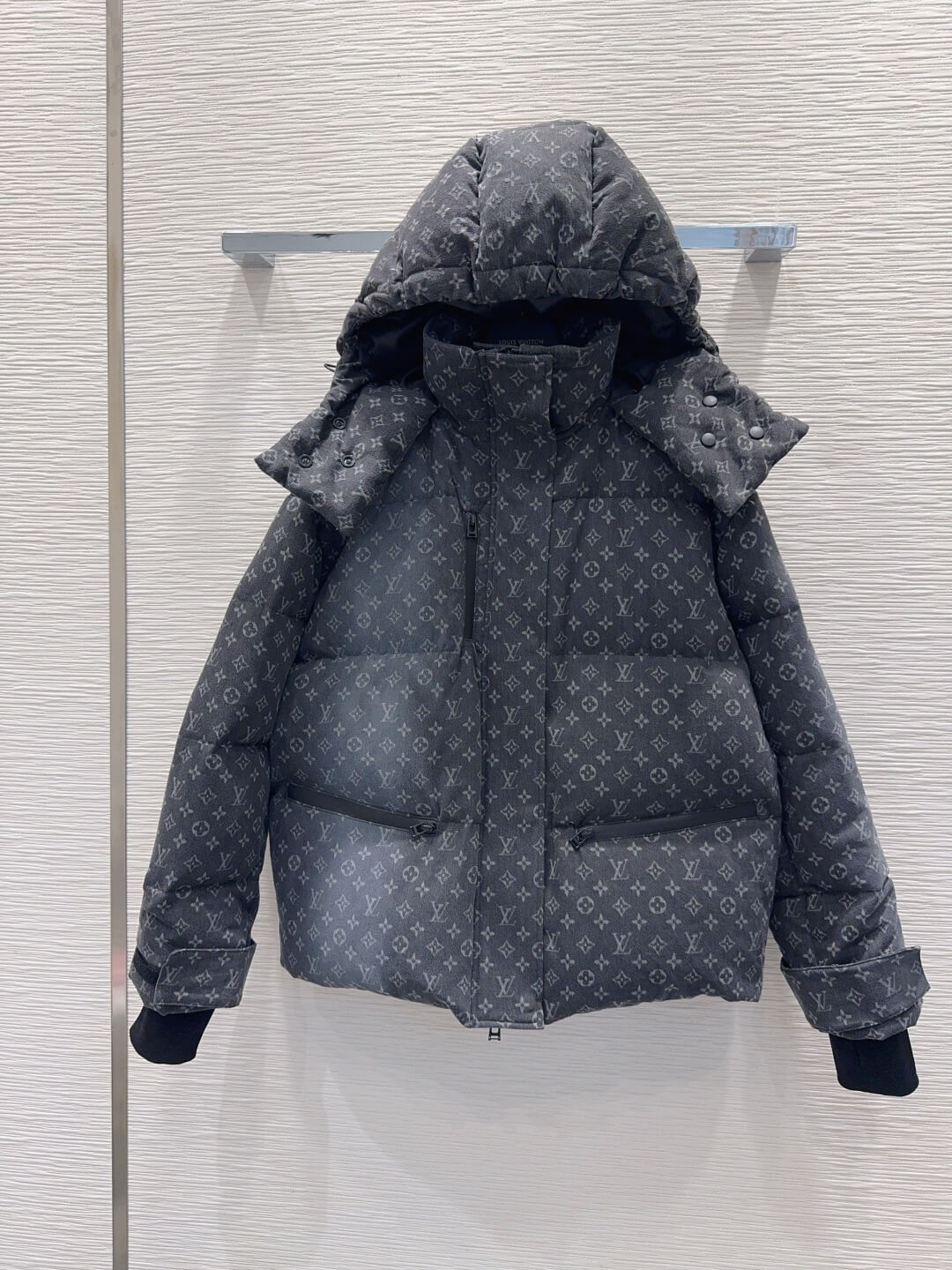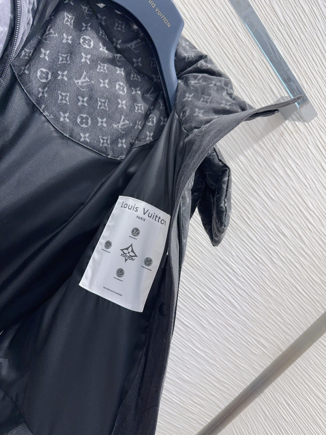 Dark Grey Denim-Effect Monogram Shell — A refined yet bold LV signature pattern that brings a modern street-lux edge to winterwear.