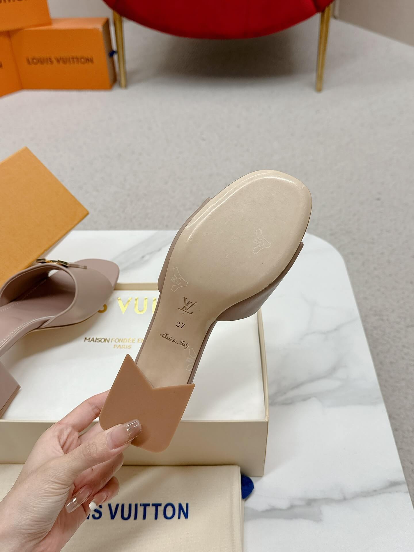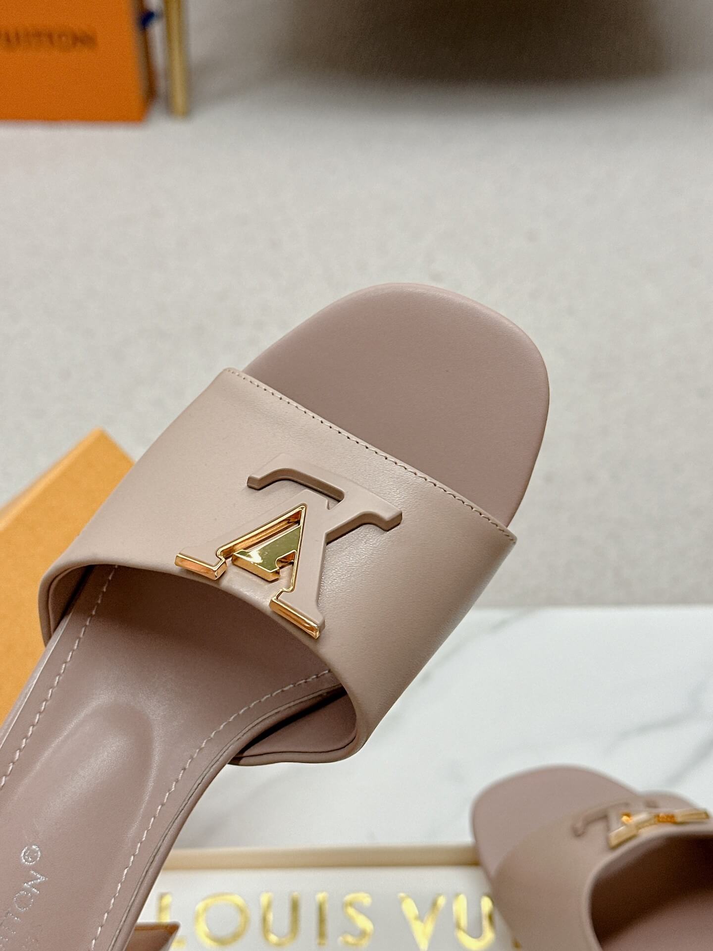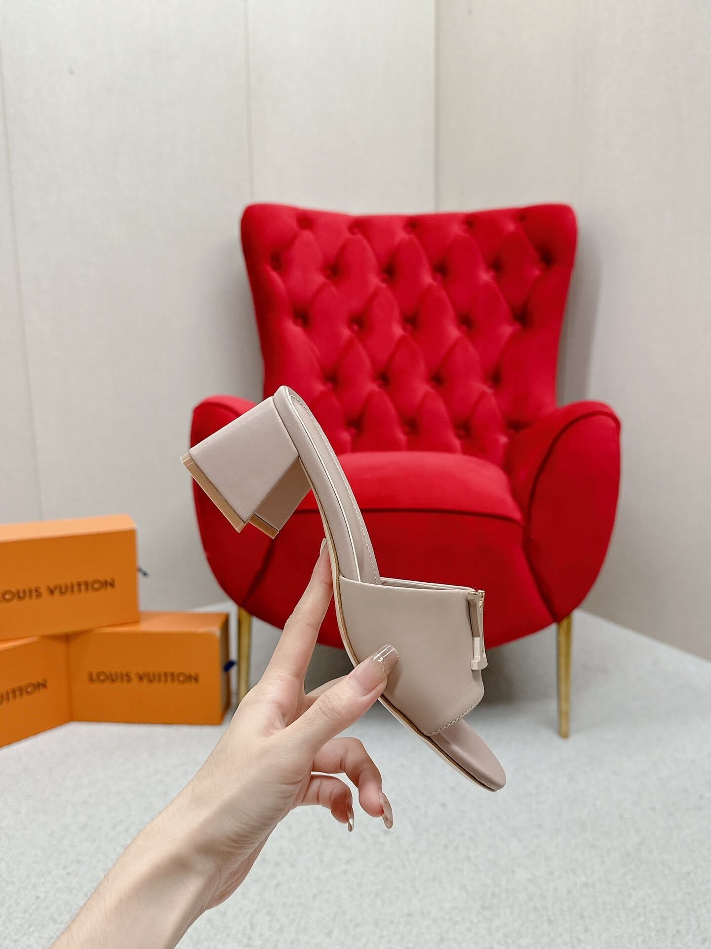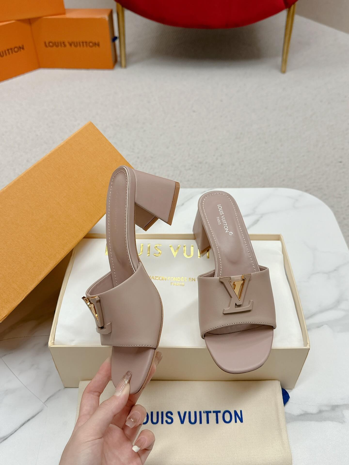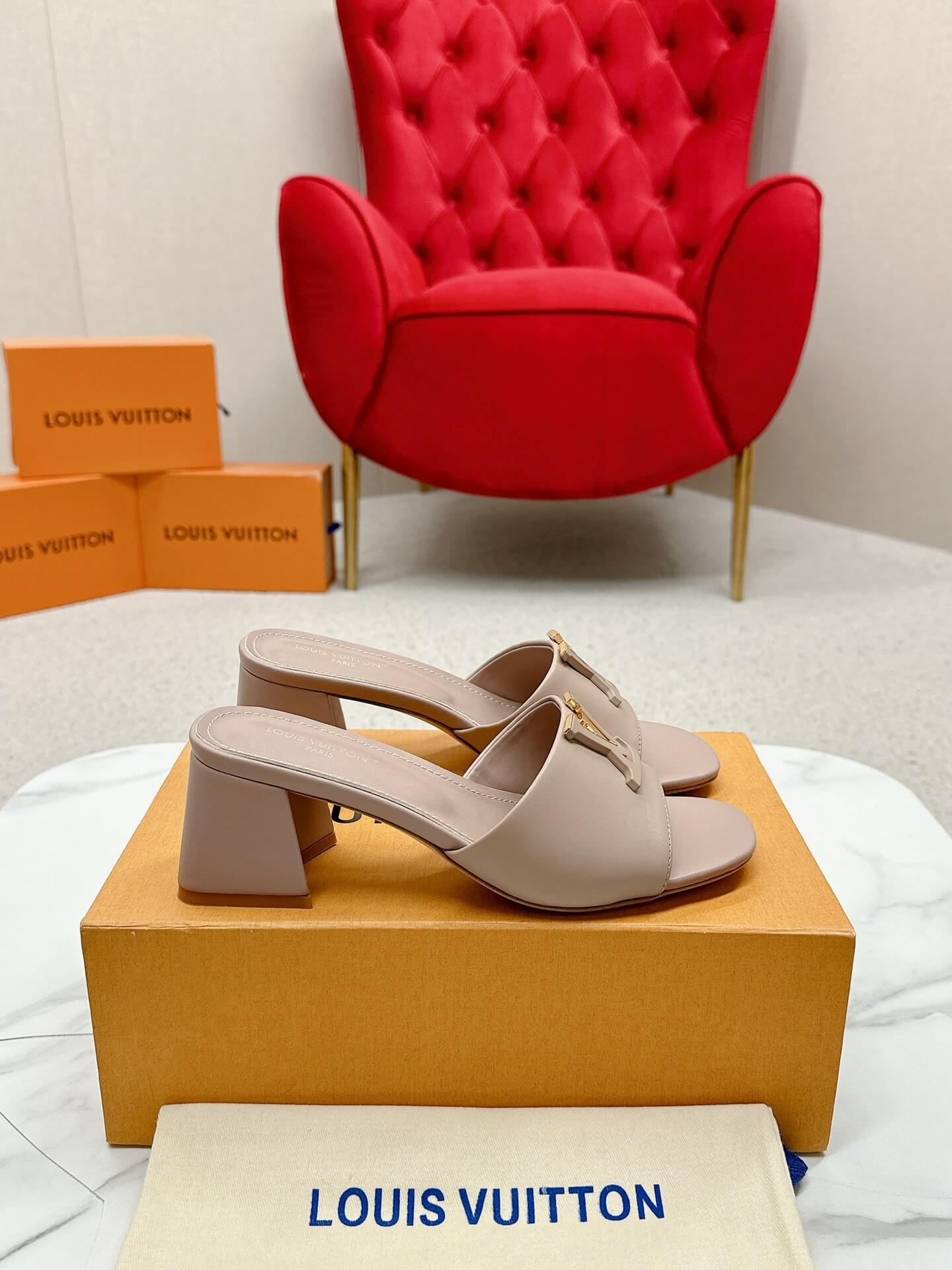 Step into effortless elegance with the LV Capri Mules in nude leather. Featuring a smooth leather upper, a sleek wide strap adorned with gold-tone LV hardware, and a comfortable block heel, these mules are the perfect balance of chic and practical. Whether you’re dressing up for brunch or heading out for an evening event, these versatile mules add a refined touch to any look.