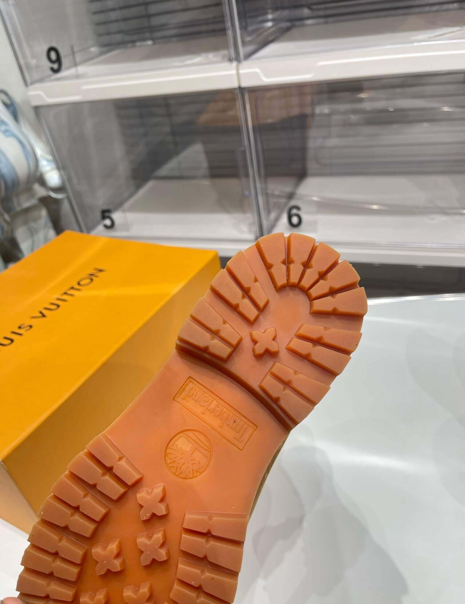 A bold fusion of rugged utility and high-fashion elegance, the LV x Timberland Monogram Ankle Boot in wheat brown is a statement of craftsmanship and style. This boot features the iconic Timberland silhouette, reimagined with Louis Vuitton’s signature monogram-embossed nubuck leather. The padded ankle collar provides comfort, while the sturdy rubber sole ensures durability and grip. Gold-tone metal eyelets and monogram-patterned laces add a refined touch, making this boot perfect for both urban exploration and casual luxury. Elevate your streetwear game with this limited-edition piece that blends two legendary brands.