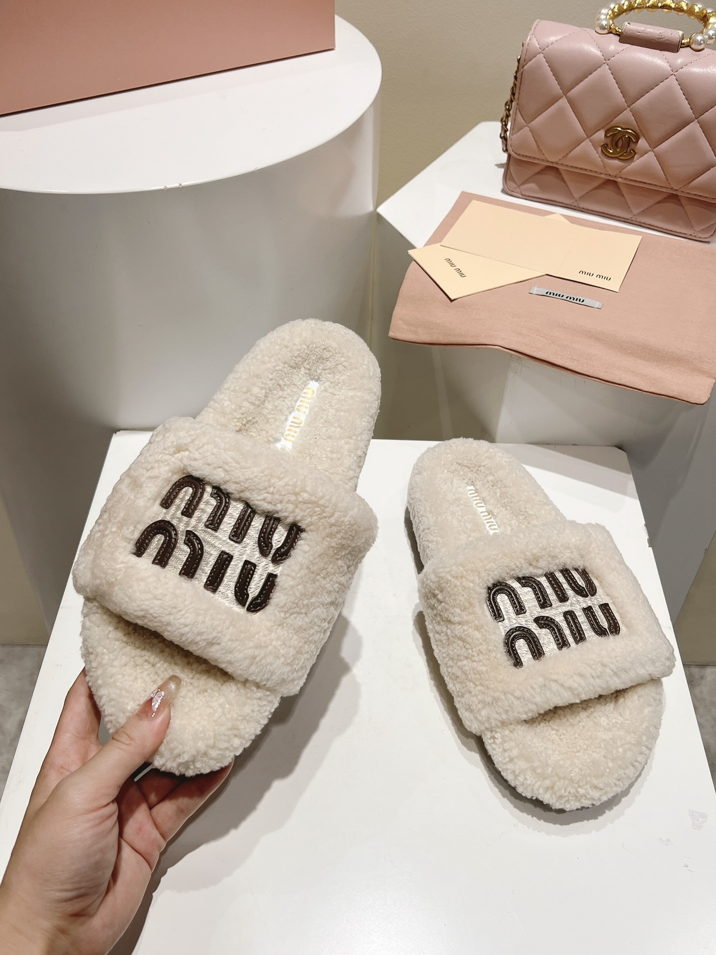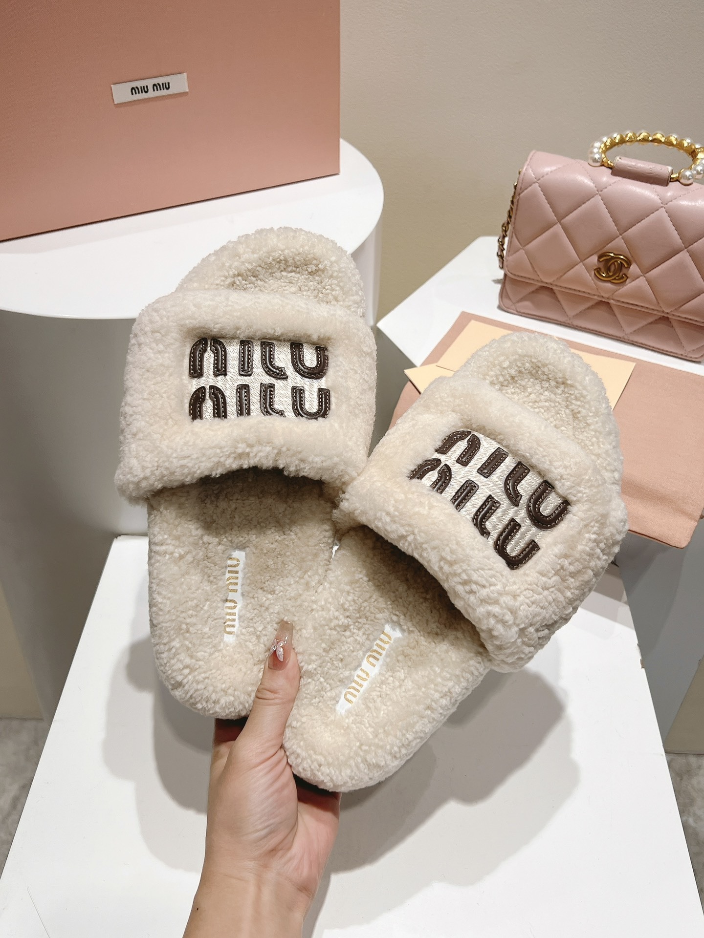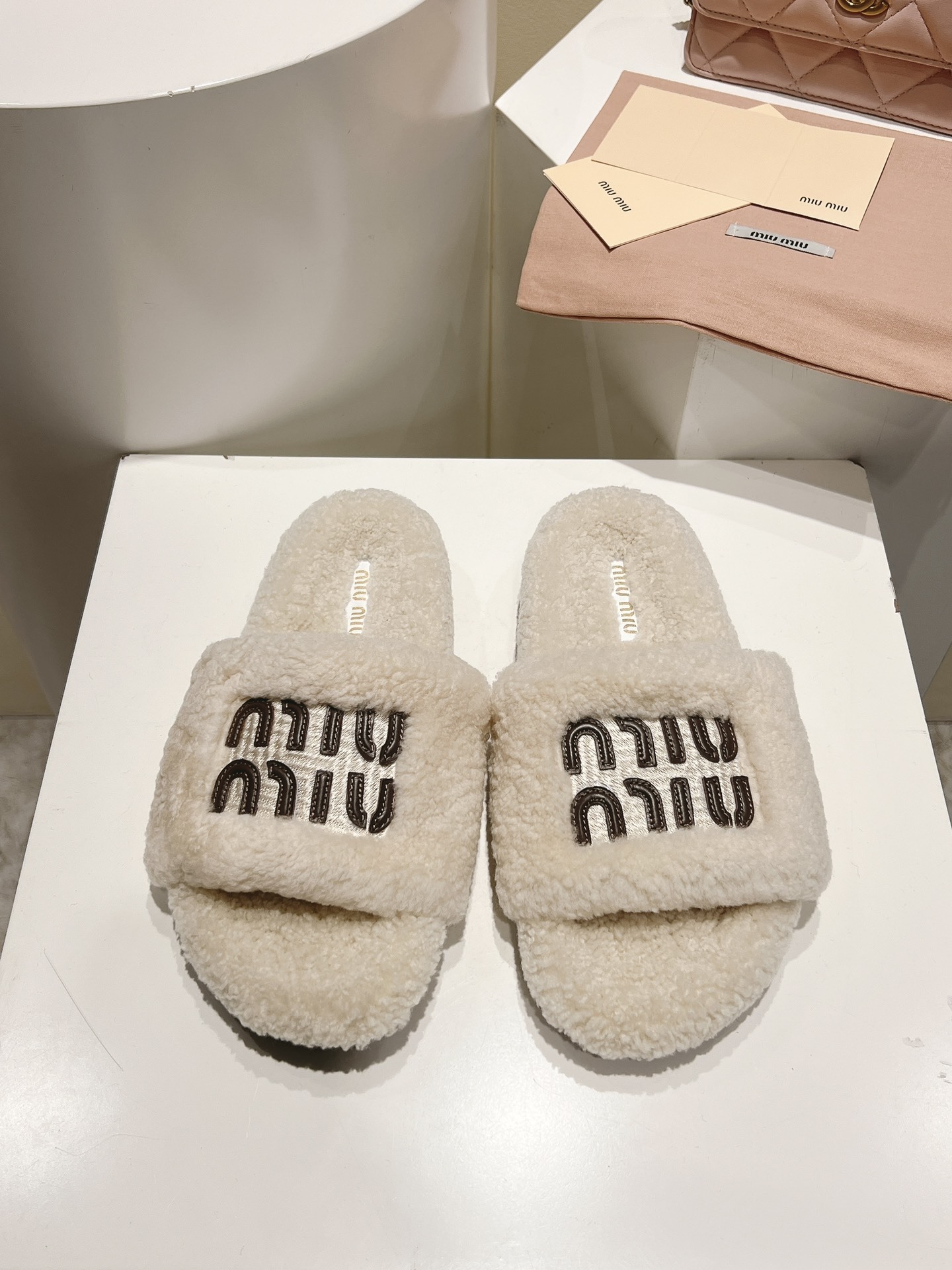 Ideal for fashion lovers who appreciate the perfect balance of luxury and comfort, these Miu Miu shearling slides add a plush finish to any laid-back look.