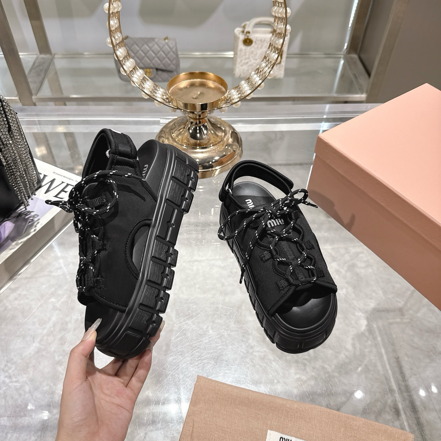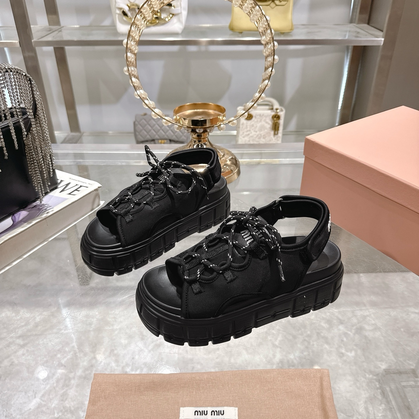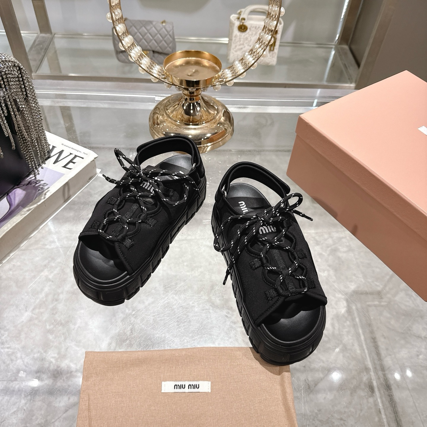 A fearless fusion of streetwear grit and high-fashion flair, the Miu Miu Techno Sport Platform Sandals bring unapologetic attitude to your everyday edit.