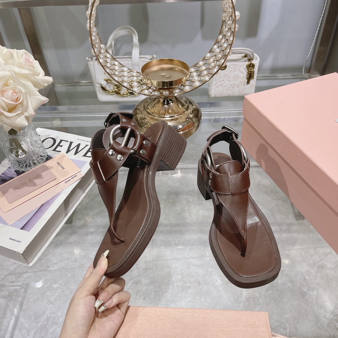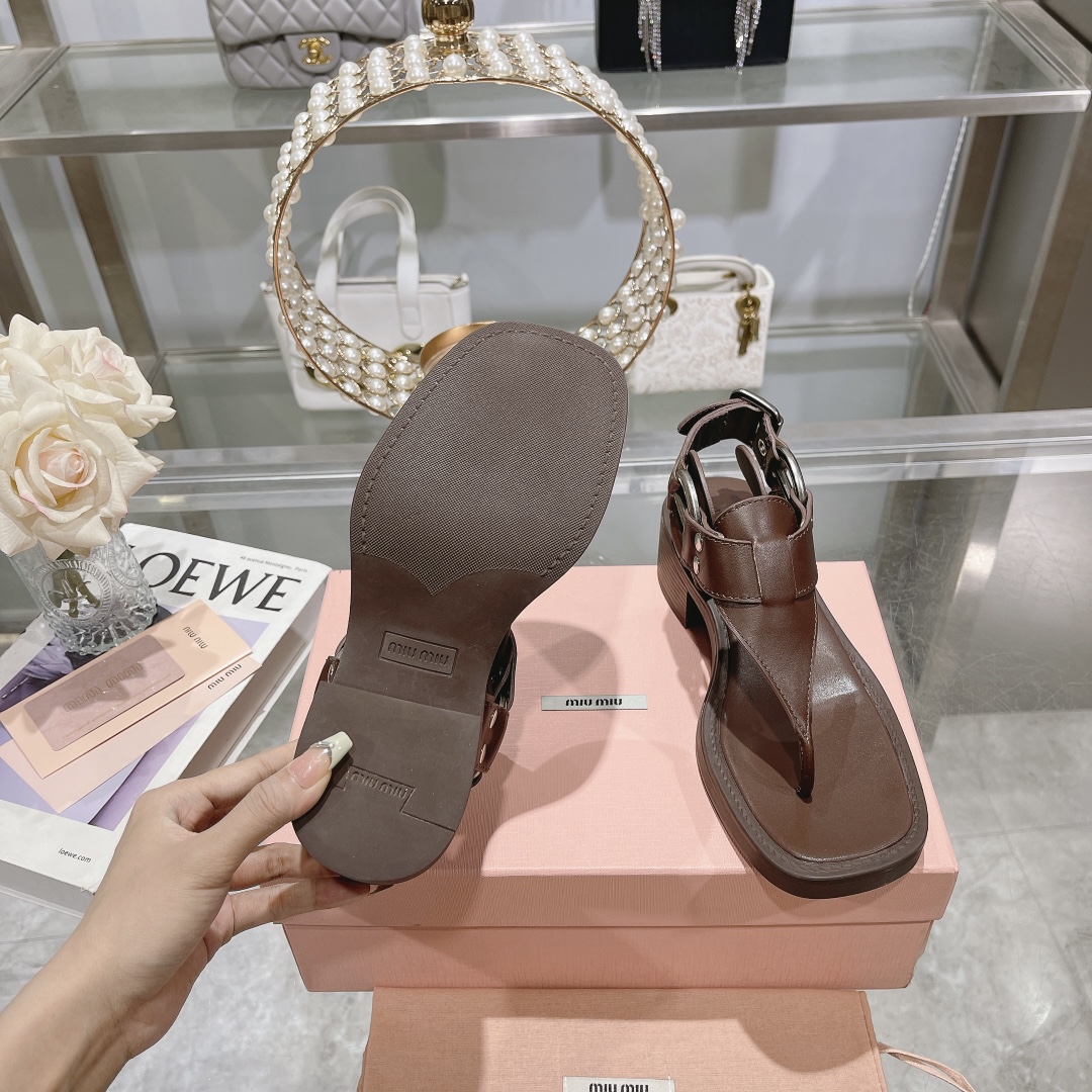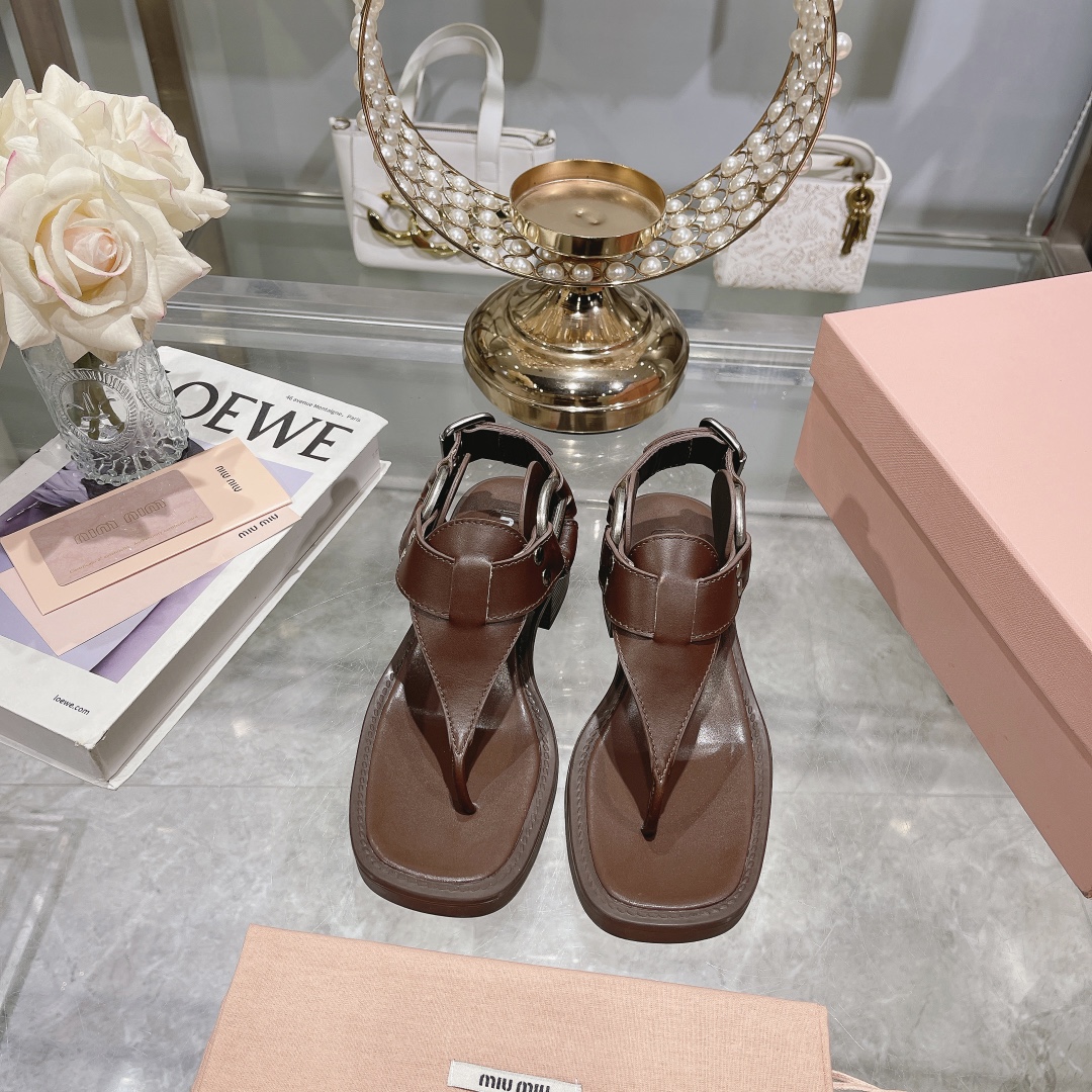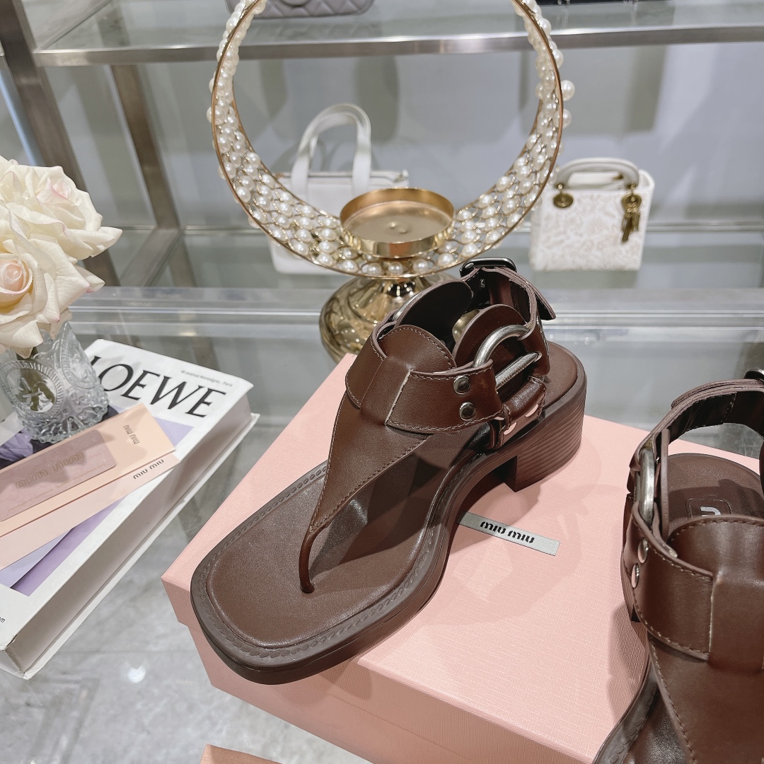 The MIU MIU Brown Leather T-Strap Sandals seamlessly blend modern sophistication with a bold, edgy twist.