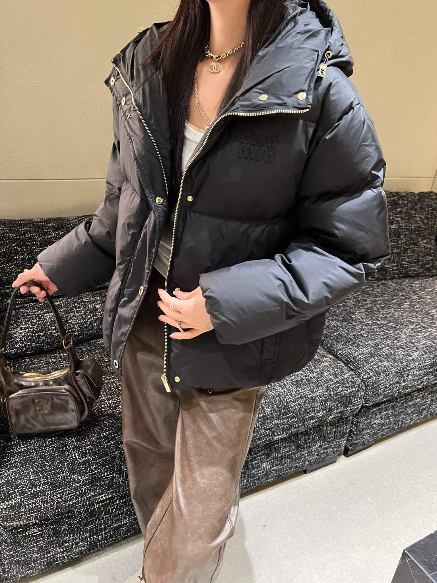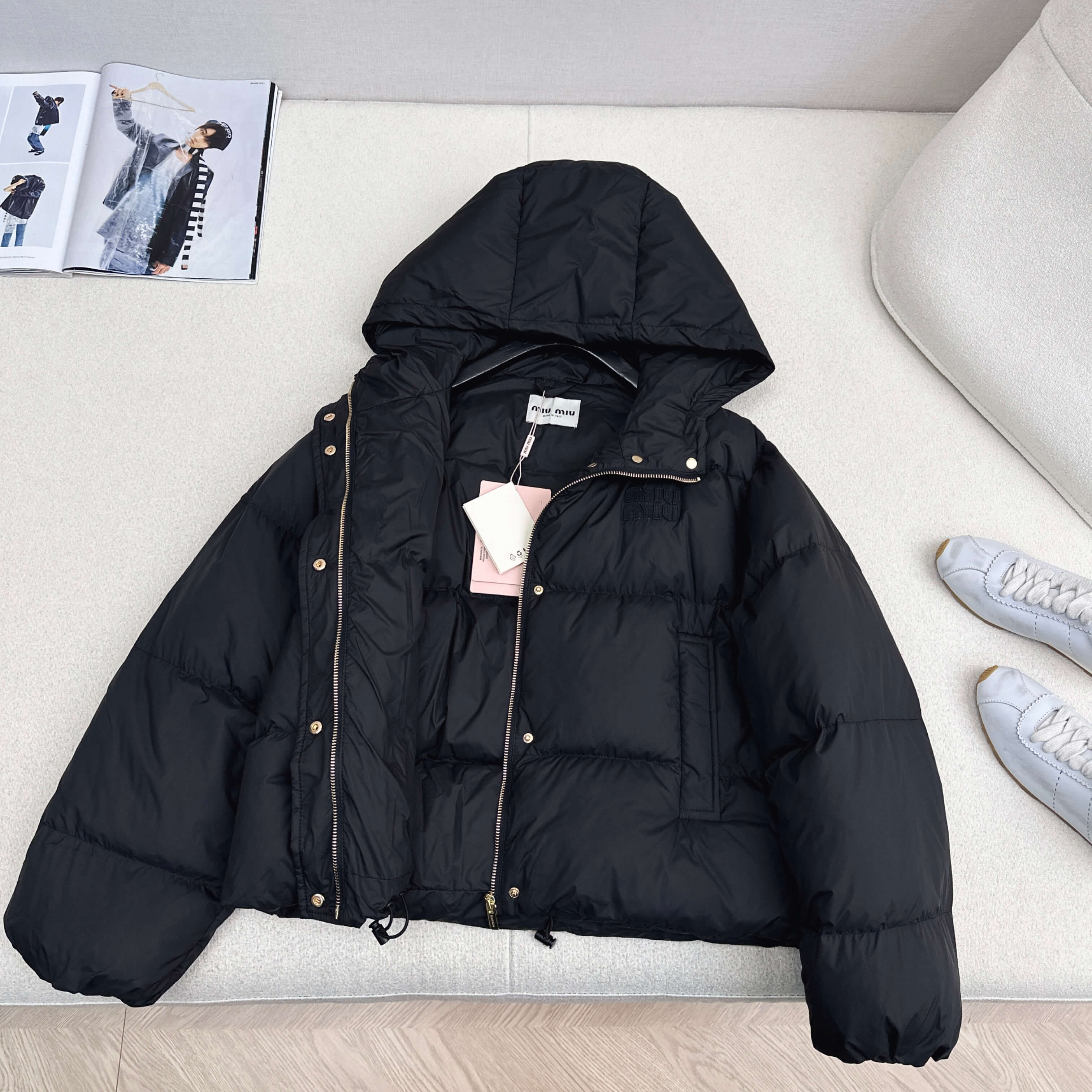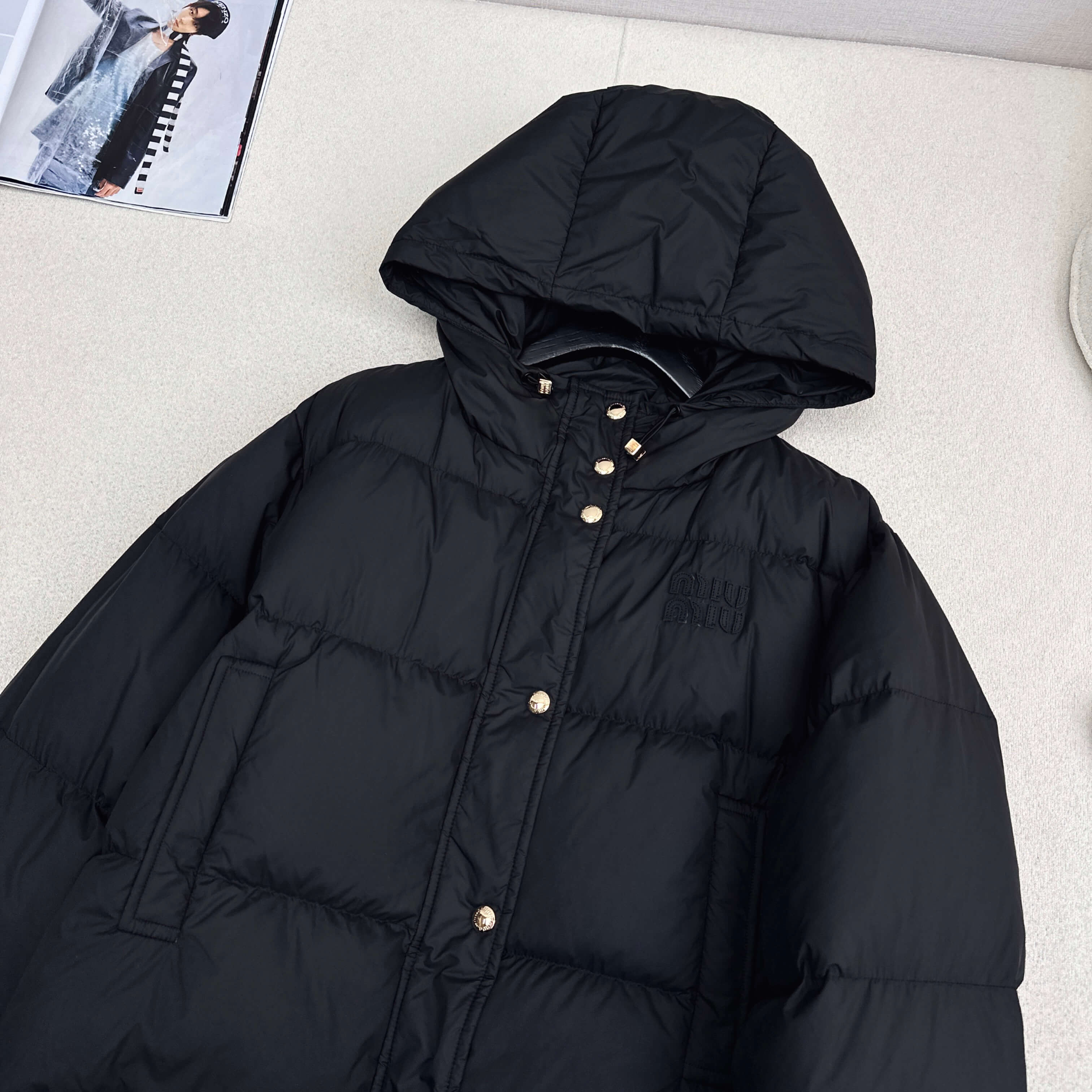 Ideal for the fashion-forward woman, this Miu Miu down jacket blends luxurious comfort with minimalist allure. Perfect for winter city strolls or weekend getaways, it pairs effortlessly with denim, leggings, or knitwear for a cozy, high-end finish.