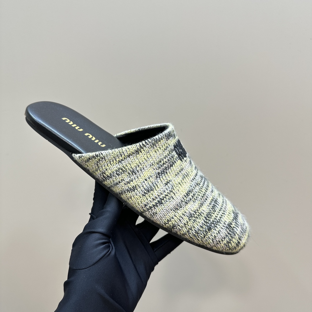 Introducing the Miu Miu Knit Soft Yellow Wool Slippers, a cozy yet elevated essential. Crafted from upcycled wool, the soft yellow tones create a fresh, understated elegance.