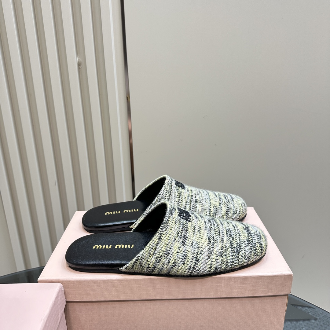 The sleek silhouette is paired with a black leather insole for a refined finish. A subtle Miu Miu embroidered logo adds a touch of iconic branding. Lightweight and comfortable, these slippers are perfect for effortless chic moments. Ideal for stylish lounging or casual strolls.