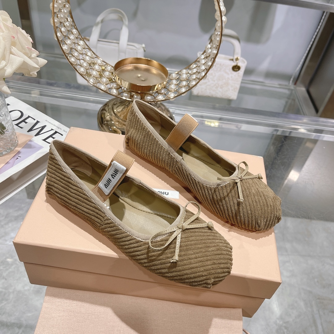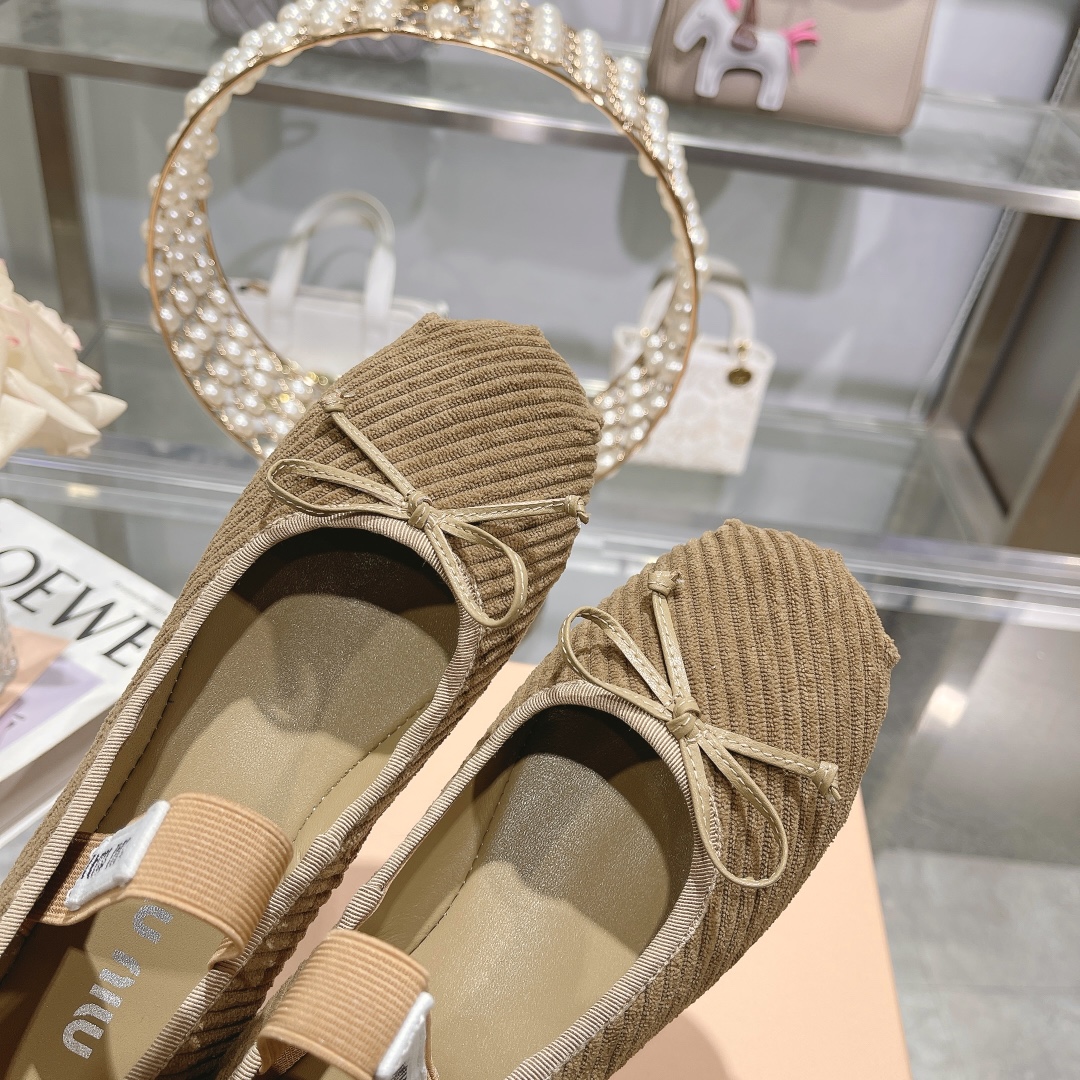 Embrace understated elegance with the Miu Miu Light Brown Corduroy Ballet Flats, crafted in Italy with Miu Miu’s signature attention to detail.