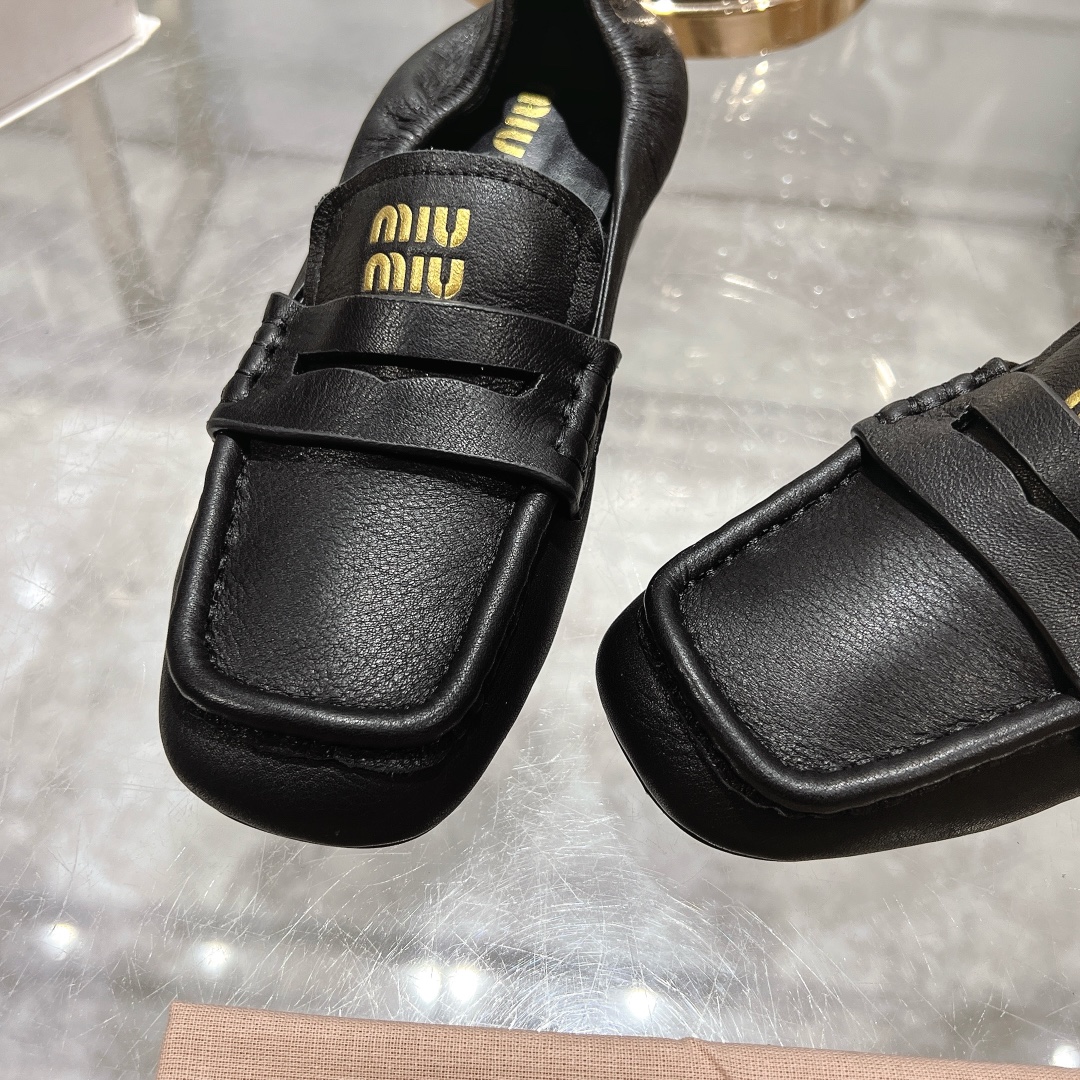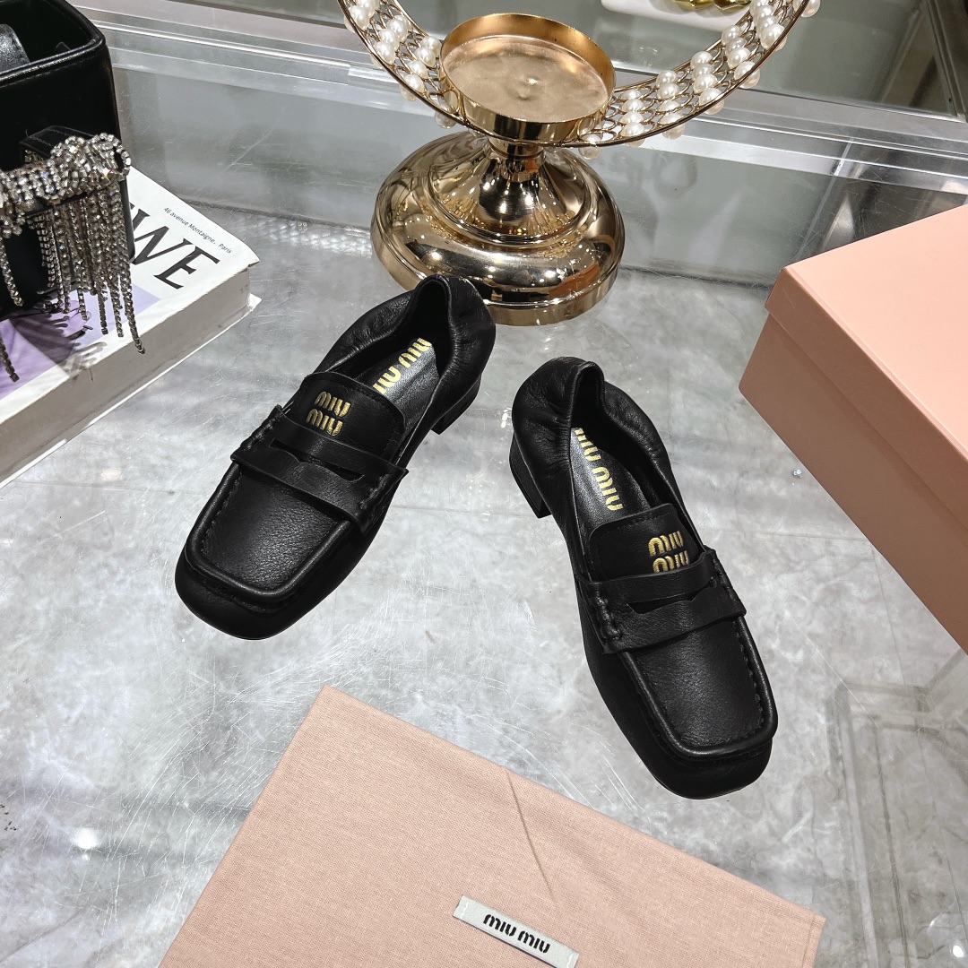 These Miu Miu loafers bring together classic elegance and modern flair with their sleek black leather design.
